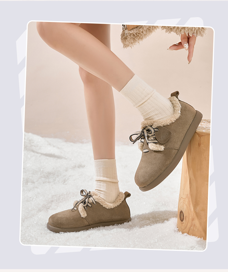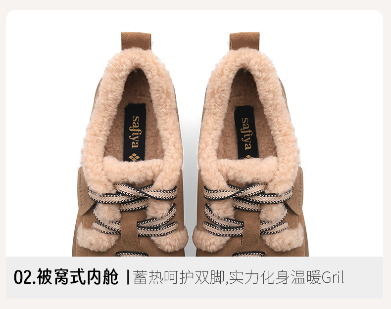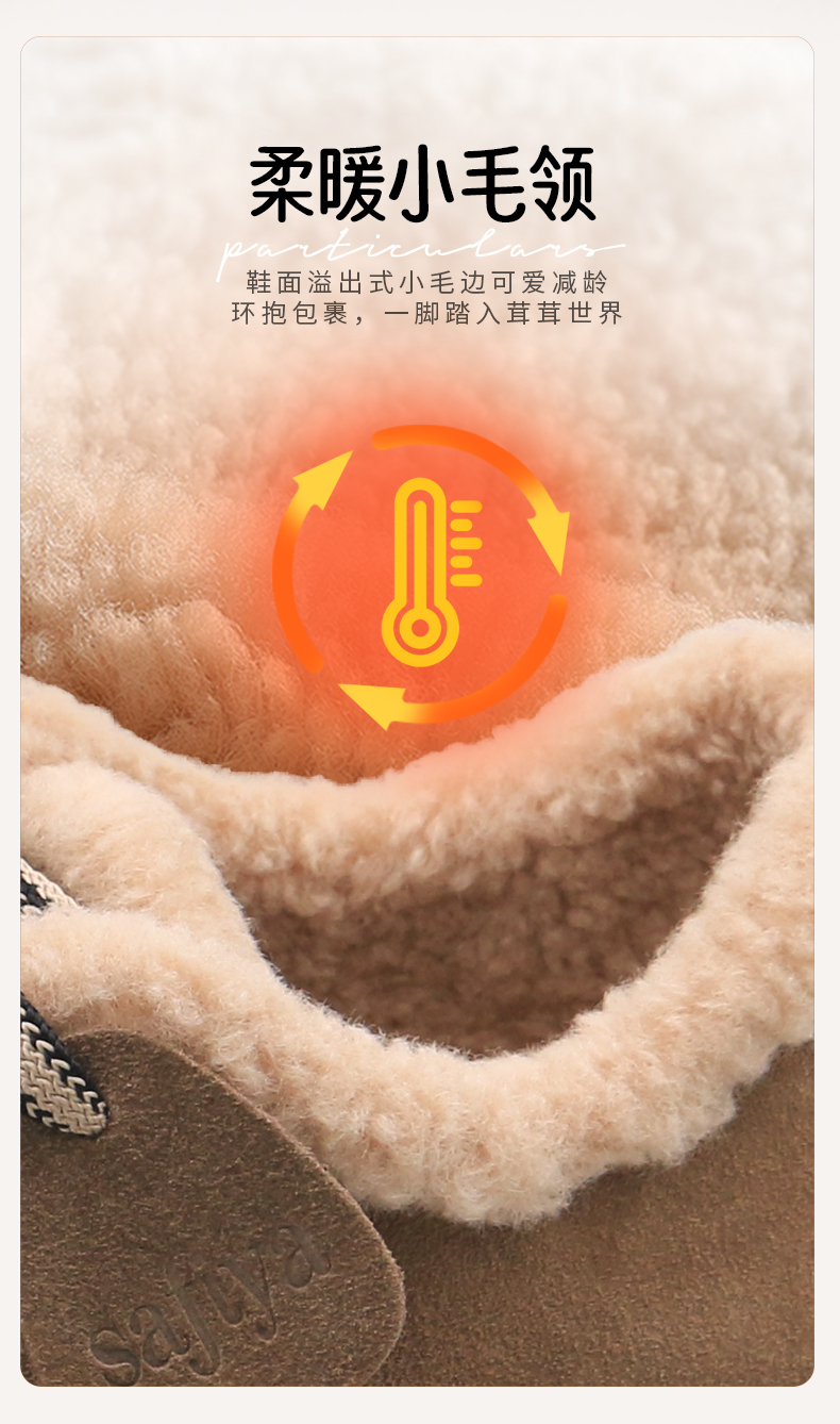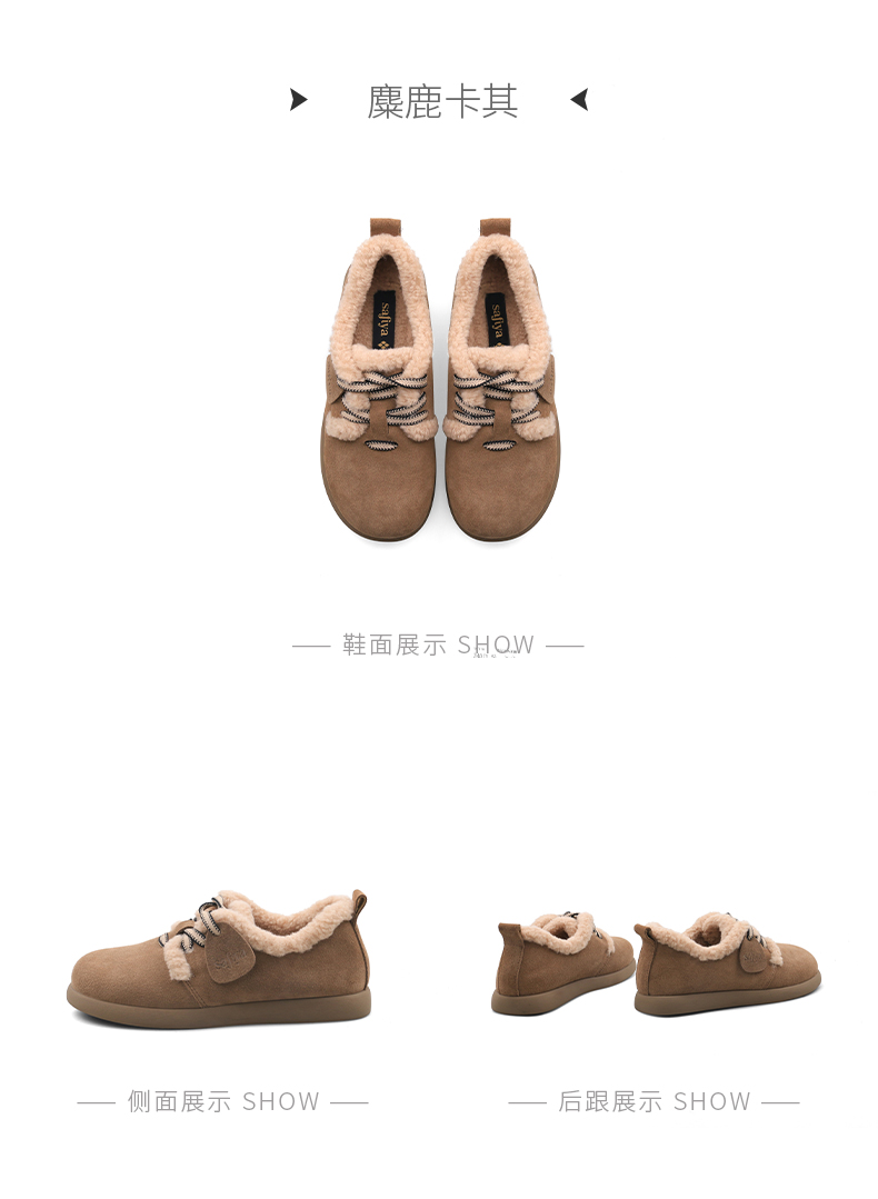 Safiya/索菲娅2024秋冬复古百搭保暖圆头系带休闲丑萌勃肯毛毛鞋SF4411A407