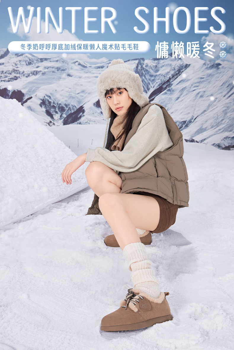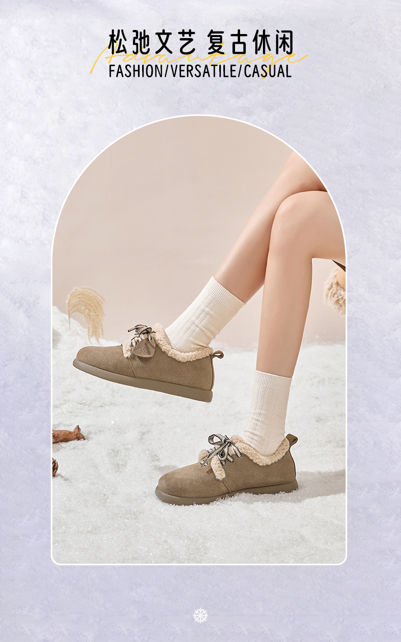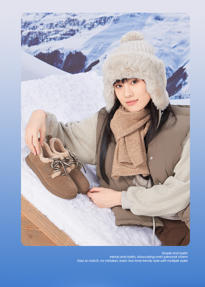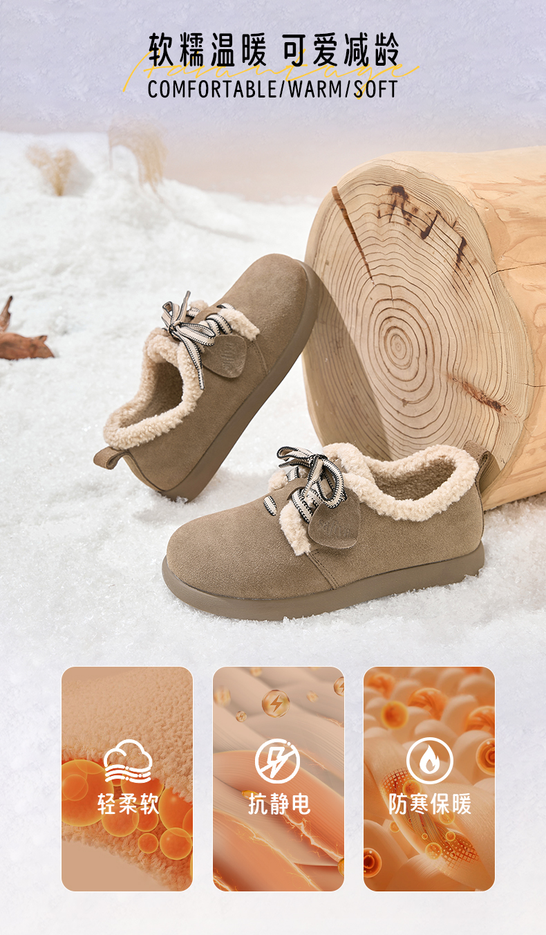 Safiya/索菲娅2024秋冬复古百搭保暖圆头系带休闲丑萌勃肯毛毛鞋SF4411A407