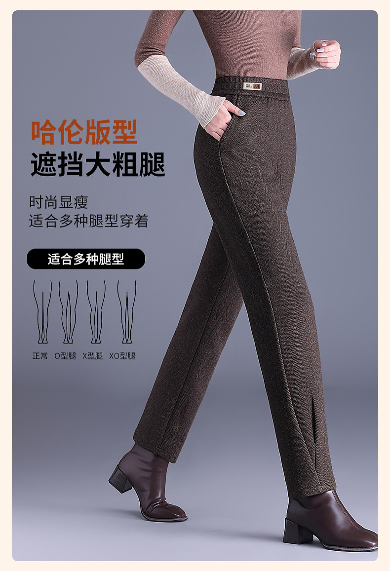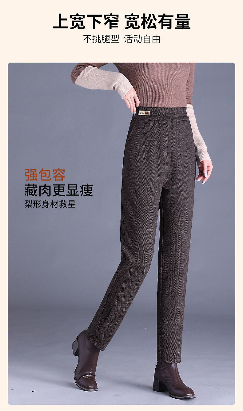 人字纹毛呢萝卜哈伦裤女冬季新款老爹裤大码显瘦宽松休闲裤子胖mm