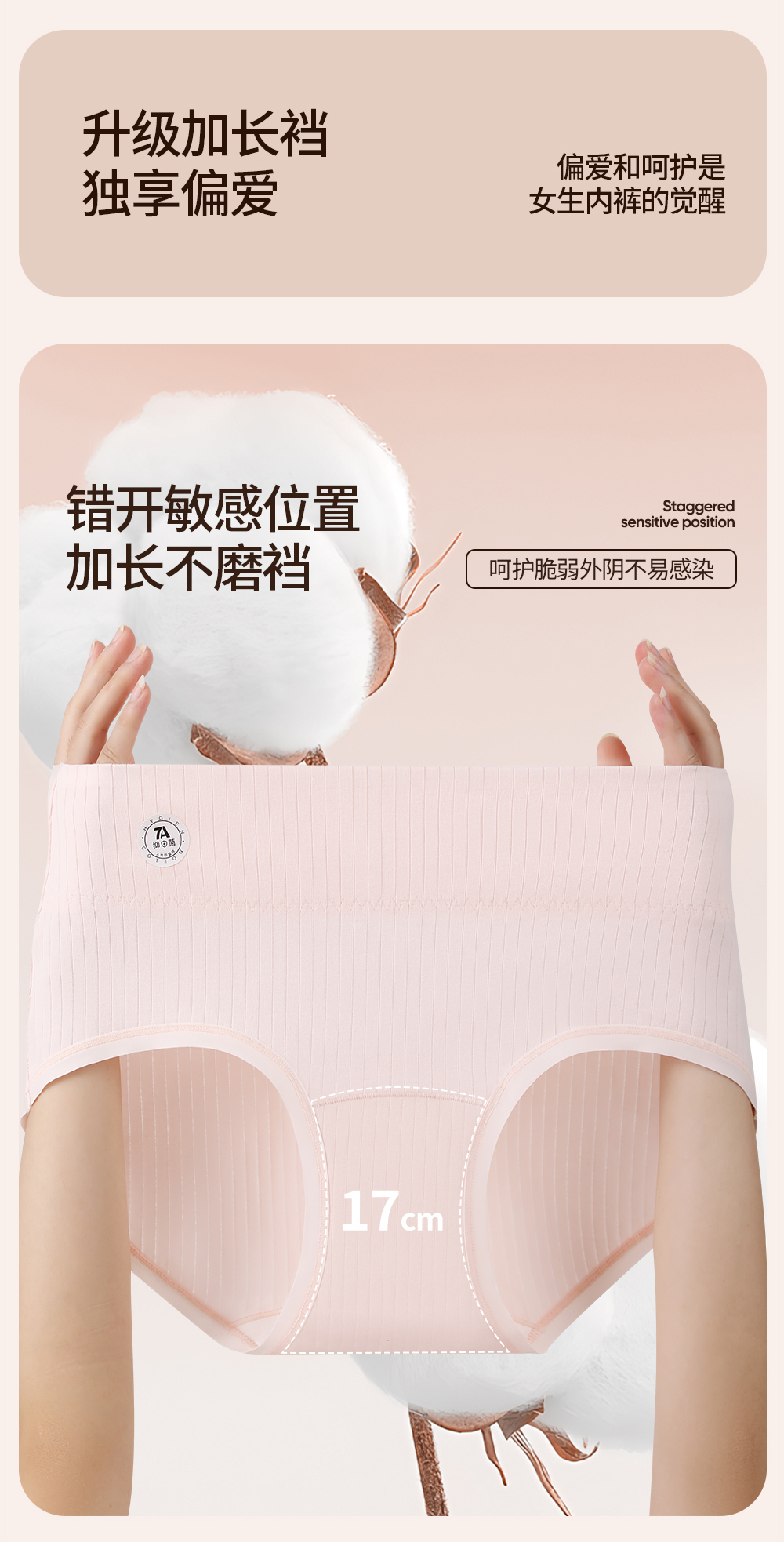 新款高腰大码内裤女纯棉抗菌加长裆无痕超薄高弹面膜平角内裤546