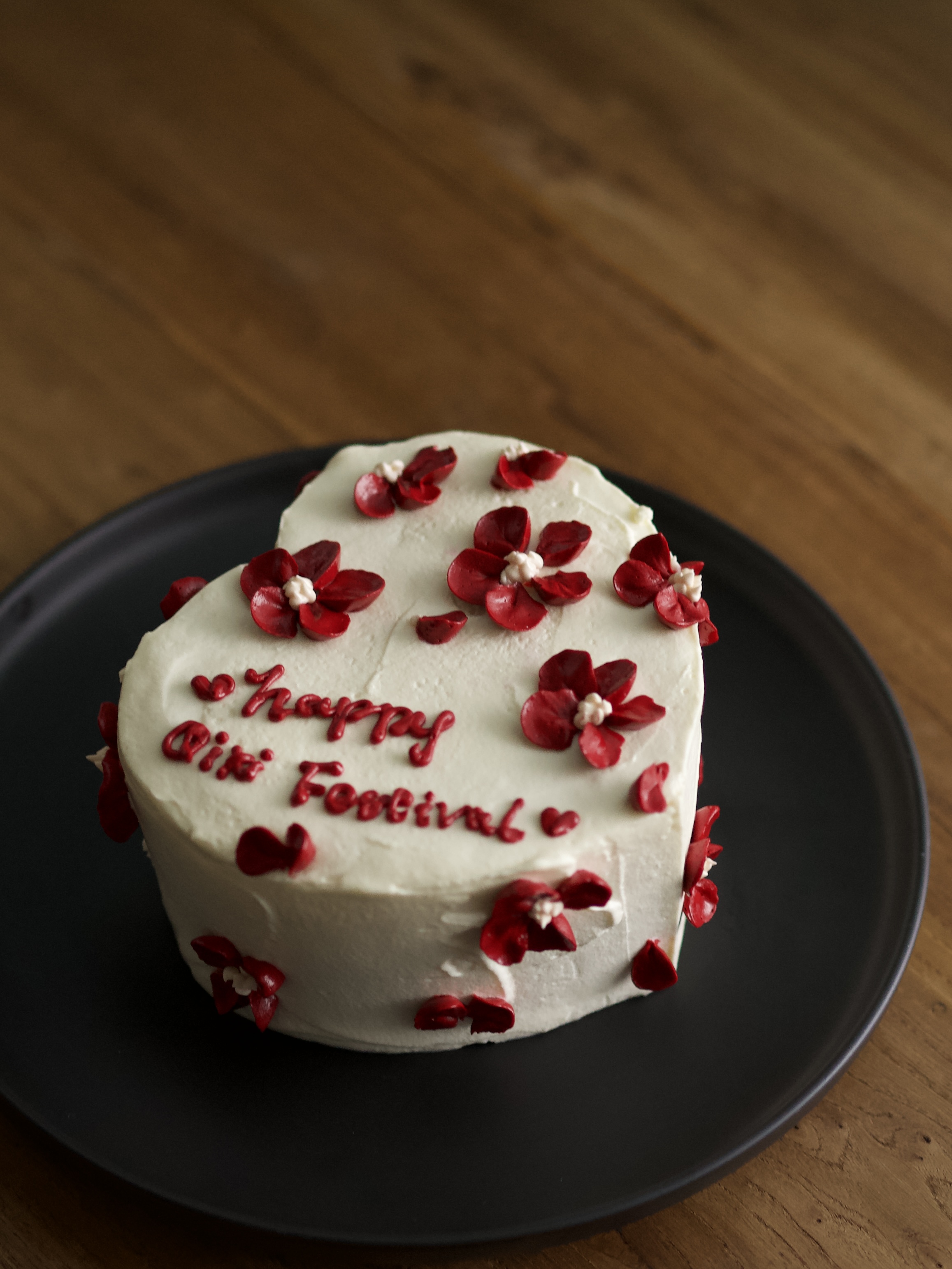 口味:红丝绒戚风胚+莓果奶油+蓝莓+杂莓酱
