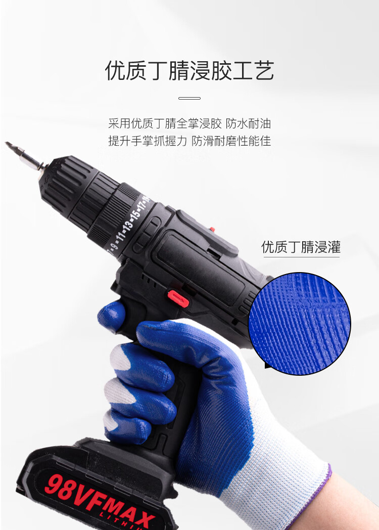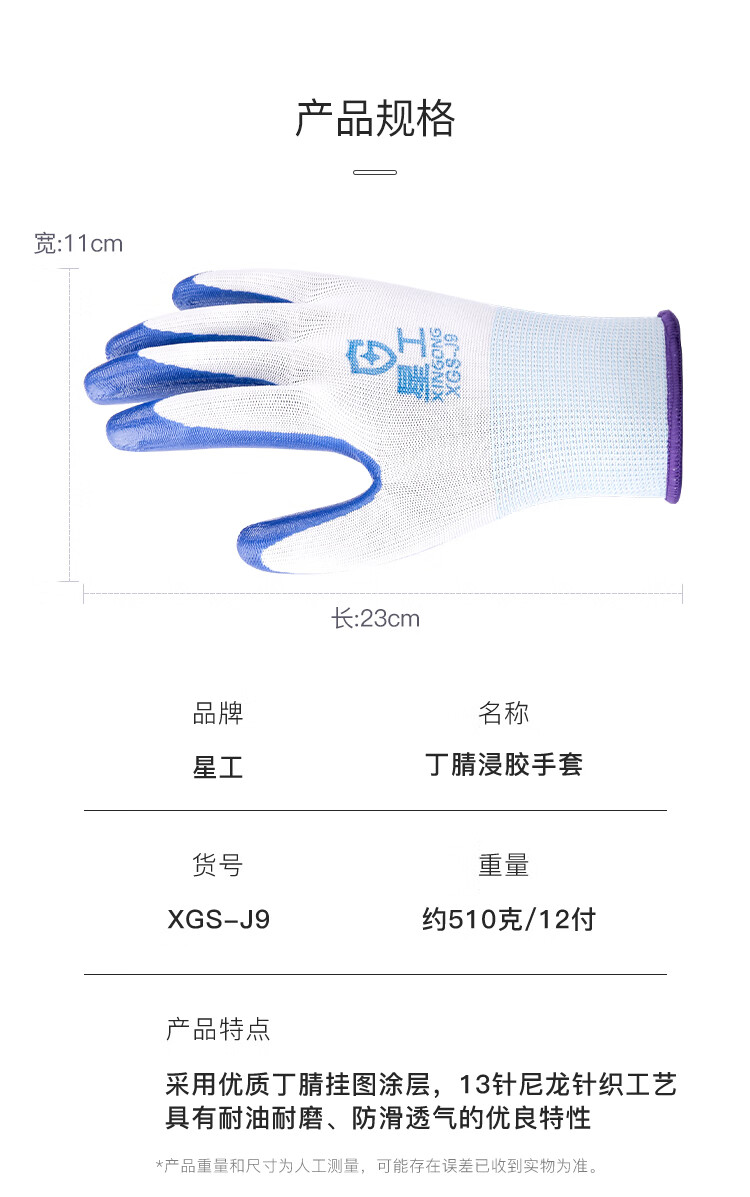 【ZY25】星工劳保丁腈加厚耐磨防滑浸胶挂胶手套 12双/包