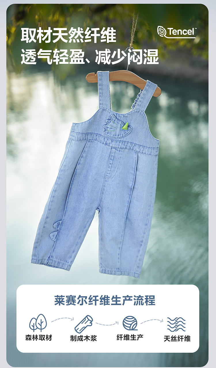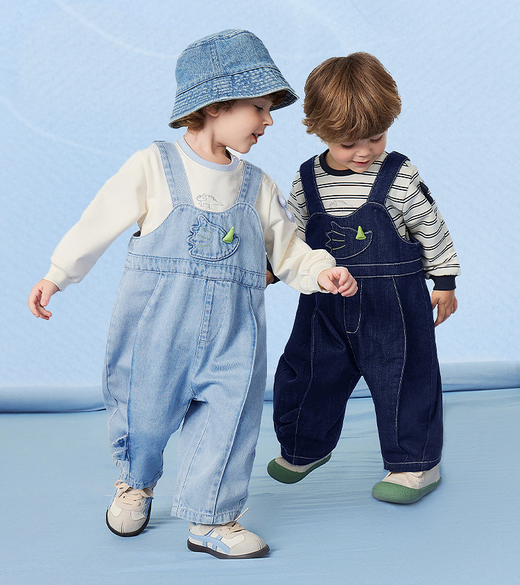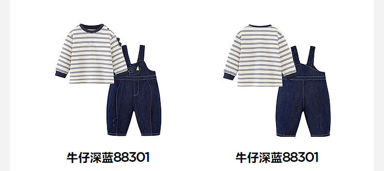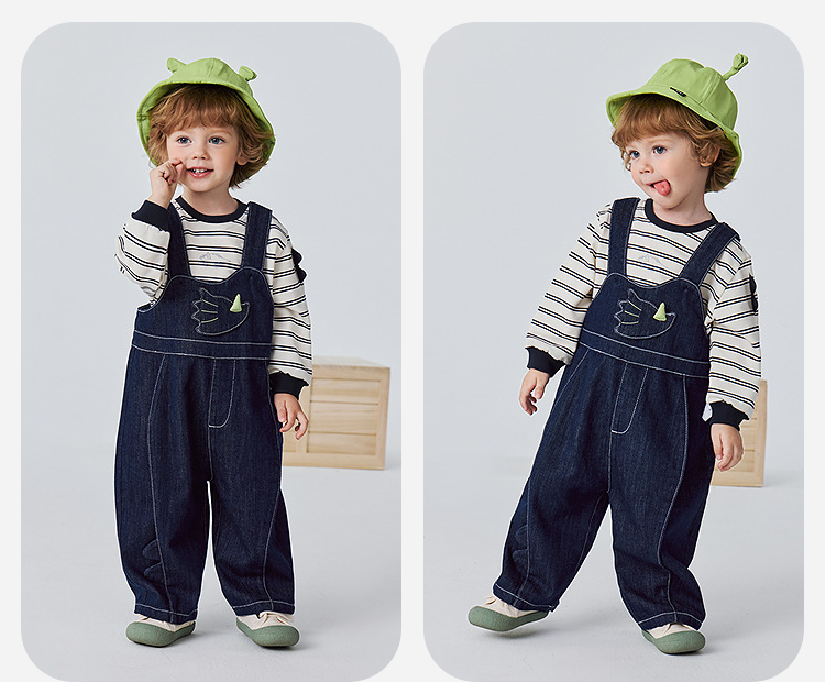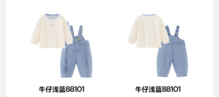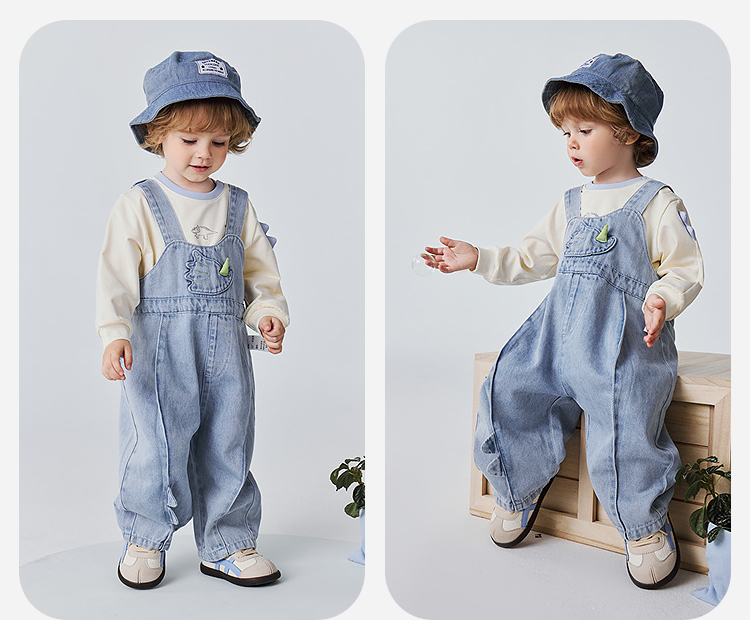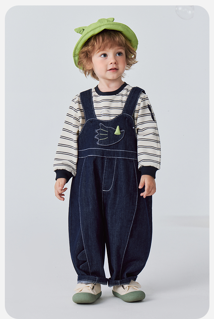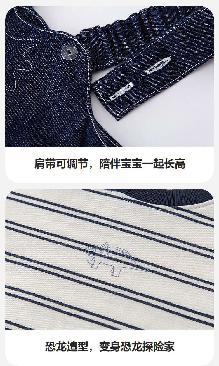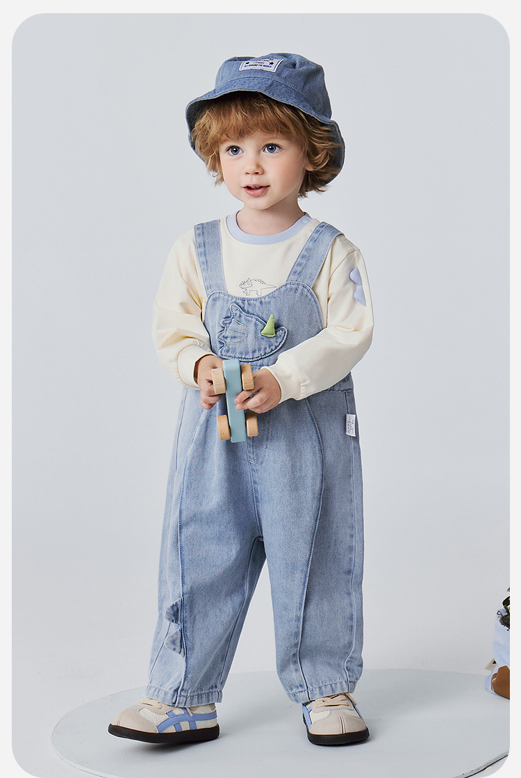 【软牛仔】迷你巴拉巴拉男童宝宝棉弹T恤牛仔背带裤恐龙造型套装
