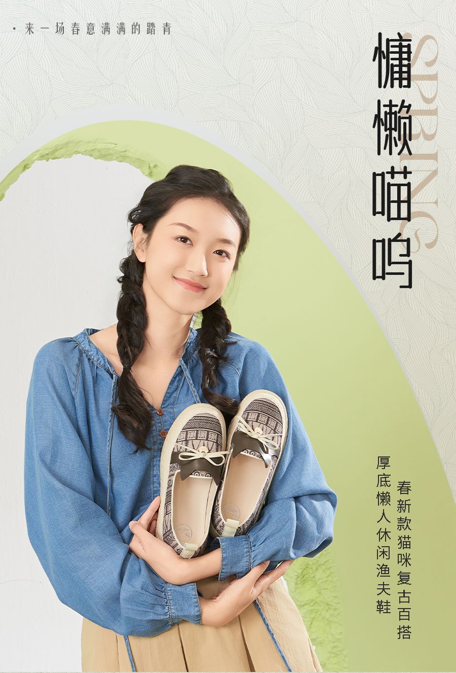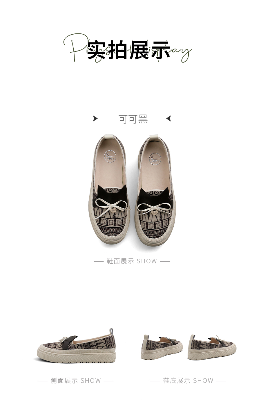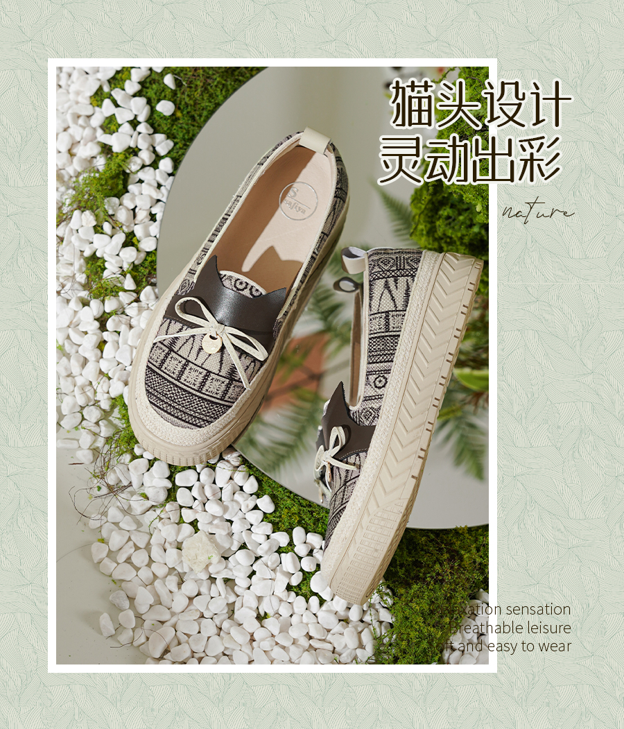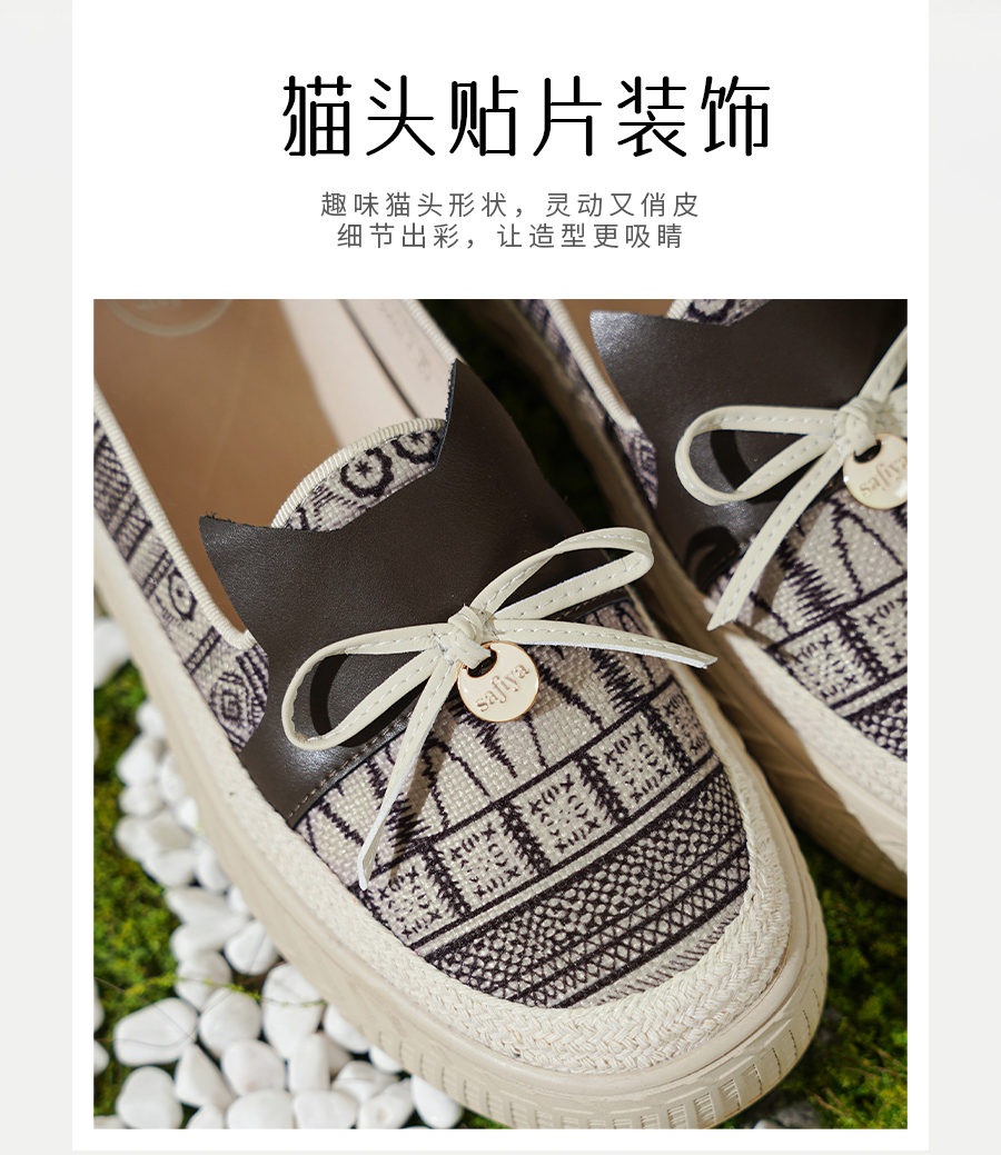 Safiya/索菲娅2025春新款猫咪复古百搭厚底懒人休闲渔夫鞋 SFD1112243