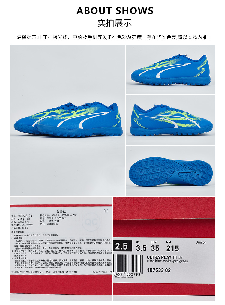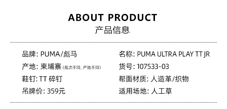 SFS彪马Puma正品ULTRA入门级TF碎钉儿童人草低帮足球鞋107533-03