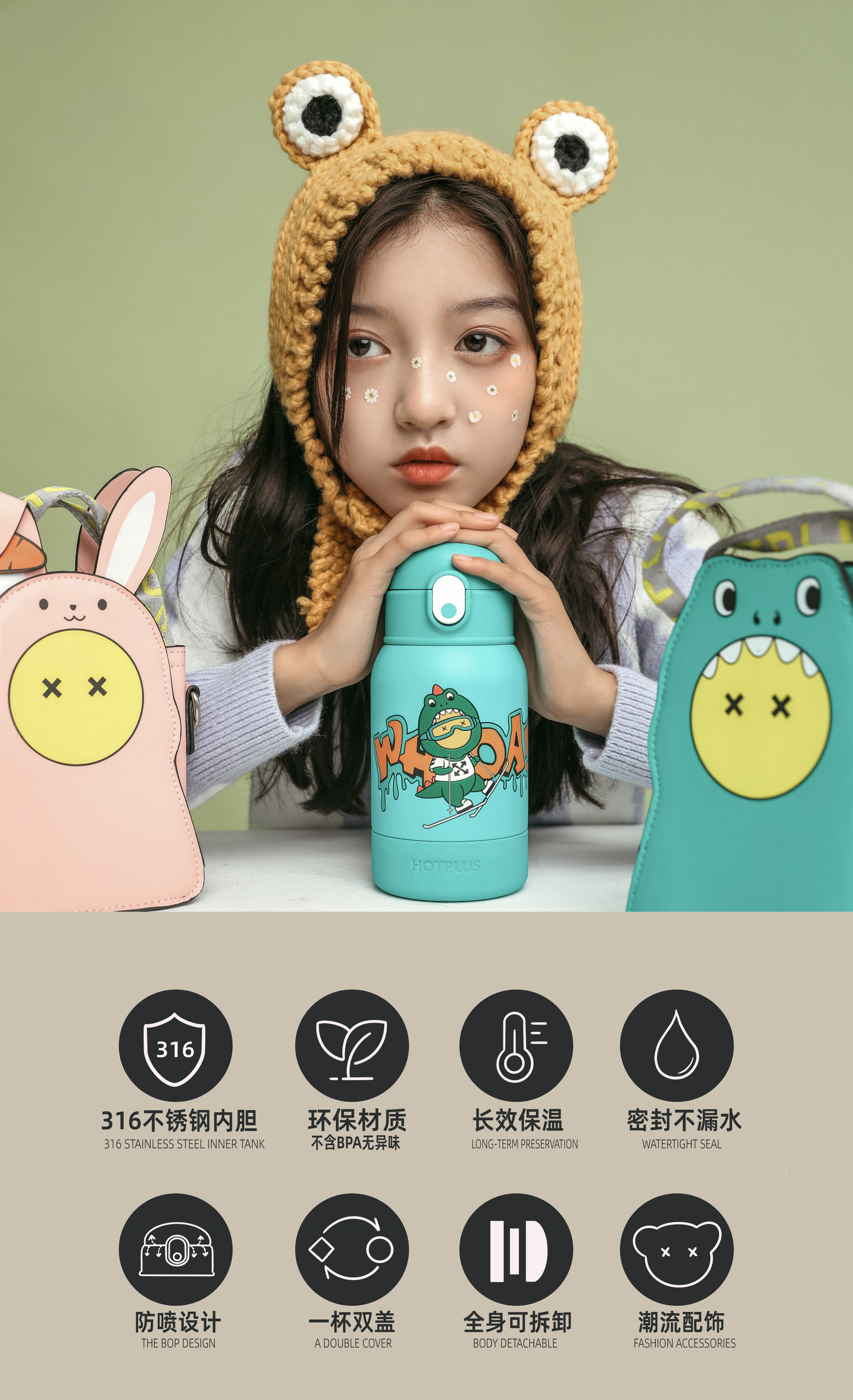 hotplus保温杯女可爱水杯便携大学生高颜值ins网红款儿童女生杯子
