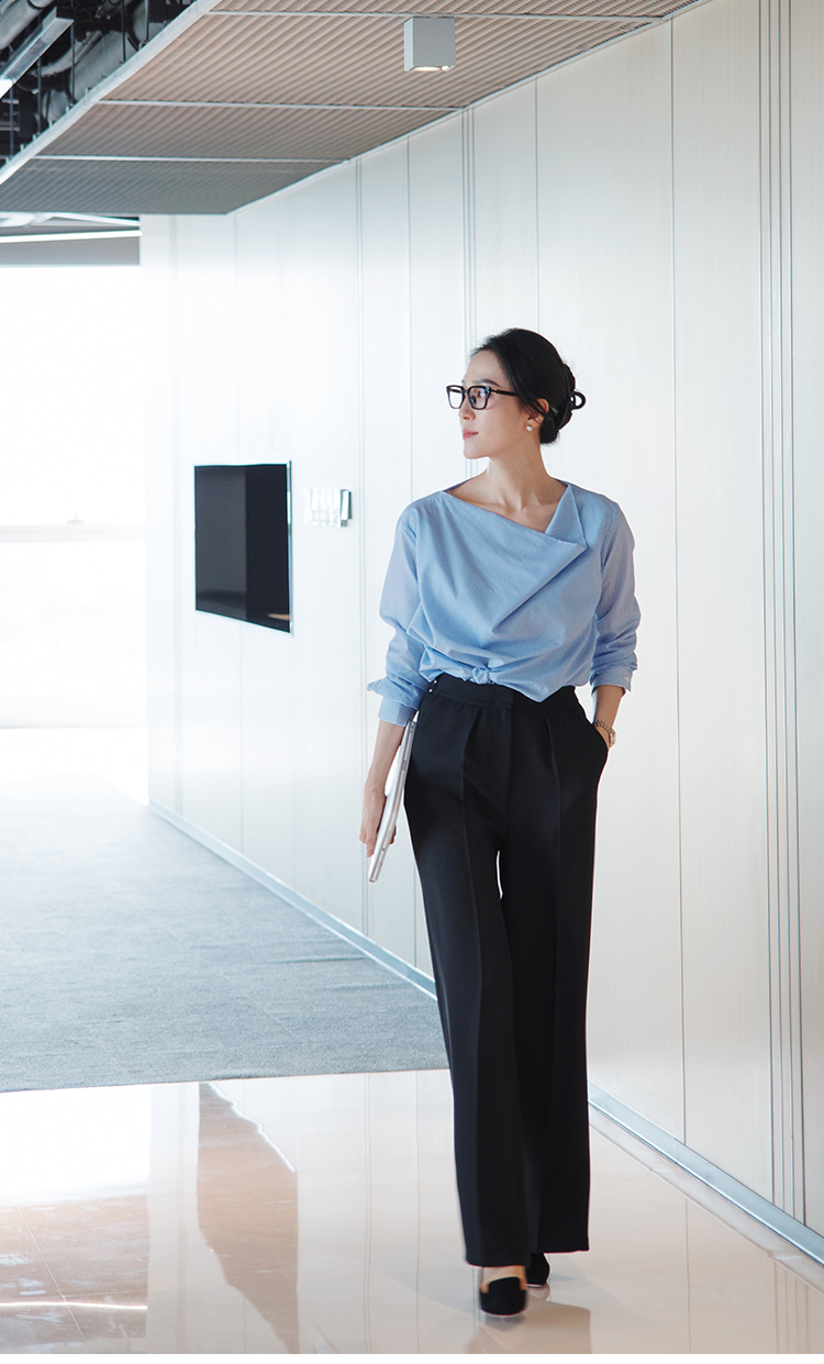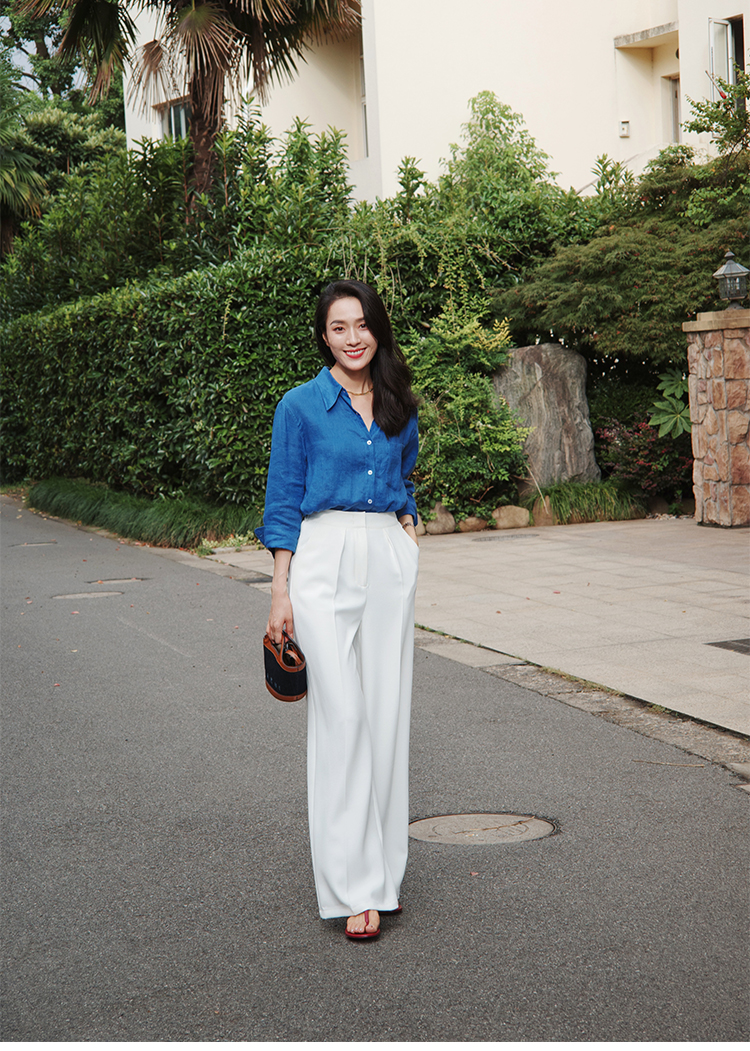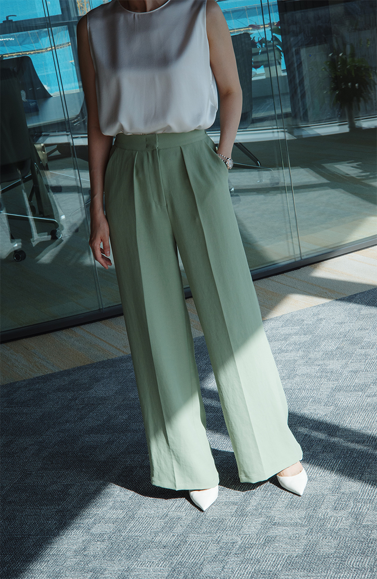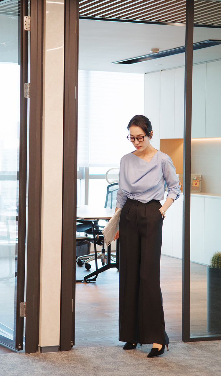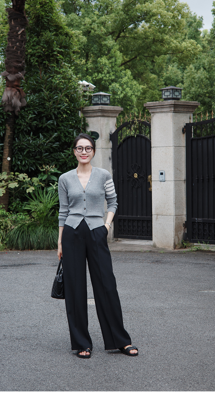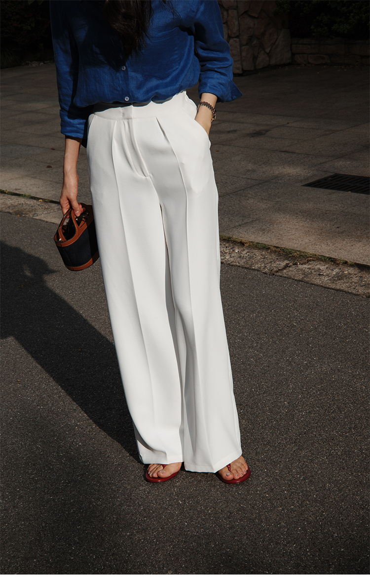 "翩若轻云" 松紧腰 高腰 阔腿西装裤