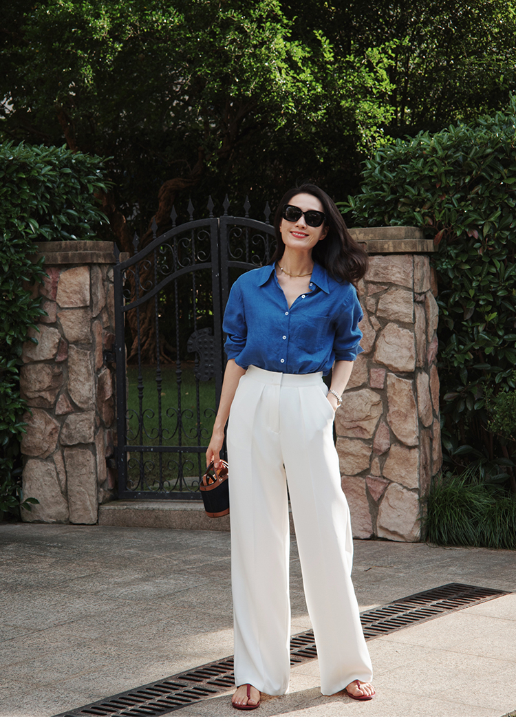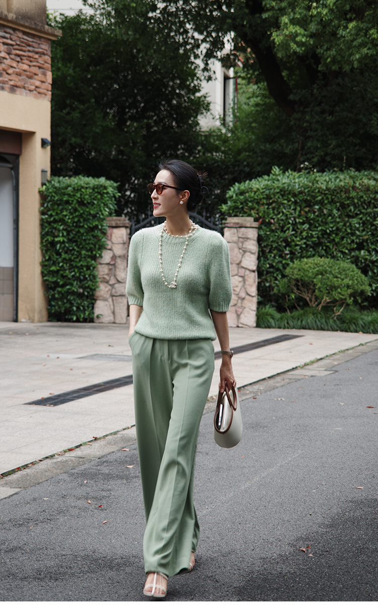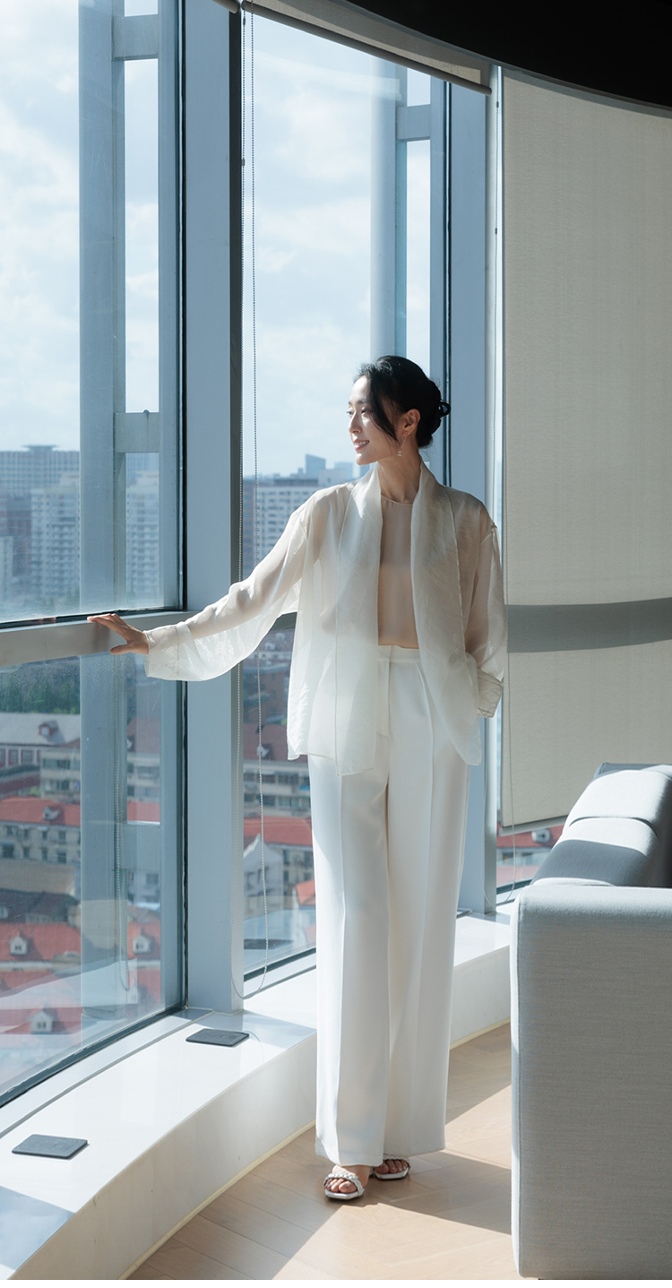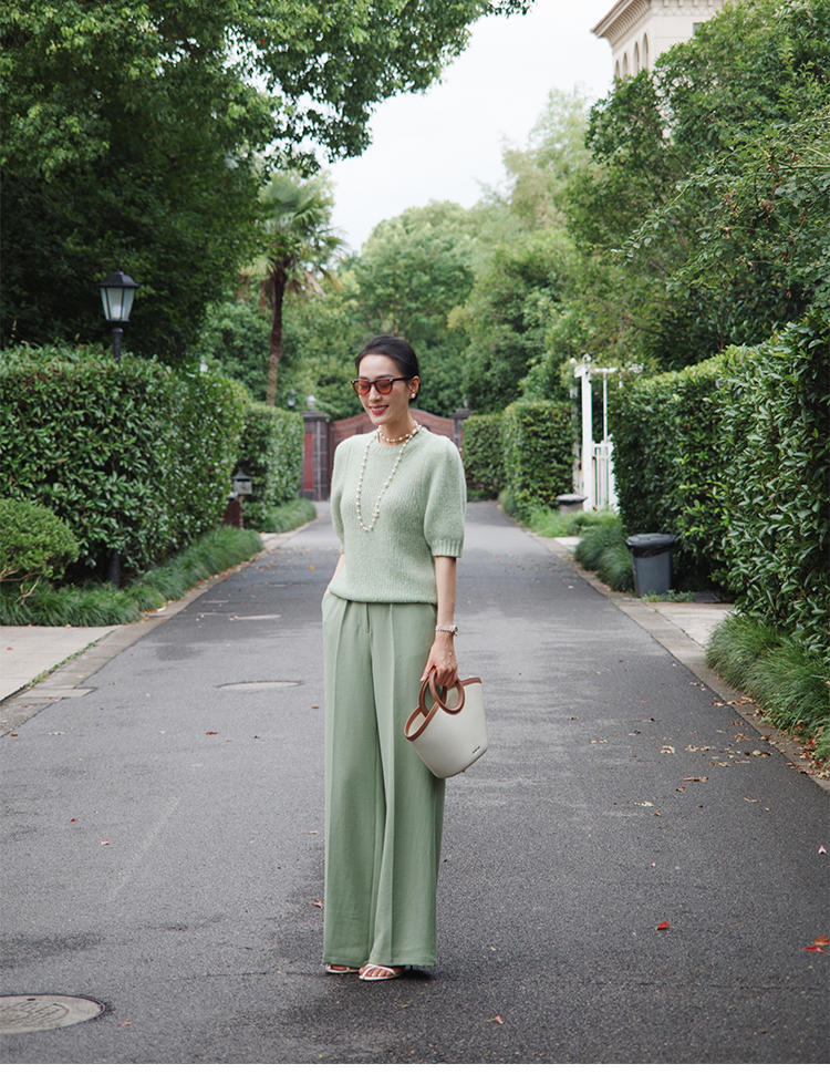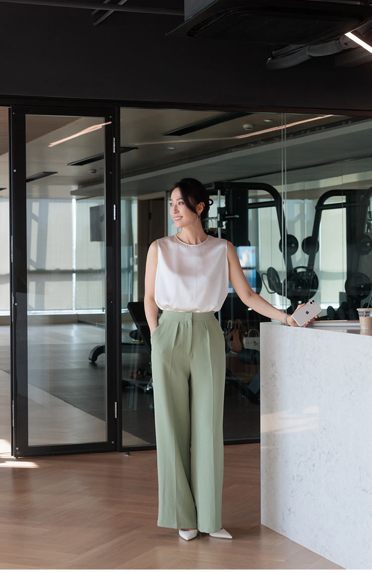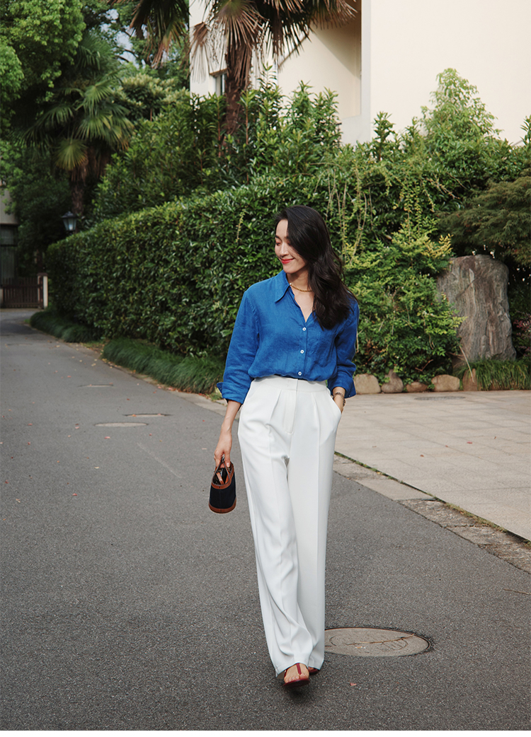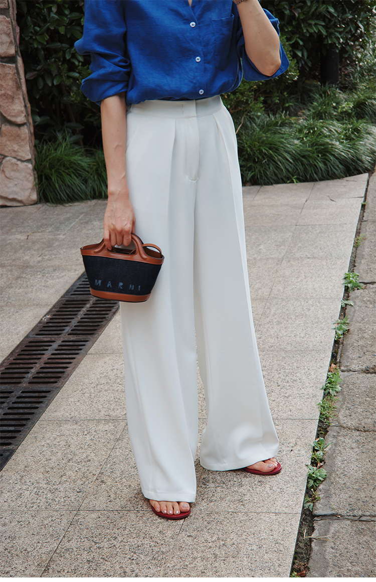"翩若轻云" 松紧腰 高腰 阔腿西装裤