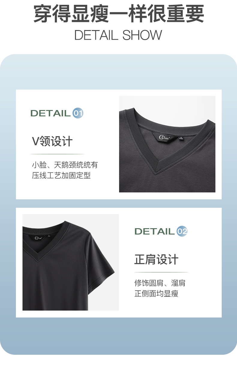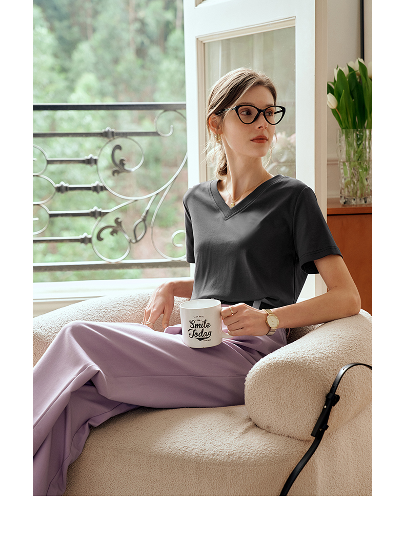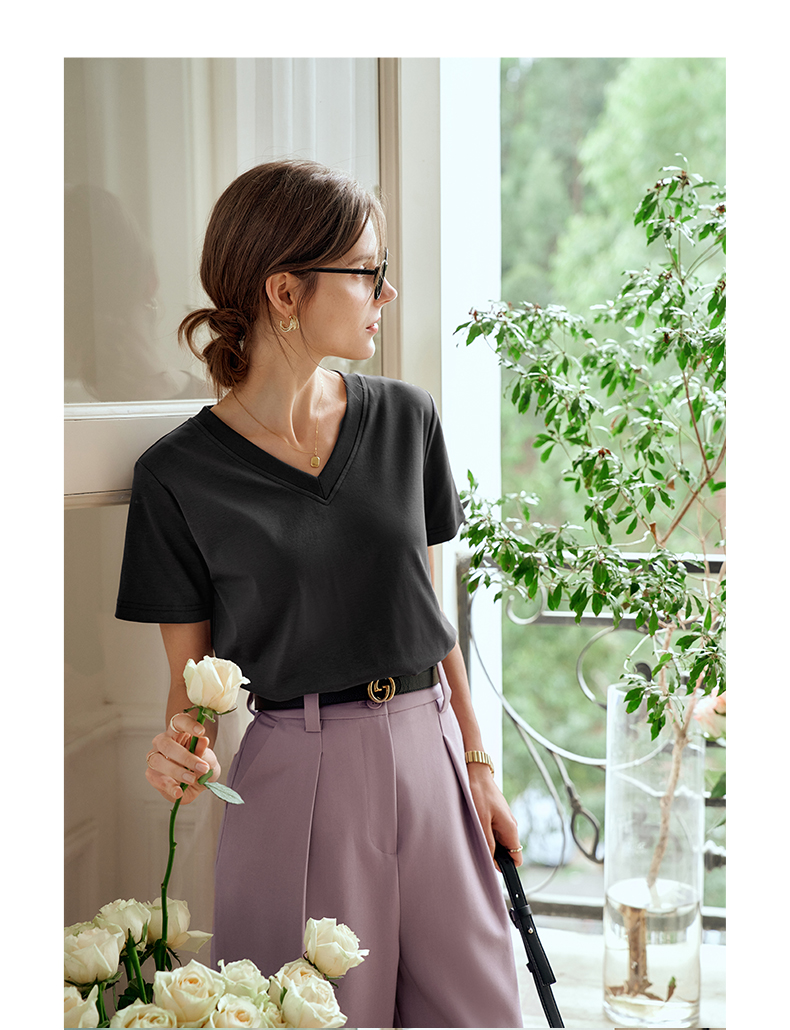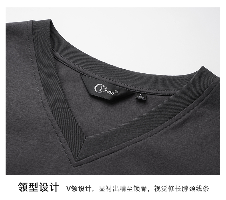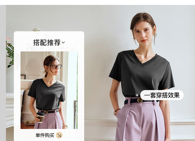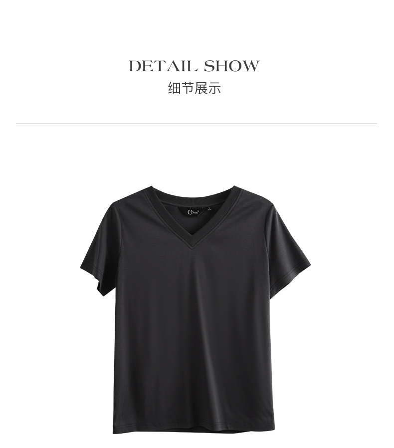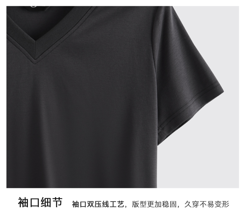 OLrain欧芮儿灰色短袖T恤女夏季2024年新款时尚V领百搭正肩上衣