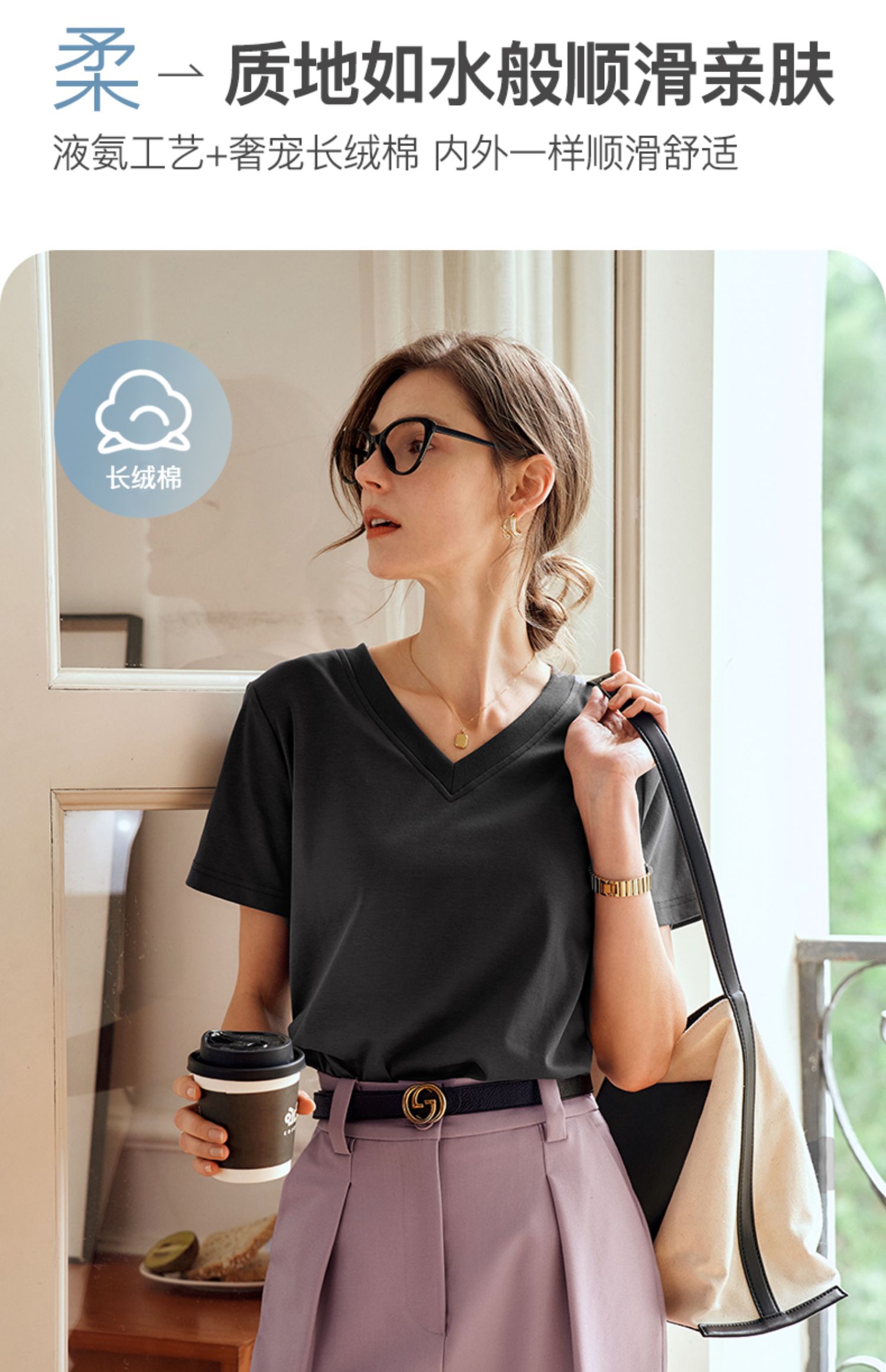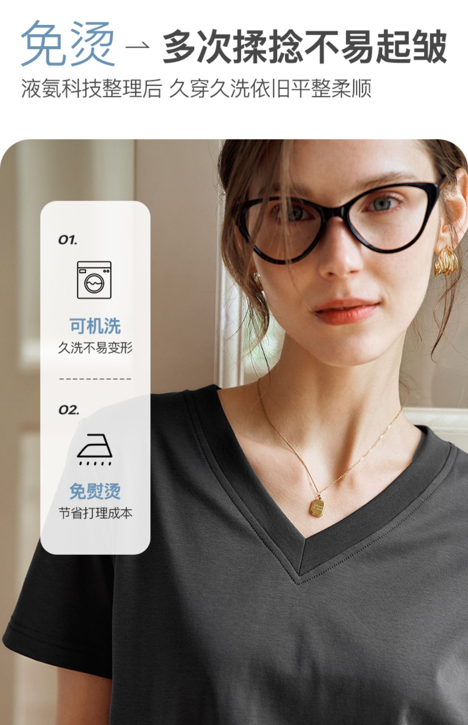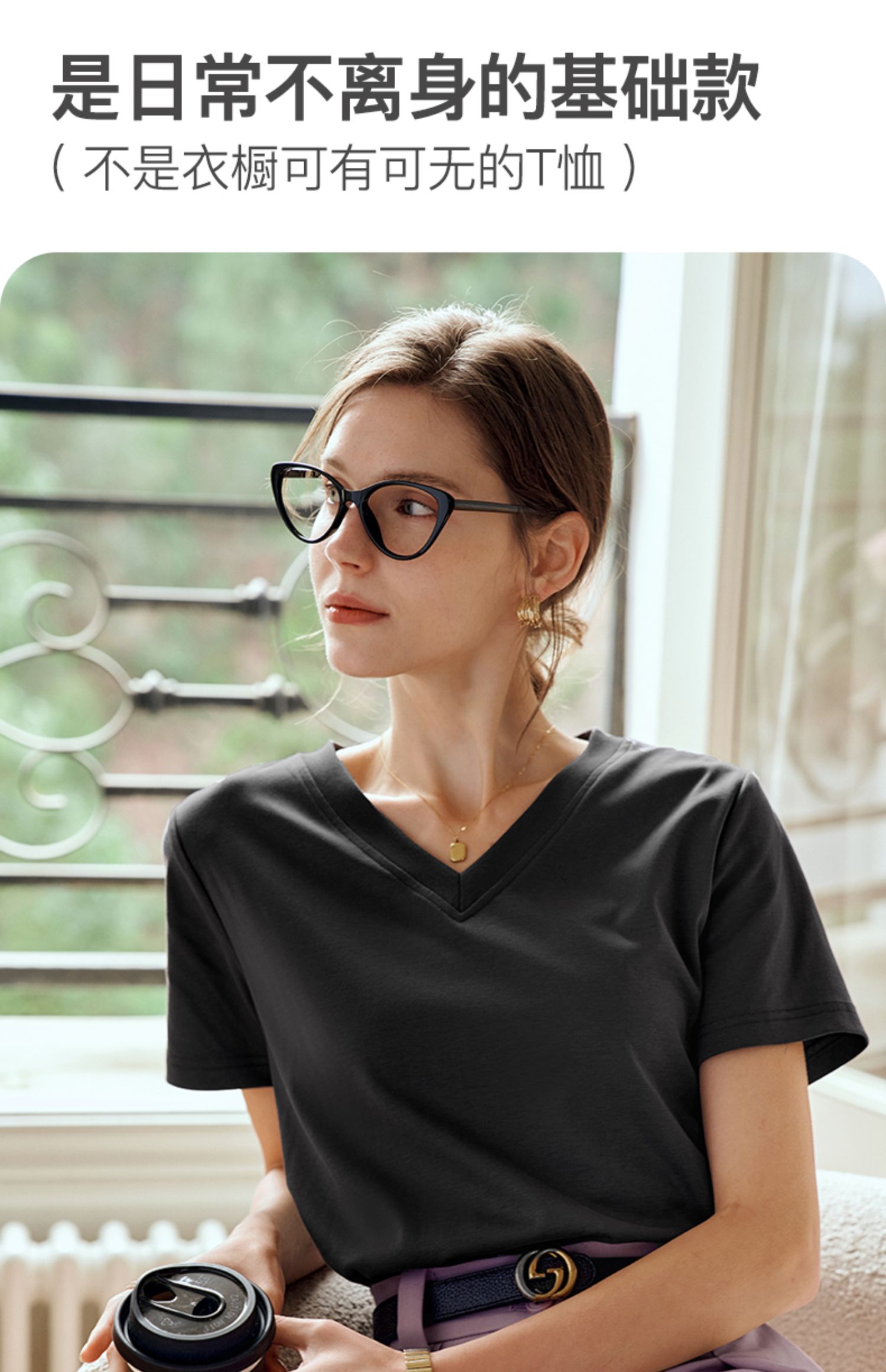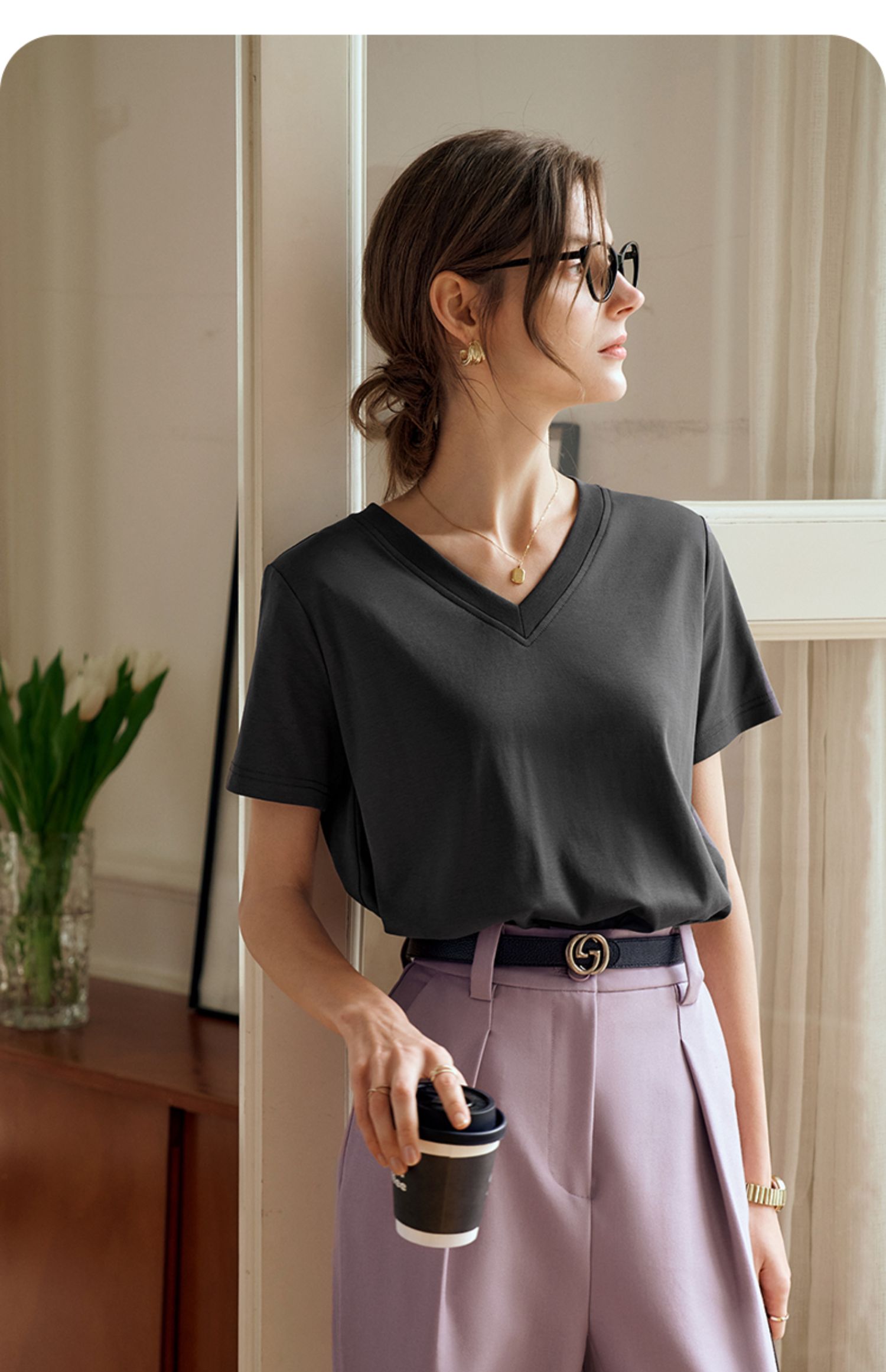 OLrain欧芮儿灰色短袖T恤女夏季2024年新款时尚V领百搭正肩上衣