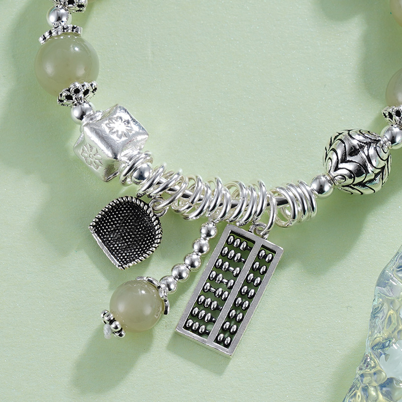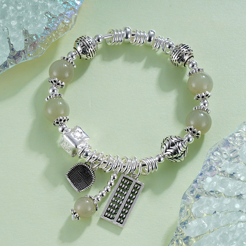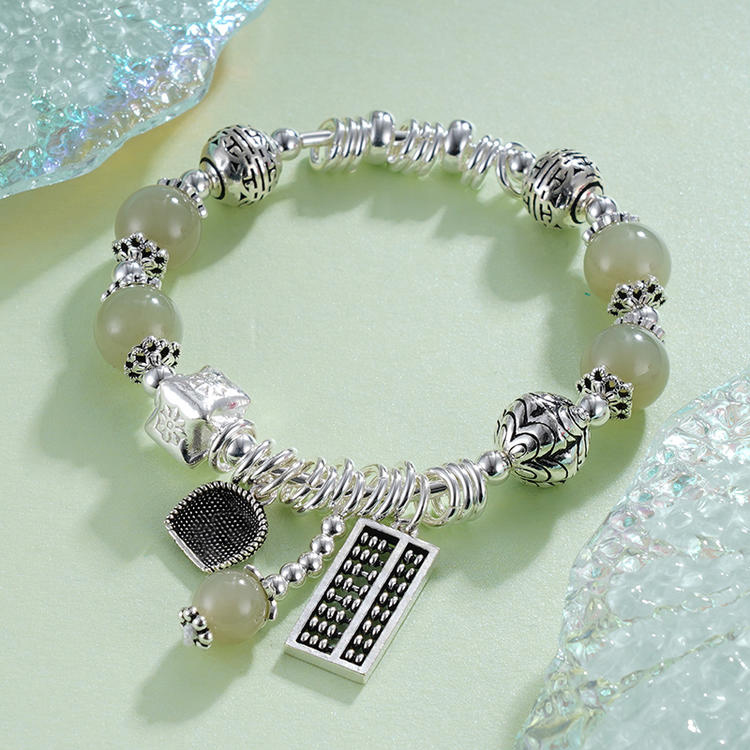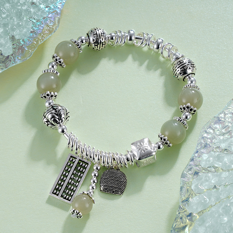 子佩集S925银【春意盎财】手链【TSB0001-30】纯银绿色青玉算盘2405