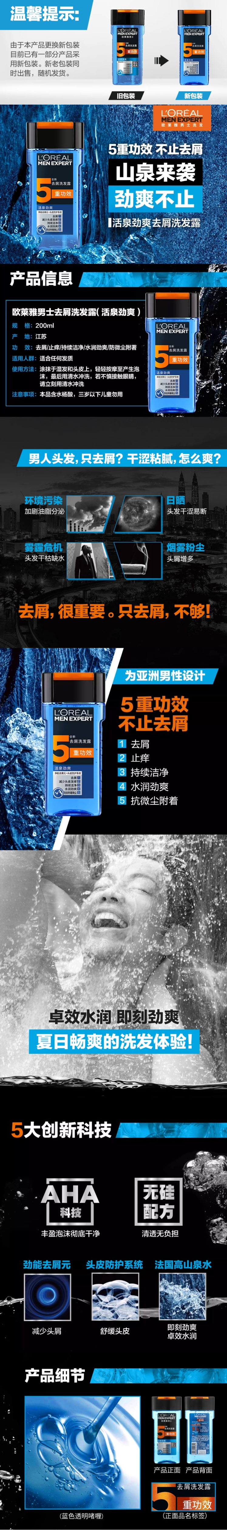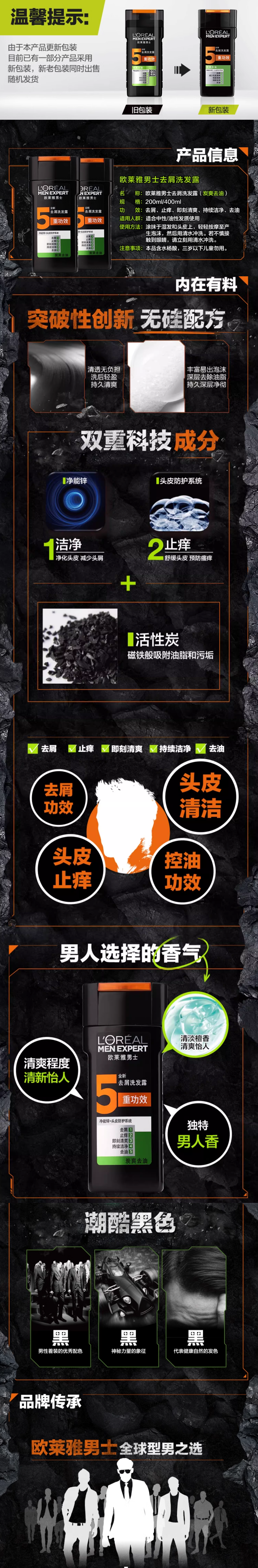 【25元会员福利】欧莱雅男士洗发露200ml