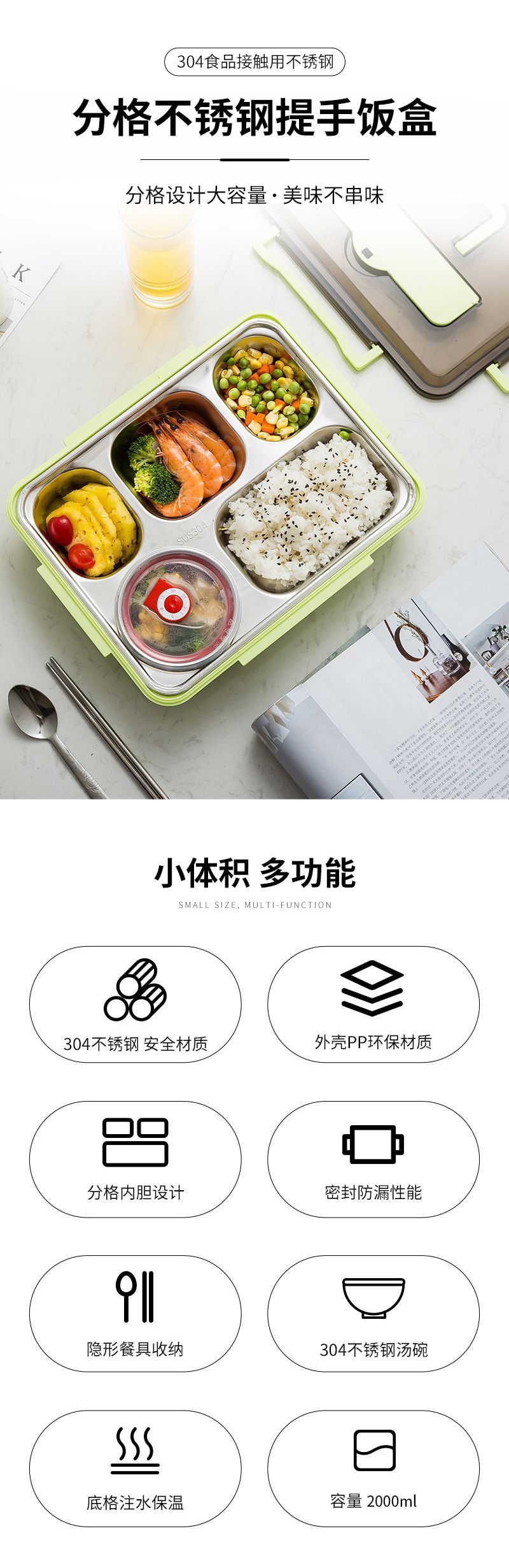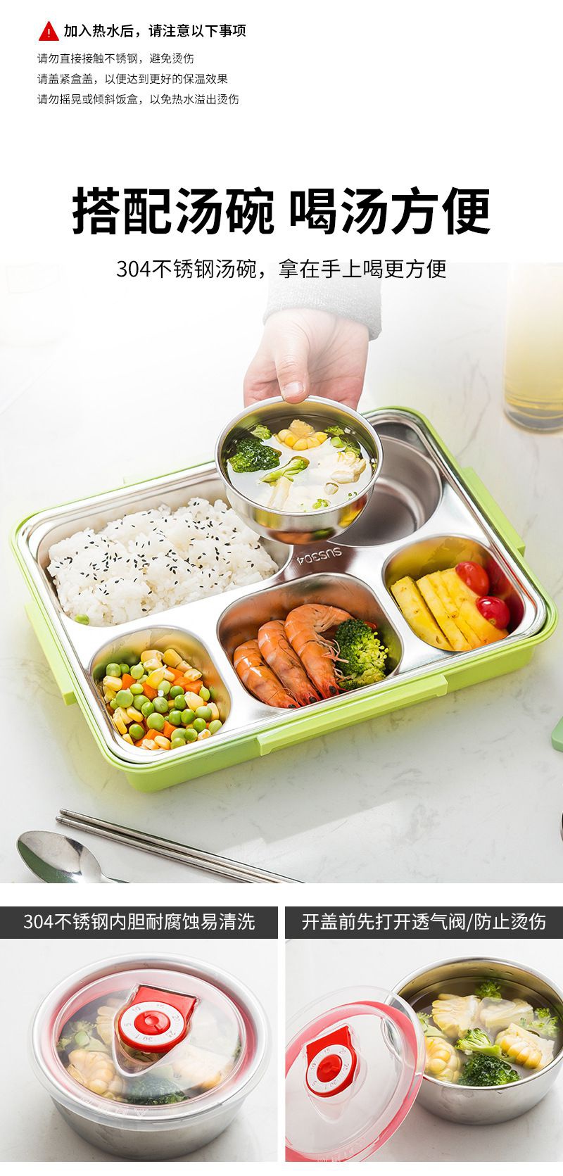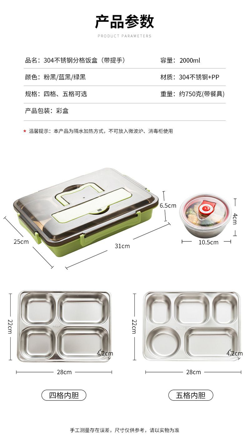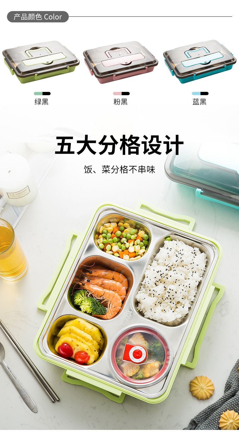 博尔乐乐视方形大号提手快餐盘五格(颜色随机)