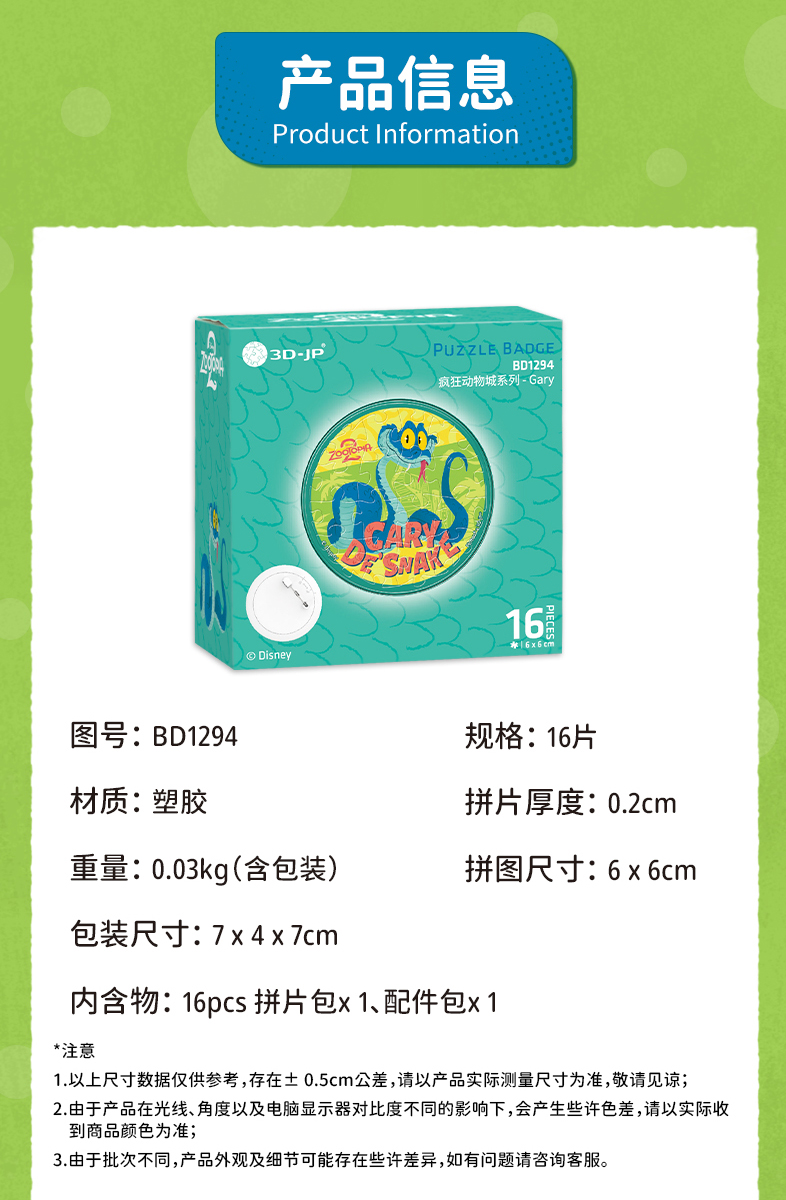 16片 徽章拼图 BD1294 疯狂动物城系列-Gary