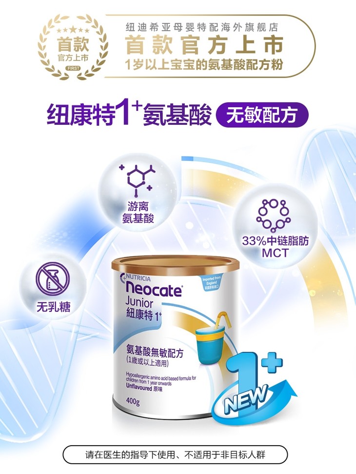纽康特(Neocate)1+ 港版 氨基酸无敏幼儿配方粉 原味 一岁或以上适用 400g