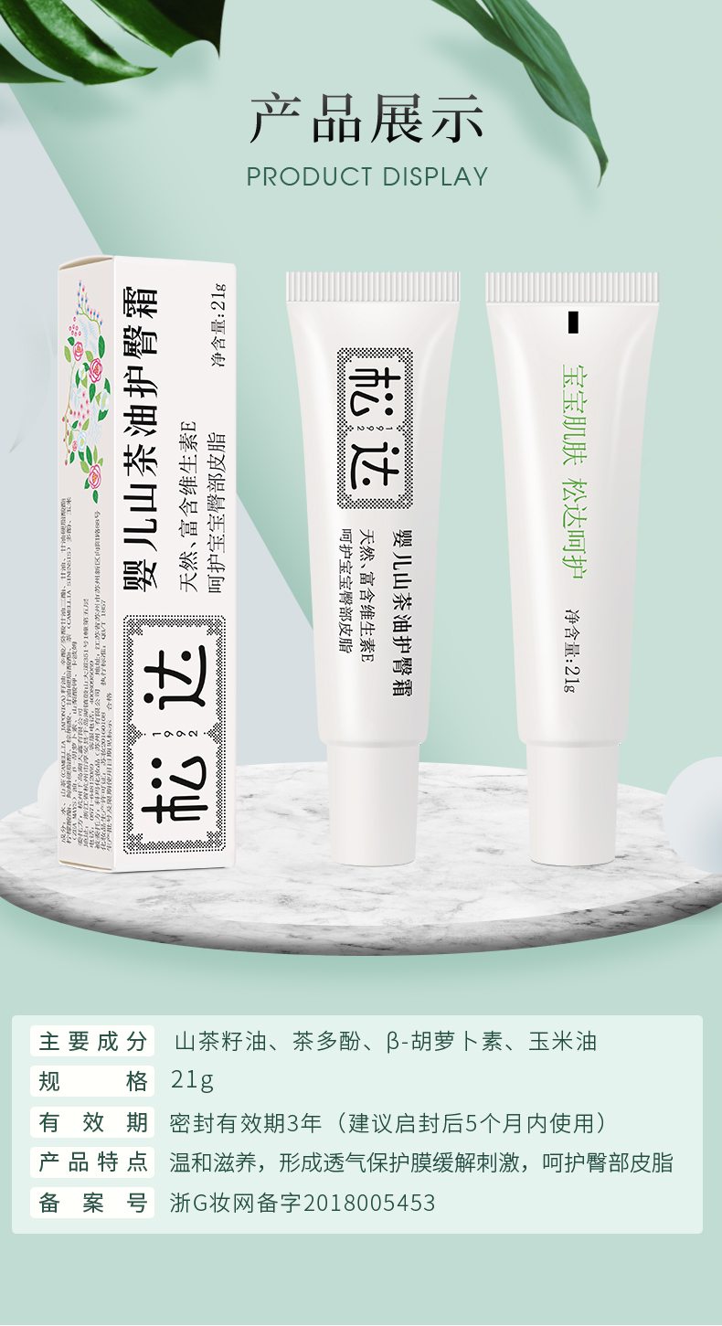 松达婴儿山茶油护臀膏新生儿护肤宝宝婴宝红屁屁PP霜股婴幼儿软膏