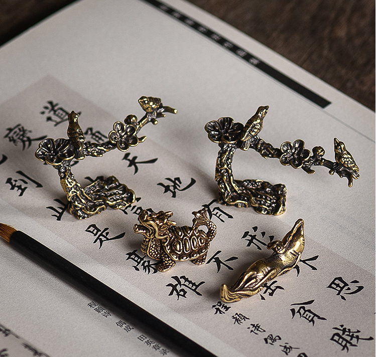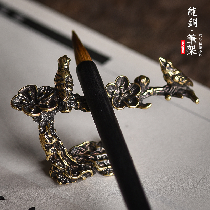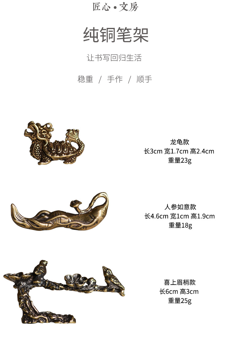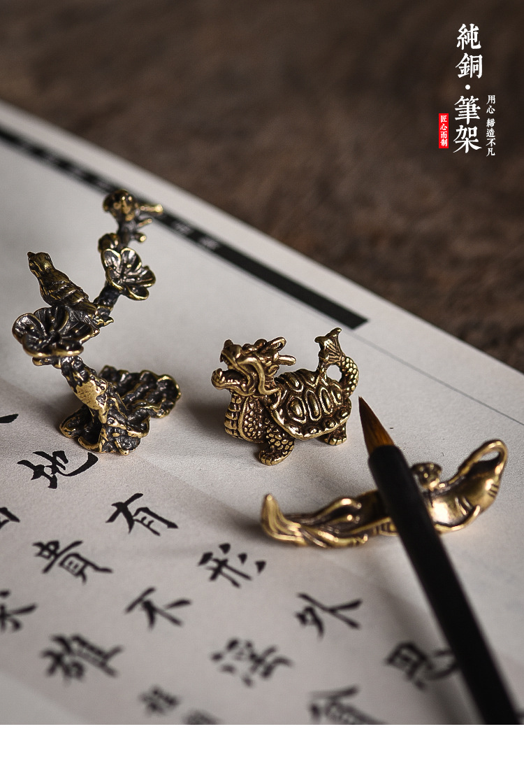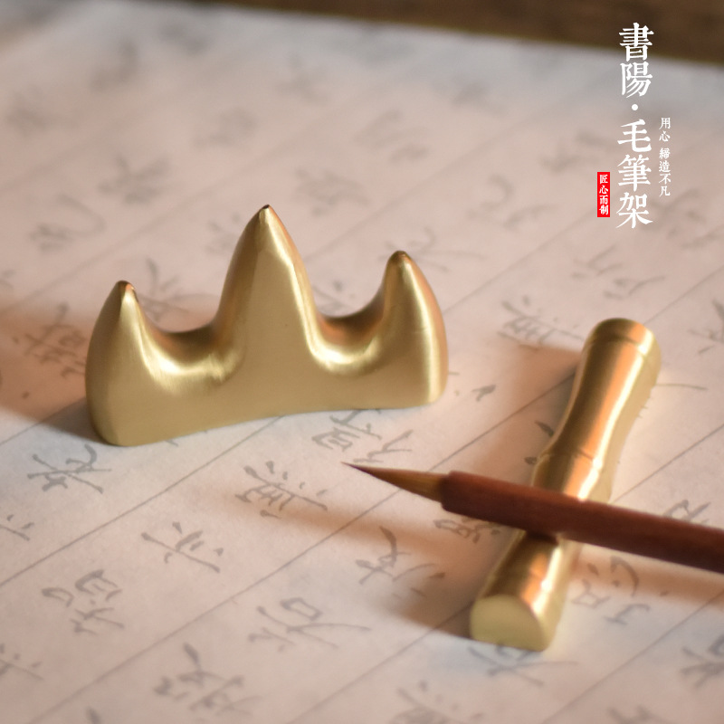 实心纯铜 毛笔架 笔山 笔搁 多功能 文房四宝书房