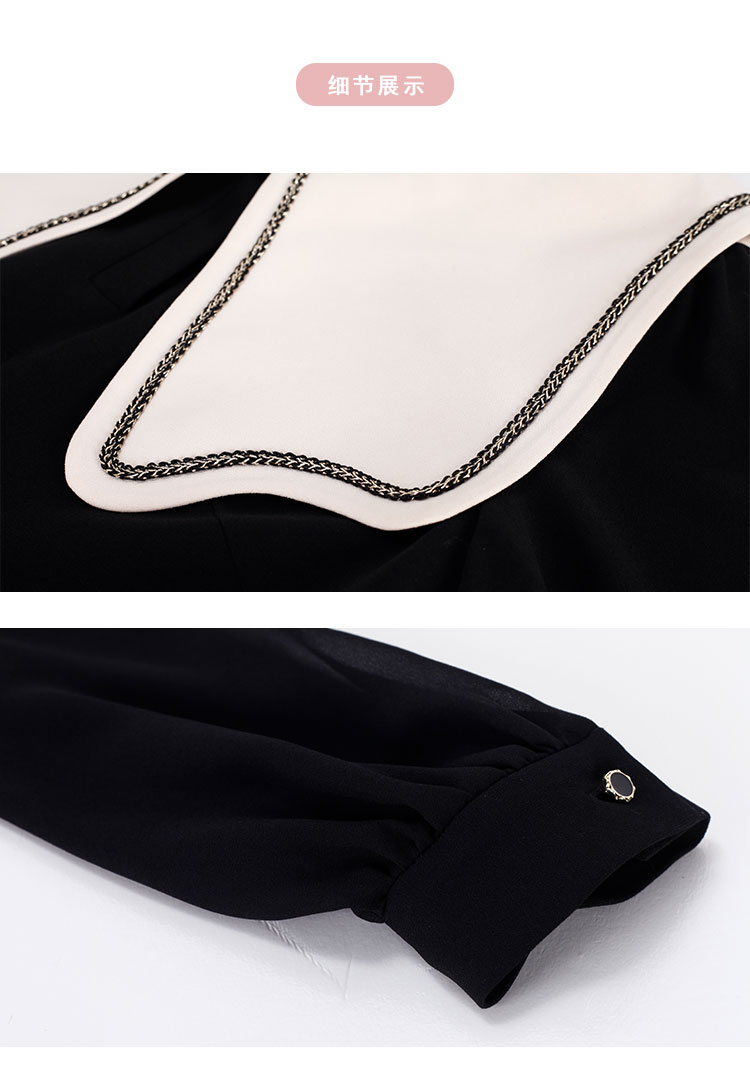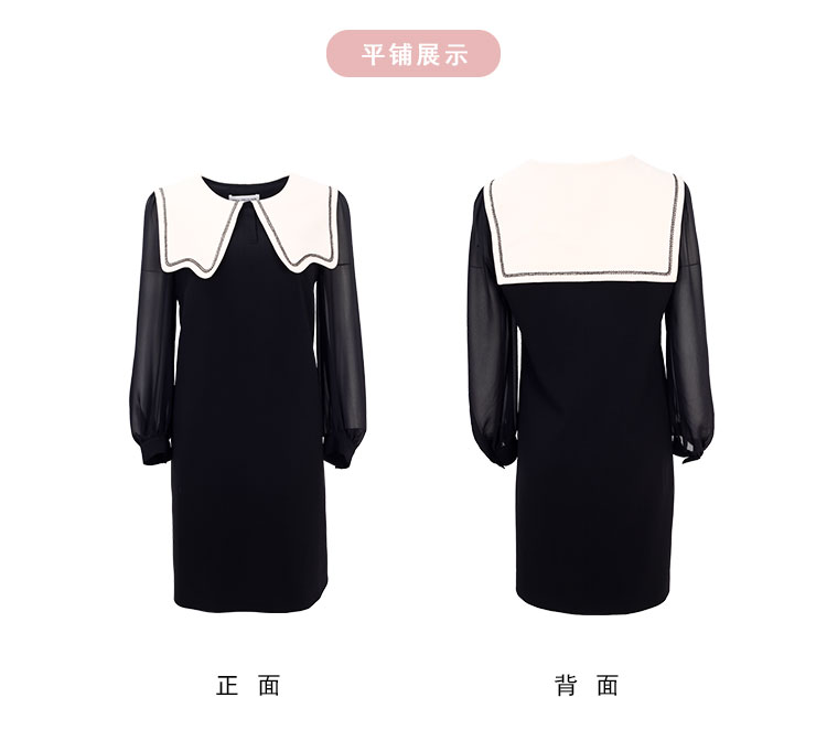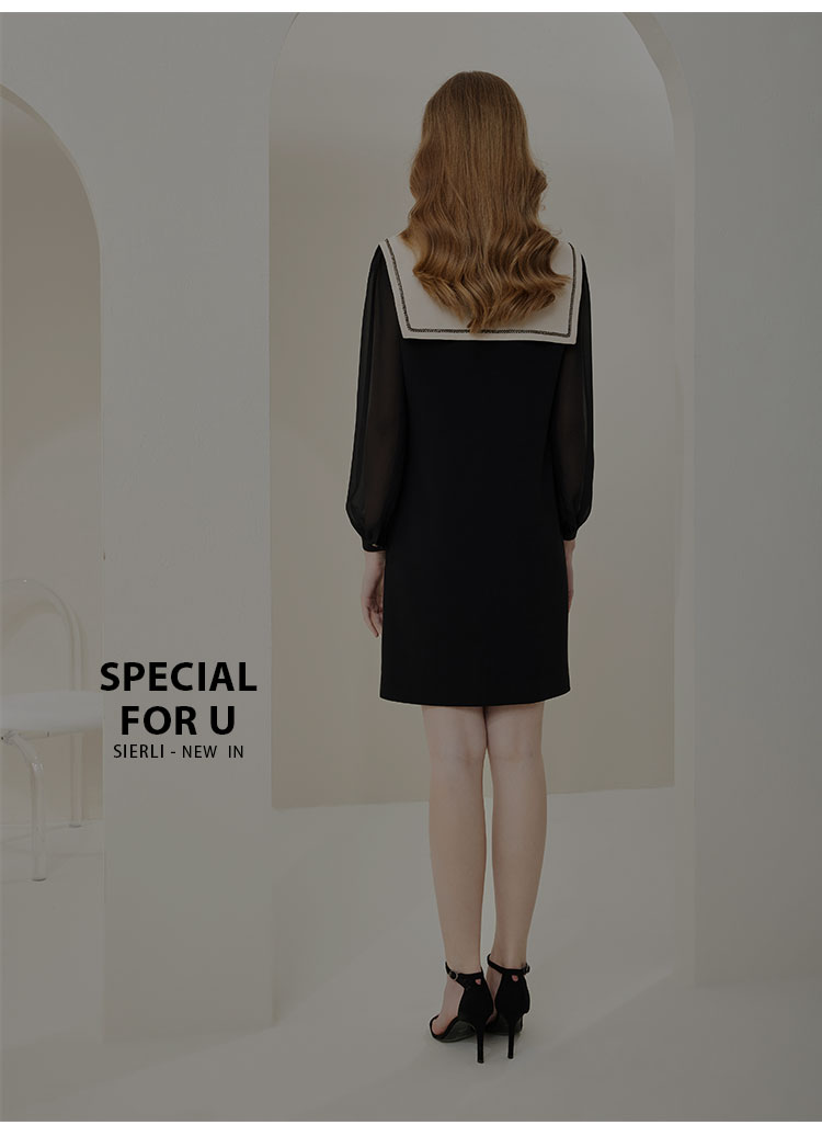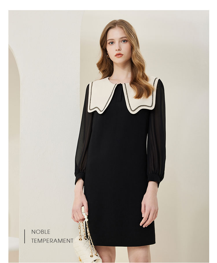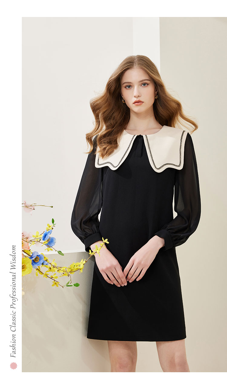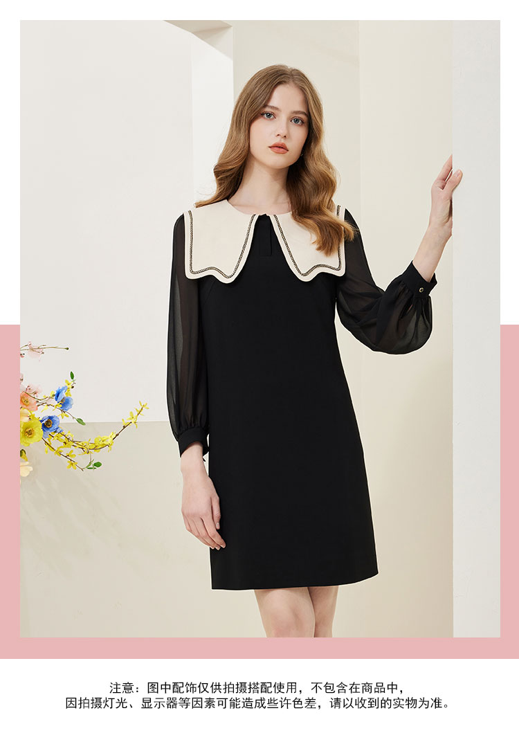 QE85A斯尔丽瑟俪2023春新款娃娃领灯笼袖小黑裙连衣裙