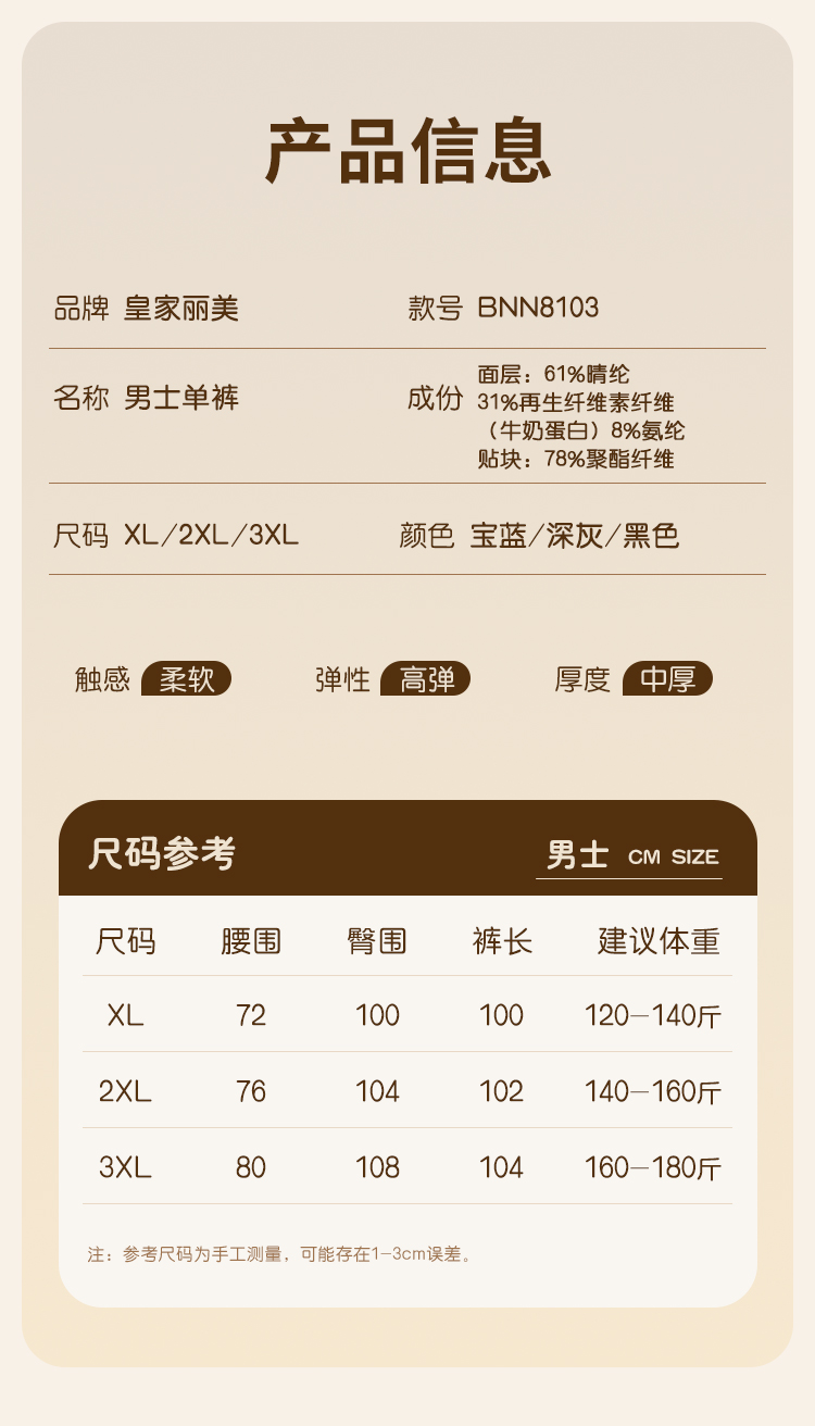 皇家丽美轻保暖牛奶衣打底裤贴合大弹力秋裤单裤BNN8103