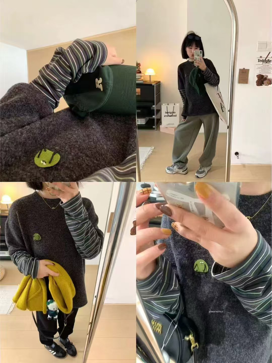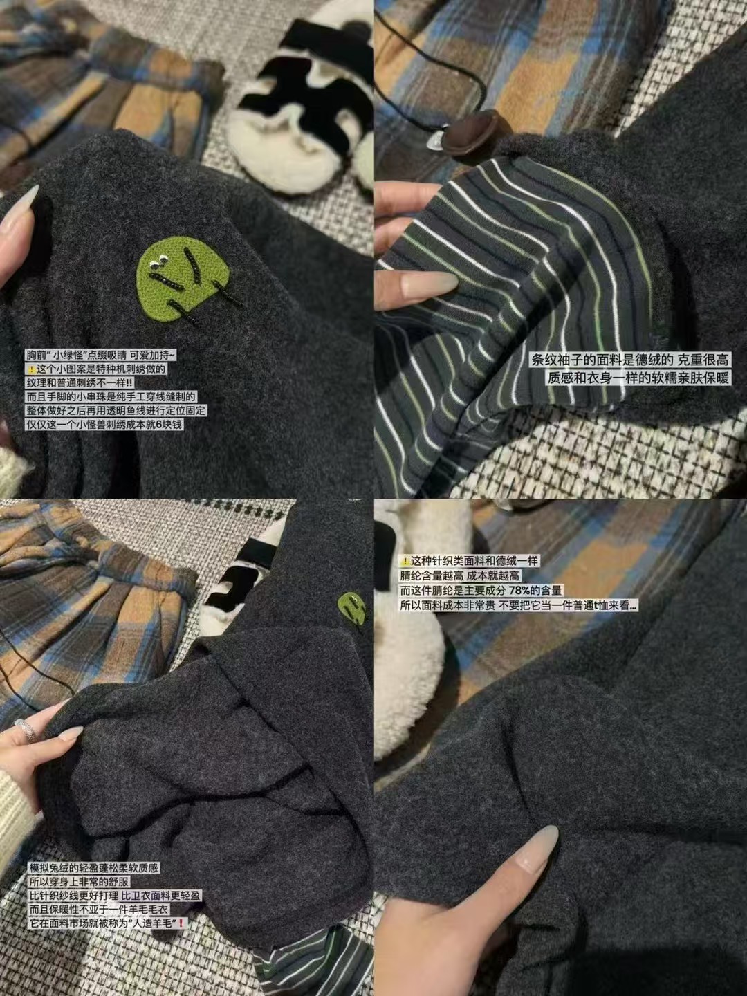 胸口还有绿色小怪兽刺绣,可爱感十足~