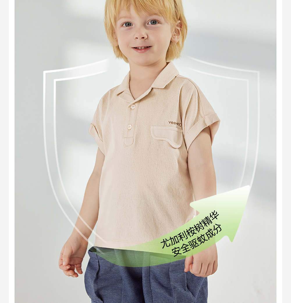 英氏儿童T恤夏季短袖透气男童T恤上衣2025新款POLO衫YRTCJ2R020A