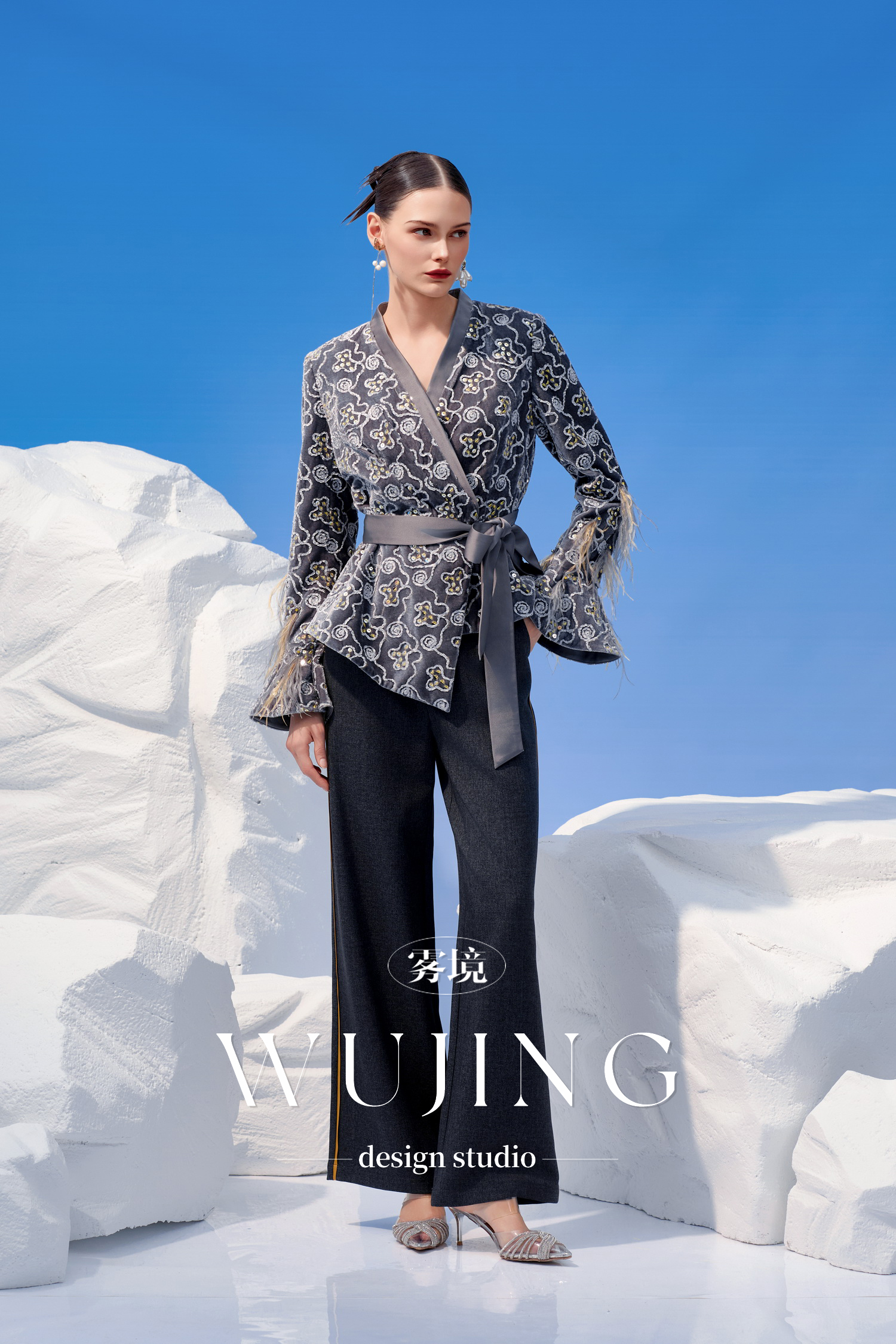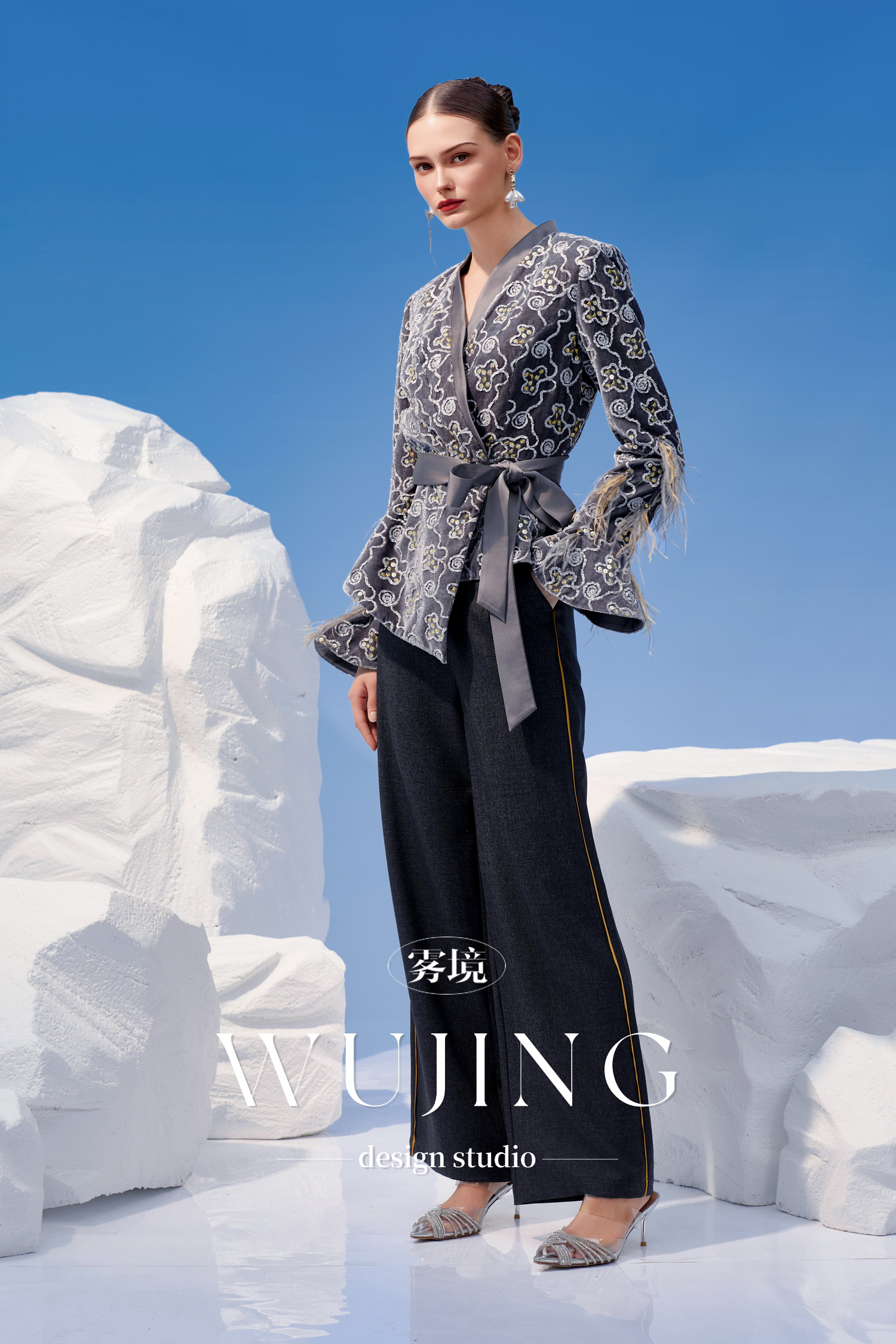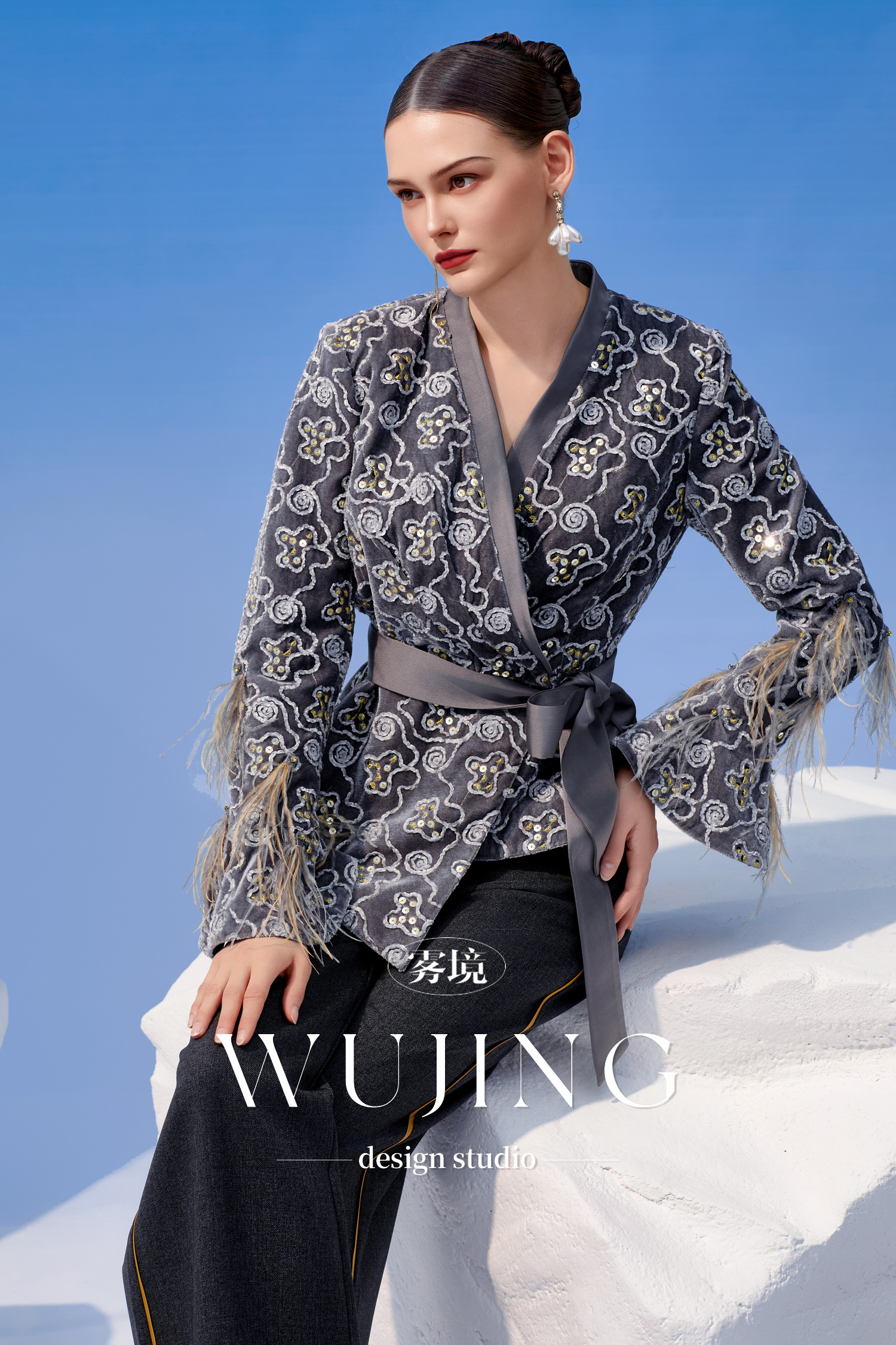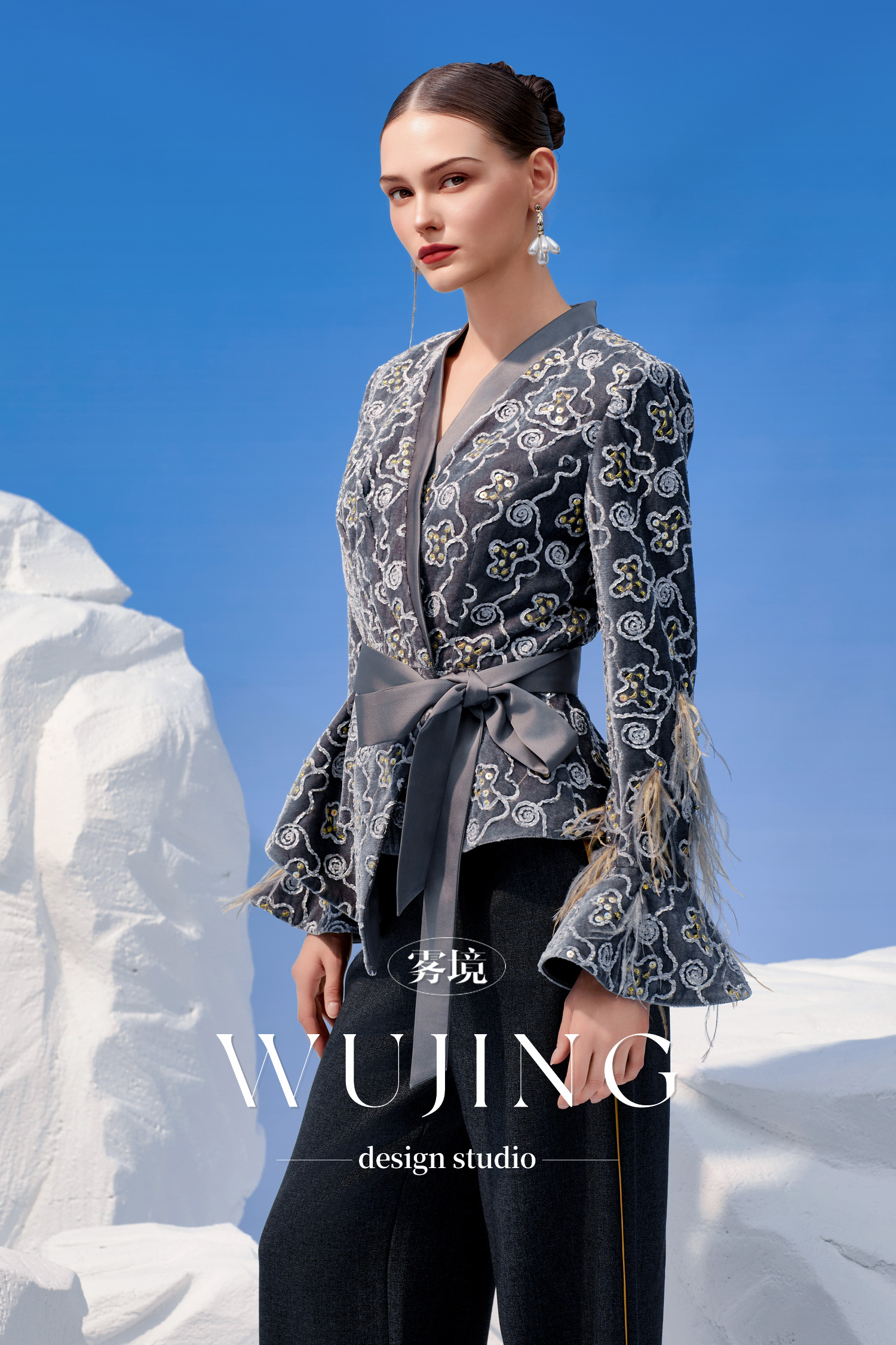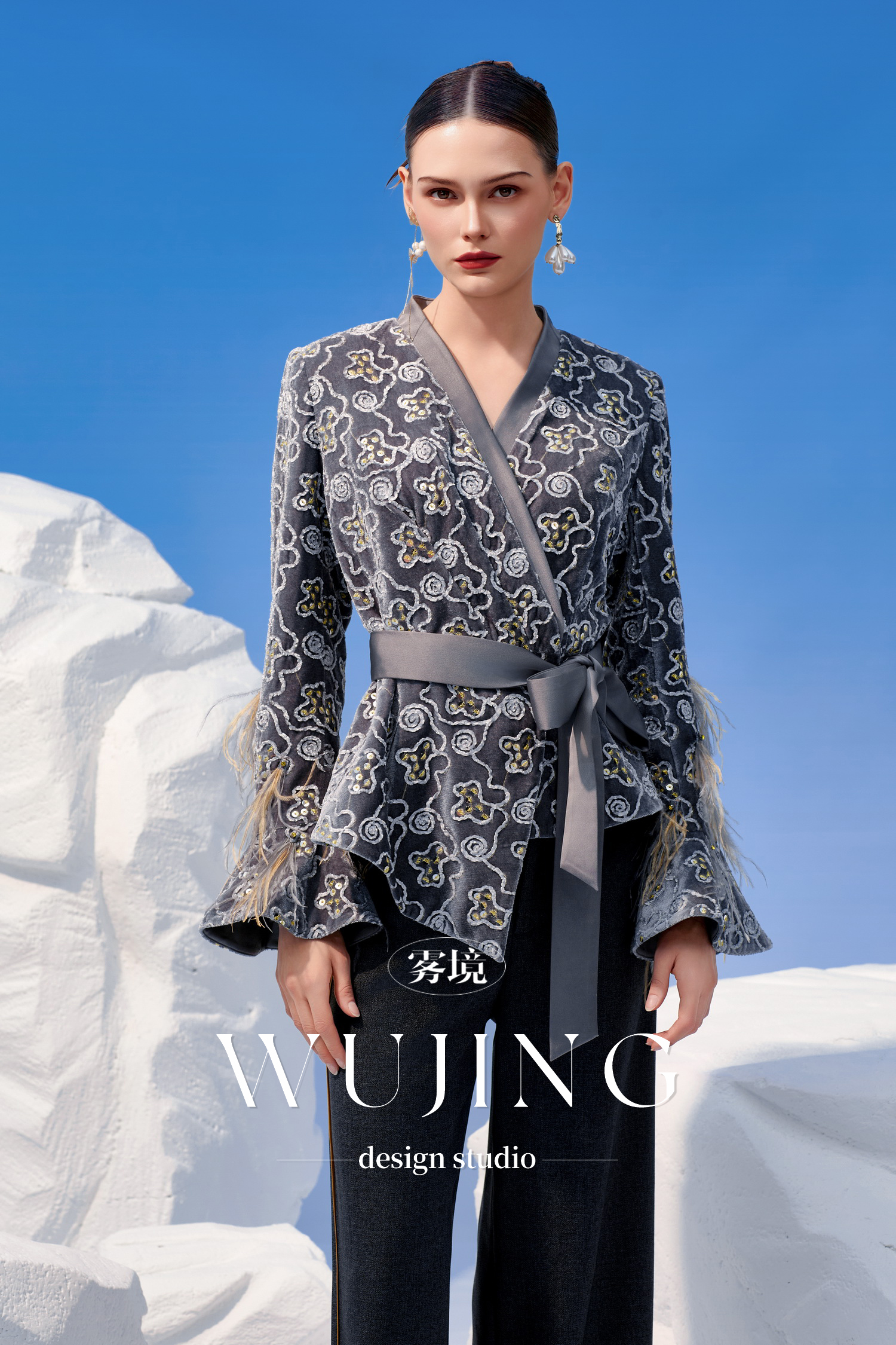 3205003 烟岚云岫 韩国进口水晶乔其纱上衣 雾境