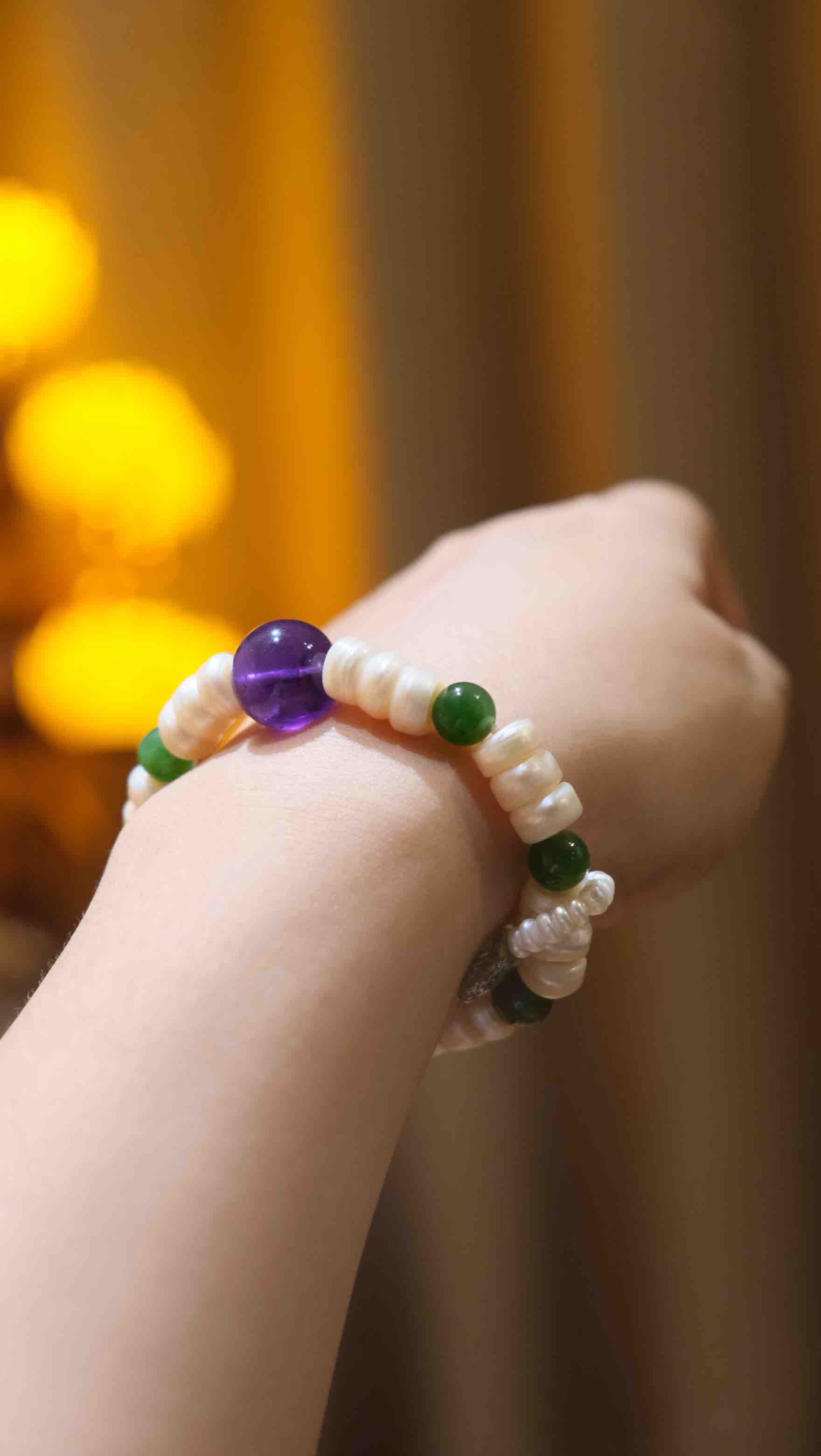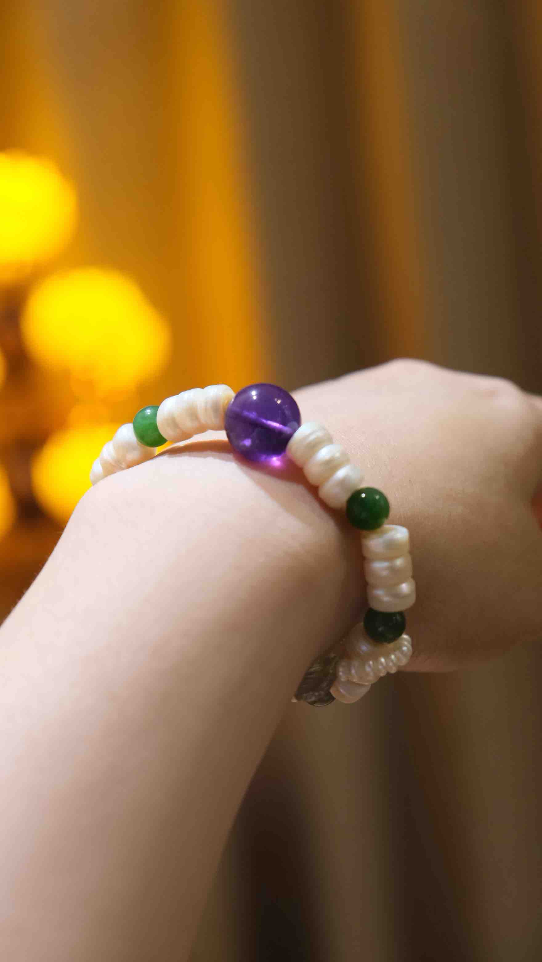 我永远不会忘记有一次我在外面饭店吃饭,看见一位中年女子一个人在吃,蓬松微卷的发型,手上不经意间露出来的紫水晶手串,居然是10mm的绕手4圈哦!!!当时我着实看愣住,被深深吸引… 那时候你不会觉得10mm四圈?会重吗?会夸张吗?没有!!你只是完全被那种能量场!那位女士所散发的感觉所迷住!!我就一直看着她,真是好像在和她的灵魂产生了一场热烈的交流!!