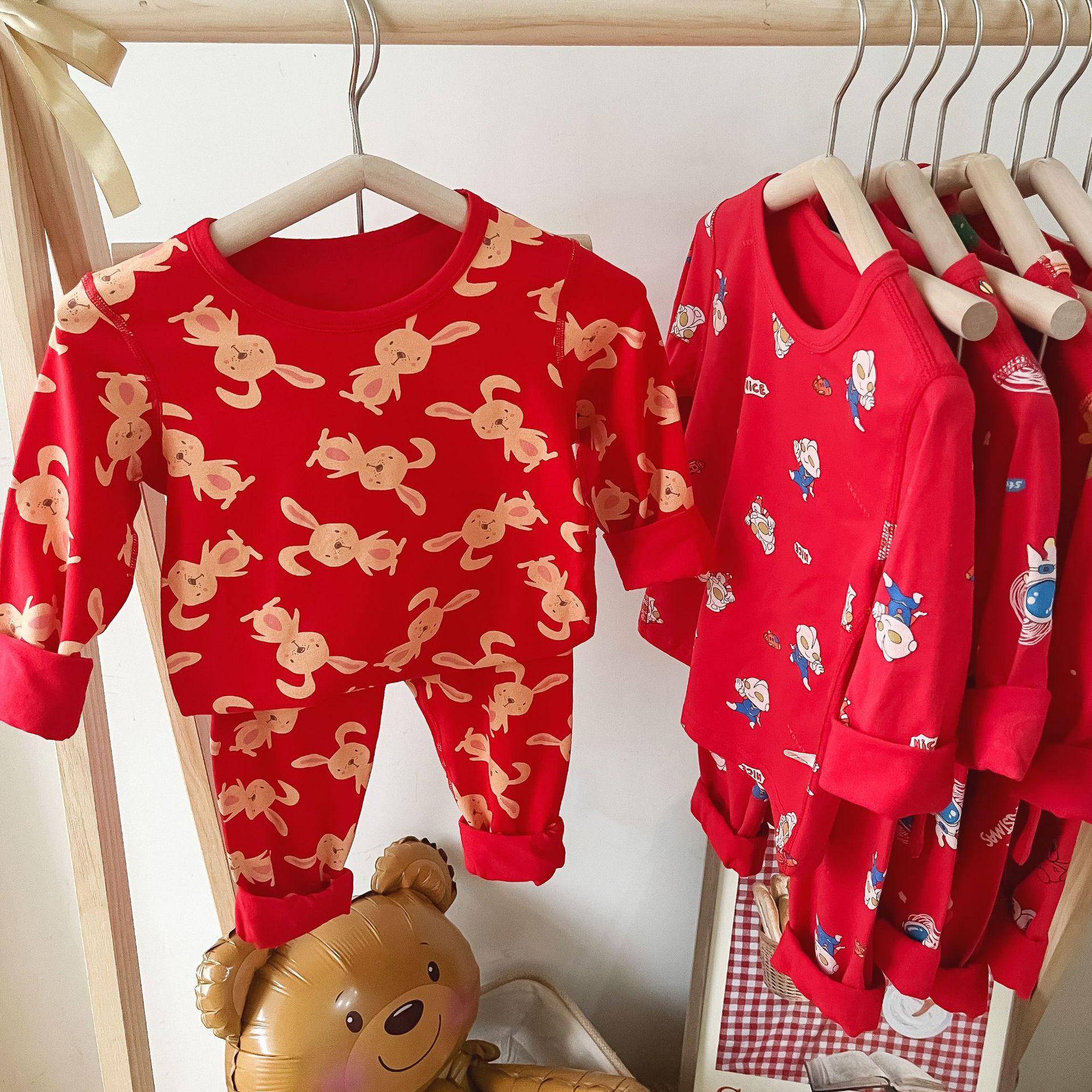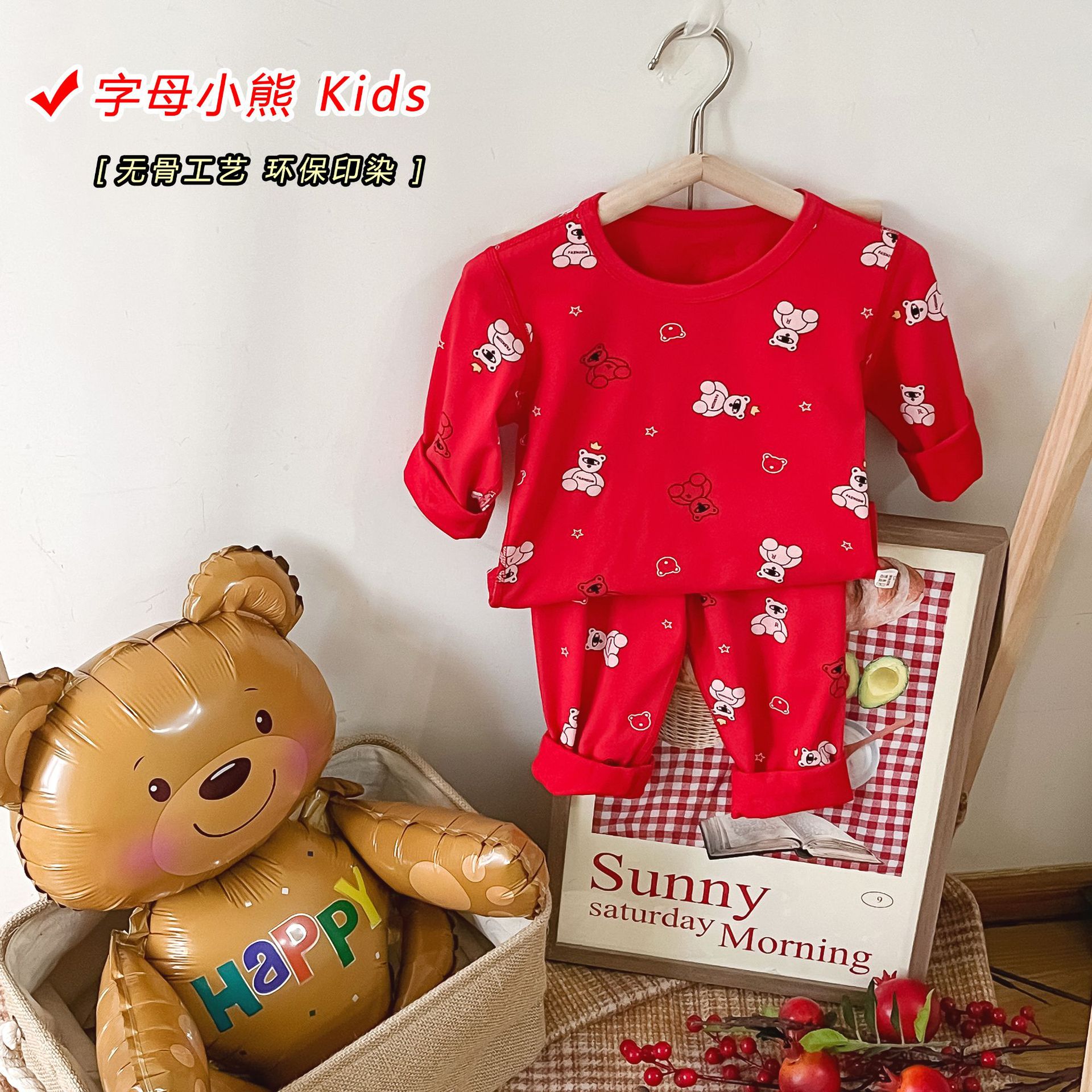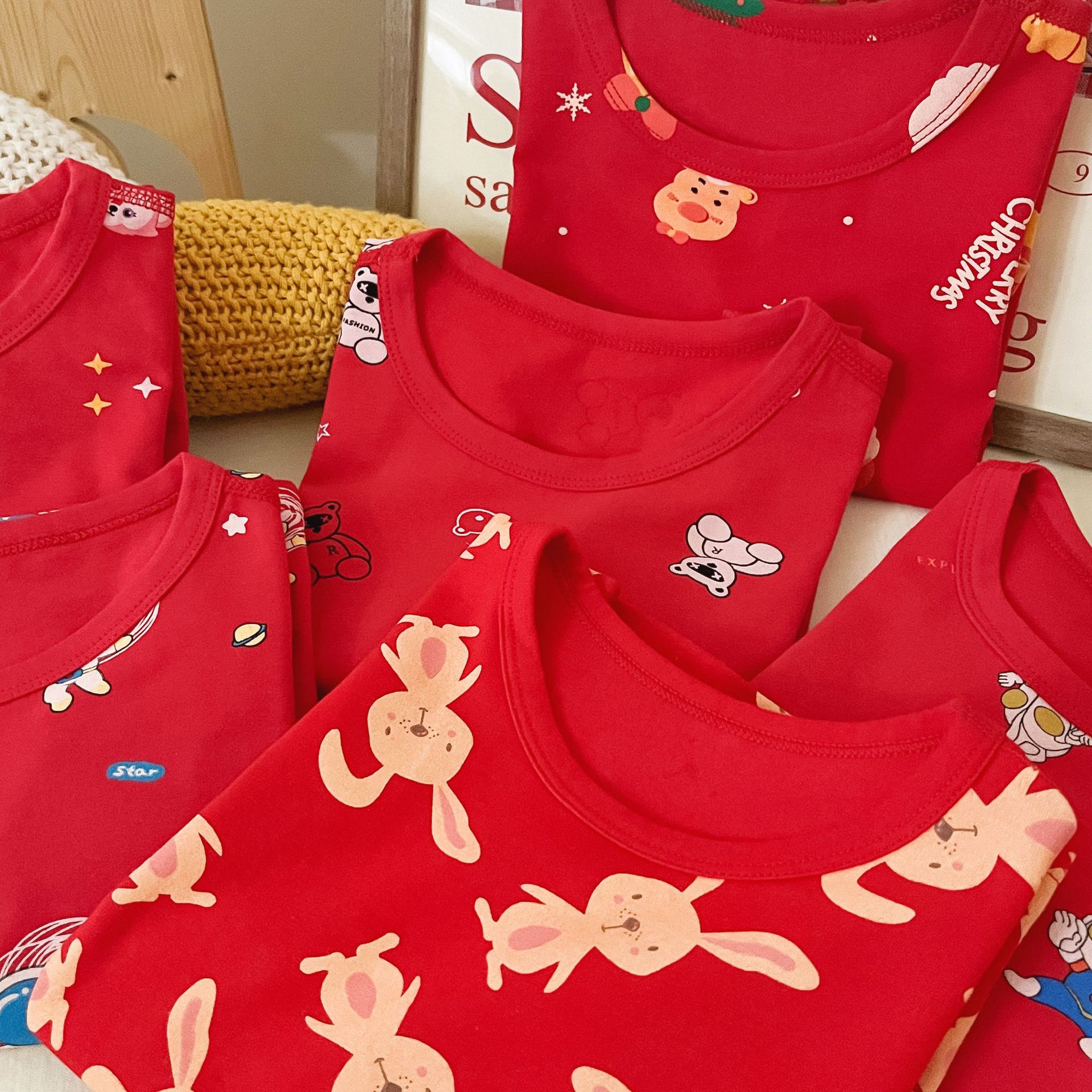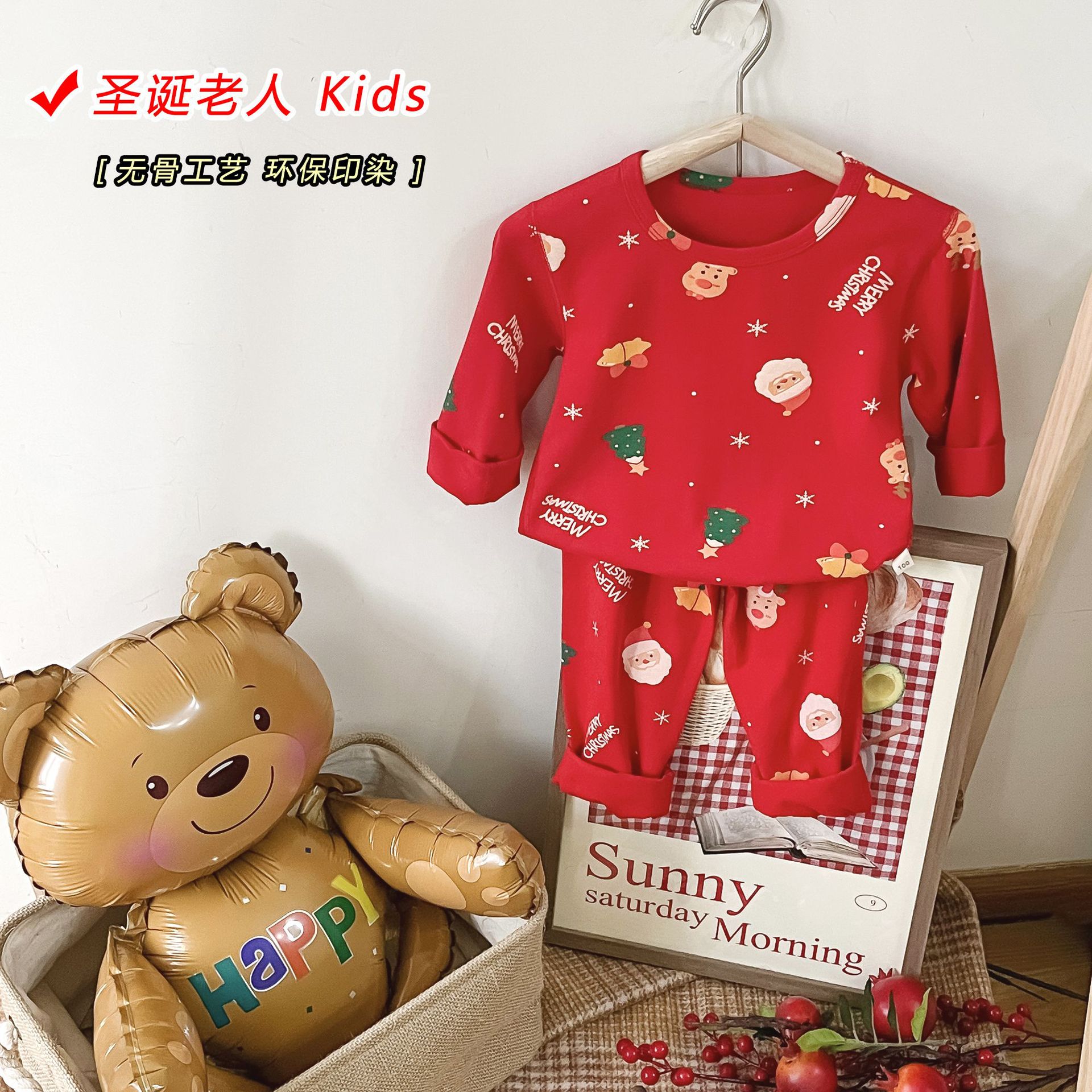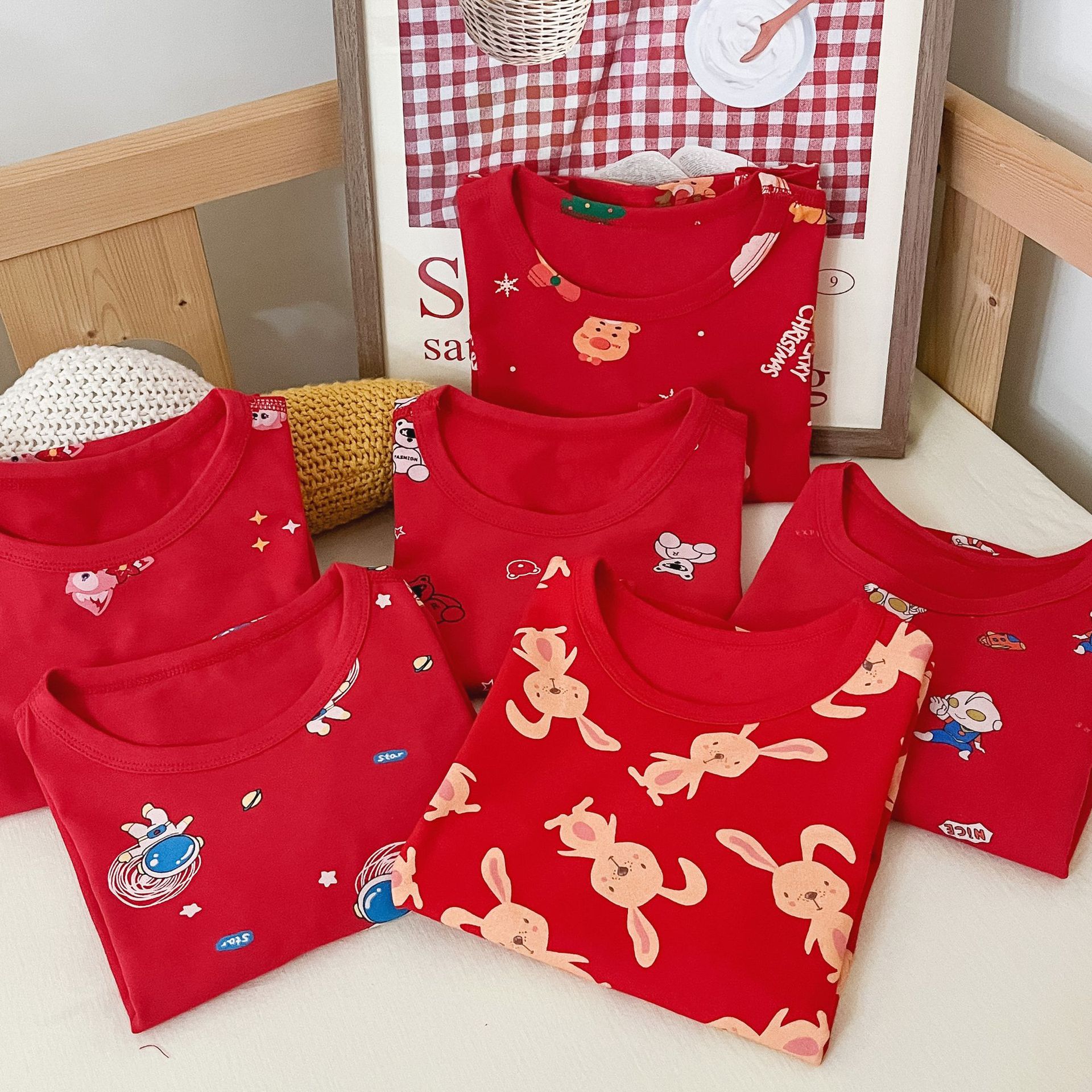 儿童本命年无骨内衣套装 男女童新年圣诞喜庆大红家居服秋衣秋裤