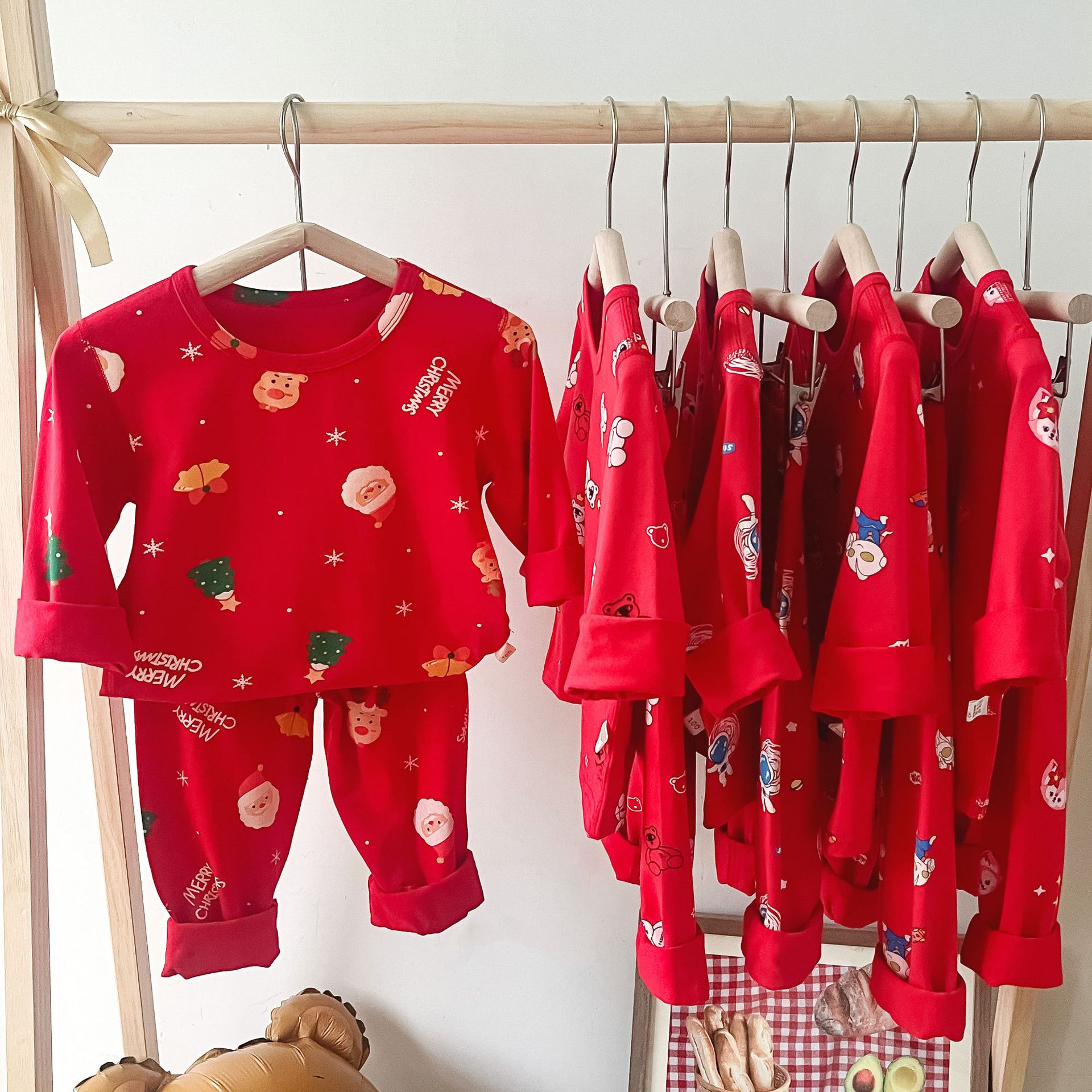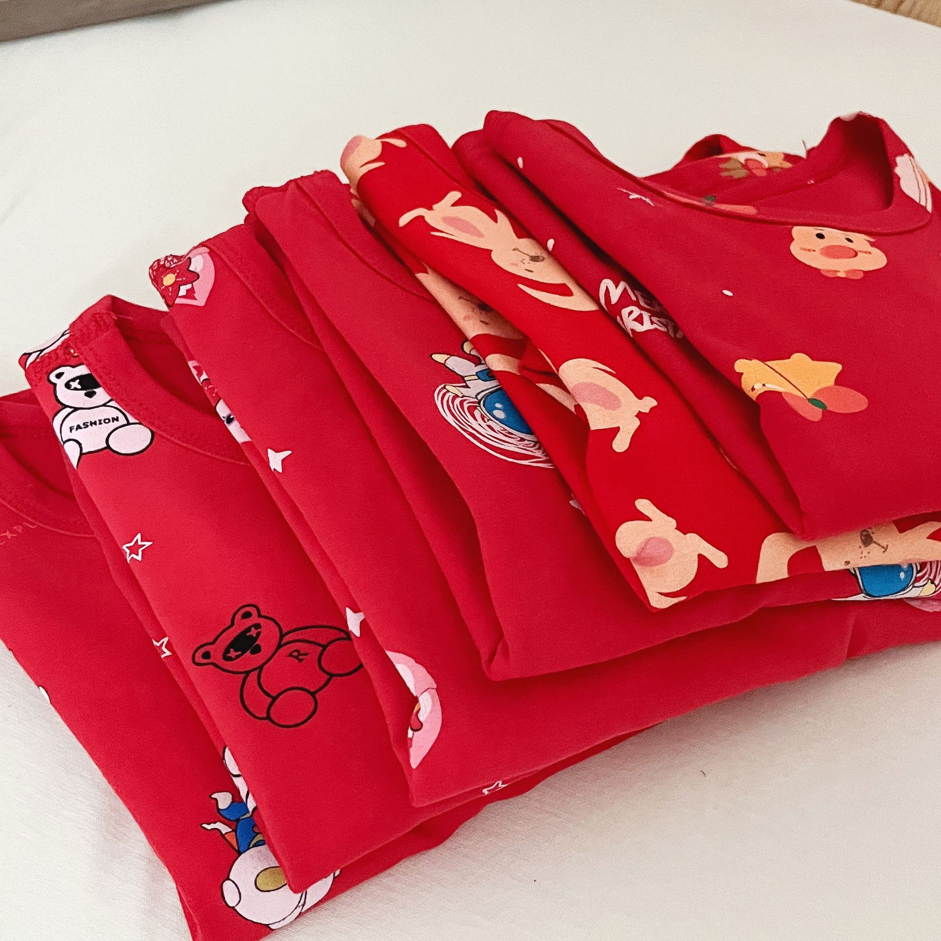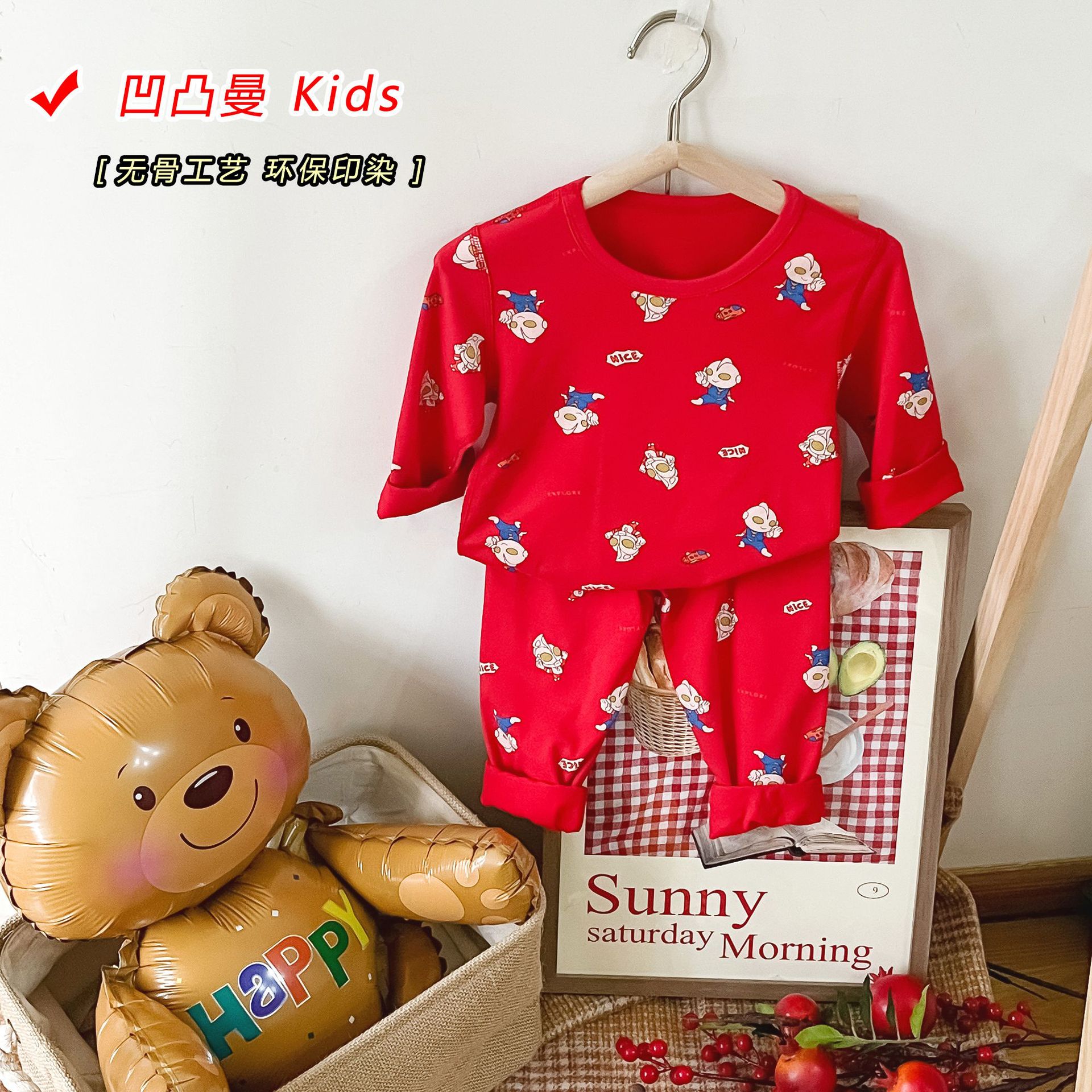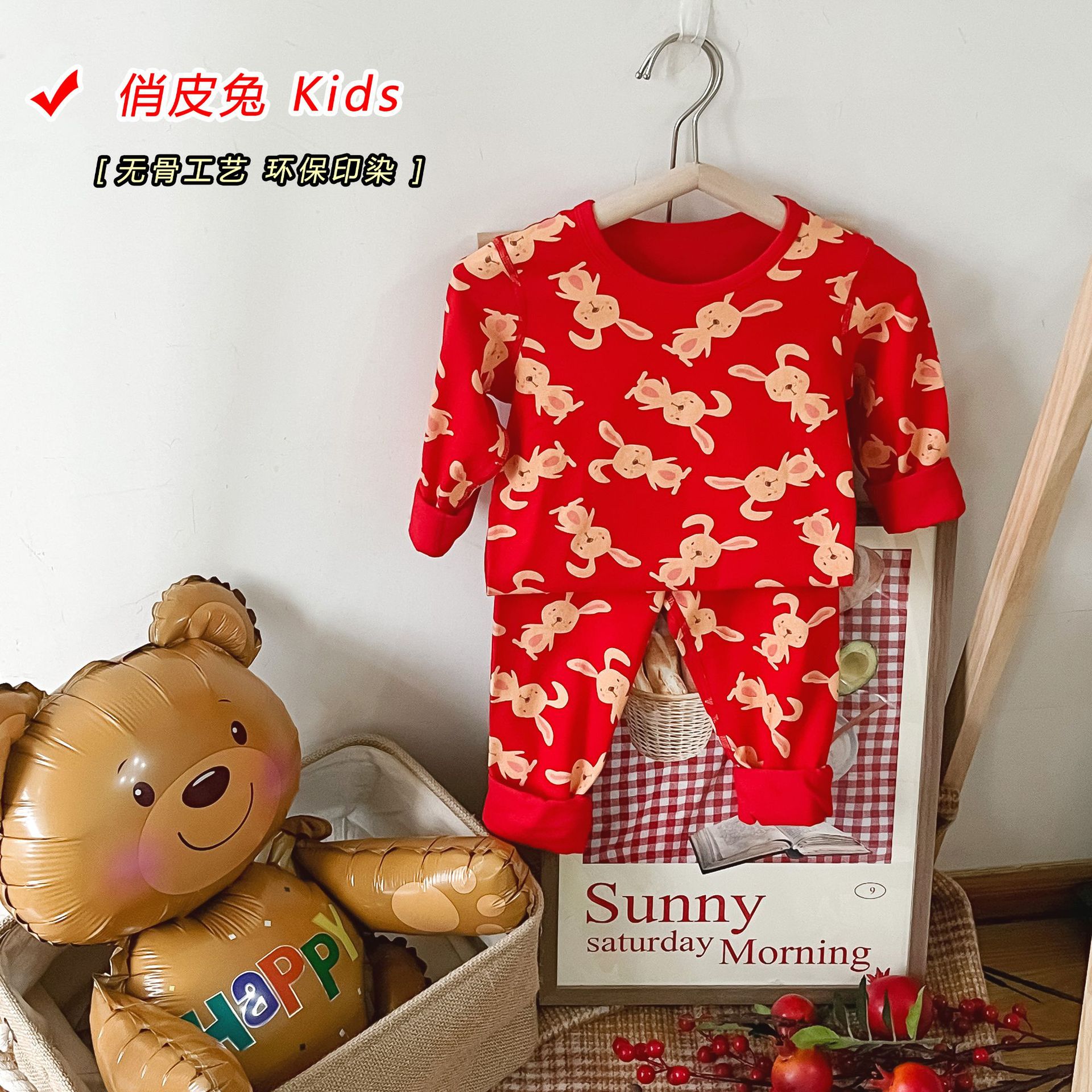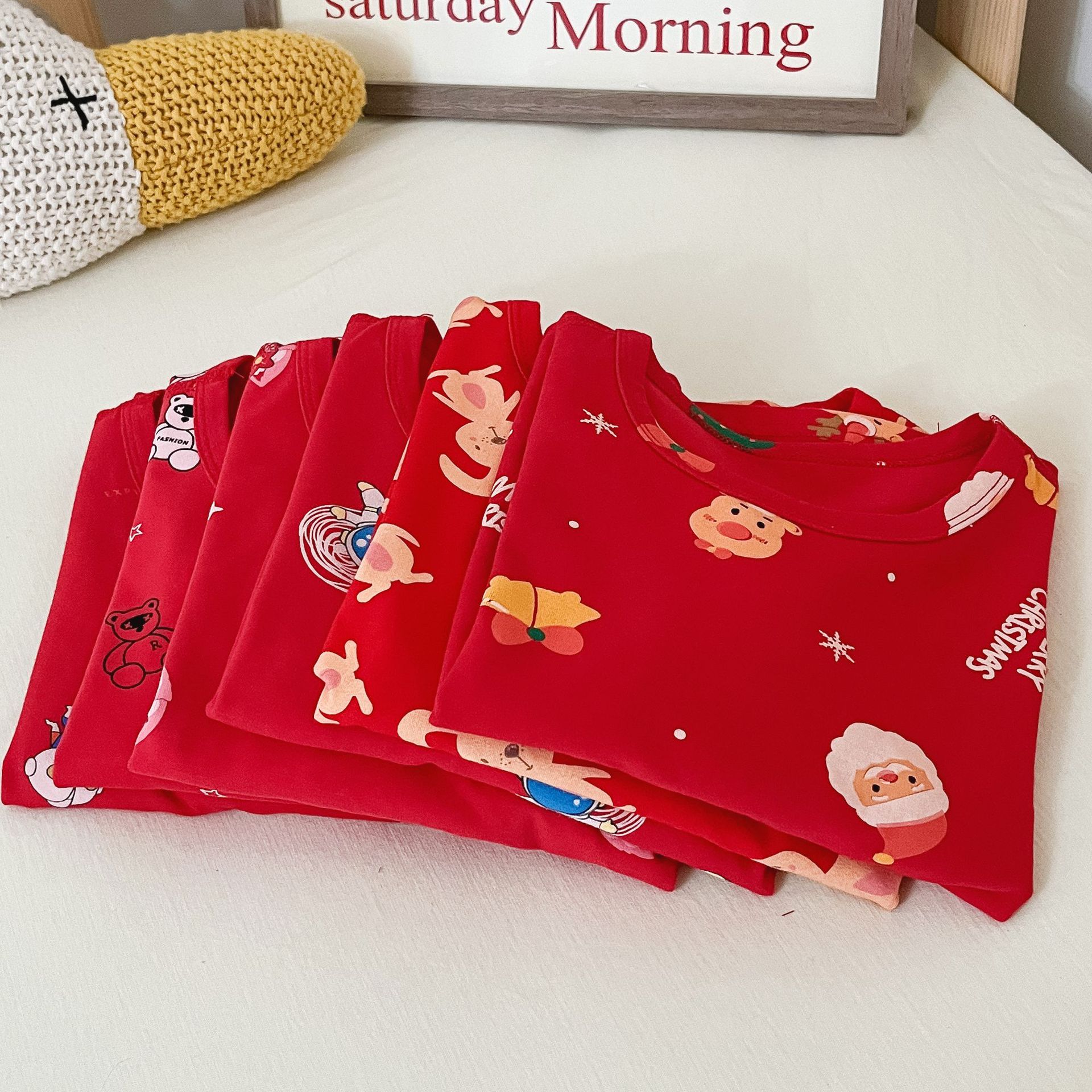 儿童本命年无骨内衣套装 男女童新年圣诞喜庆大红家居服秋衣秋裤