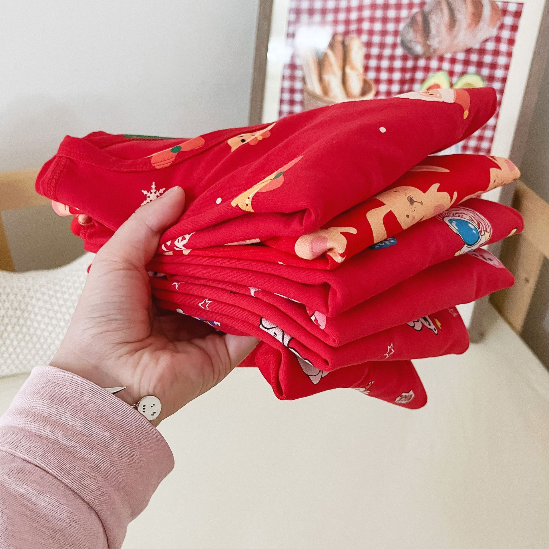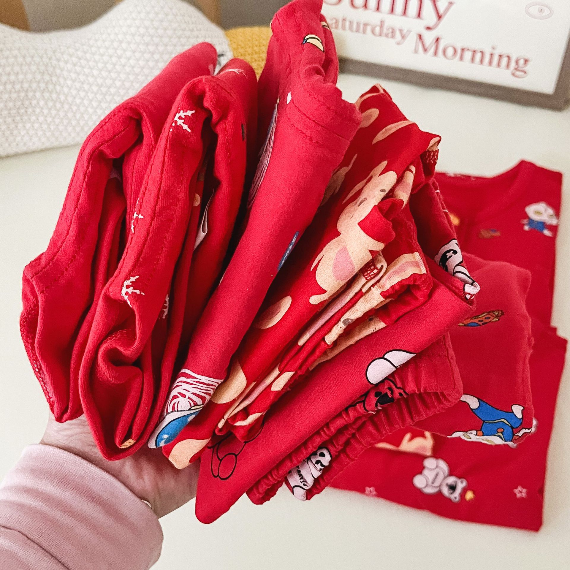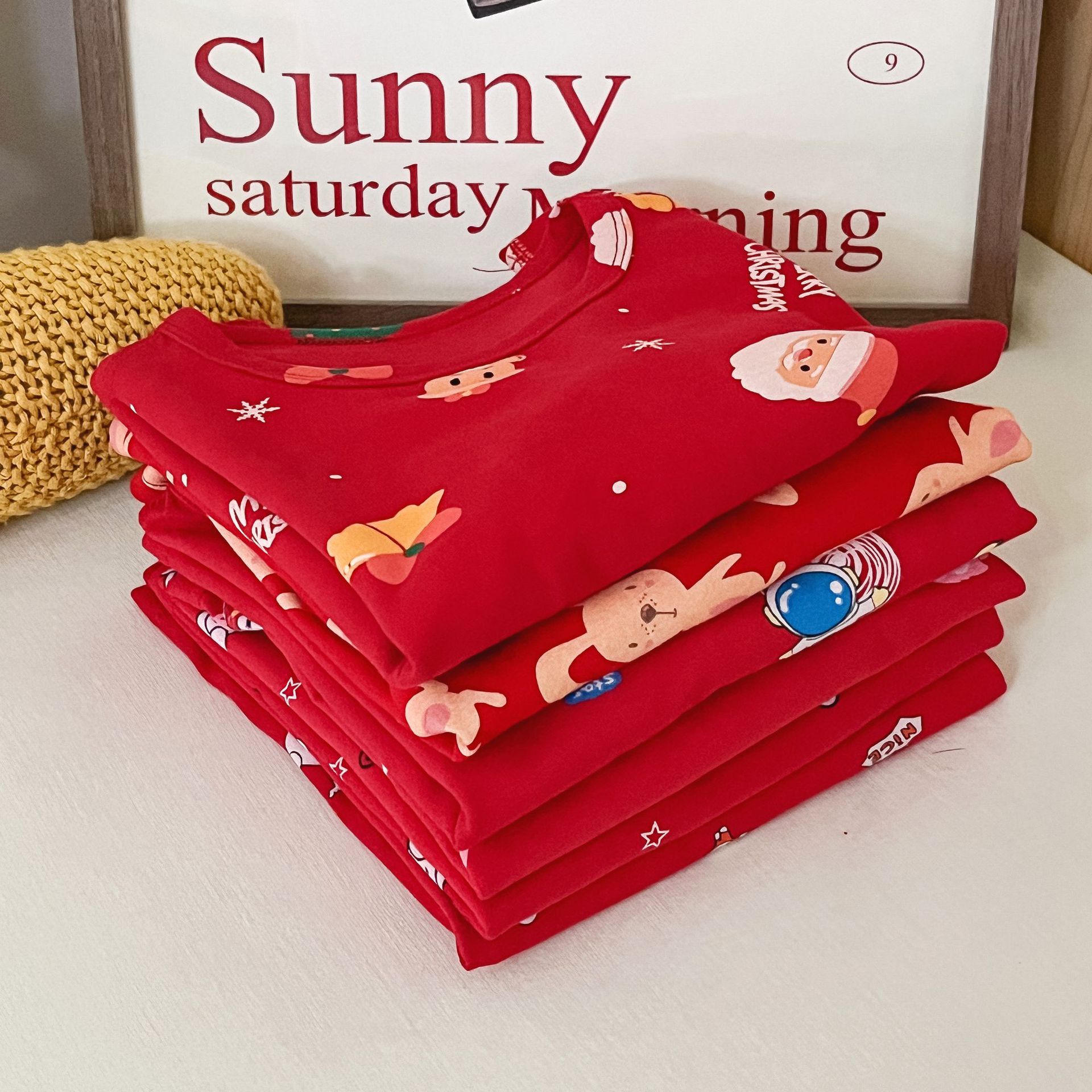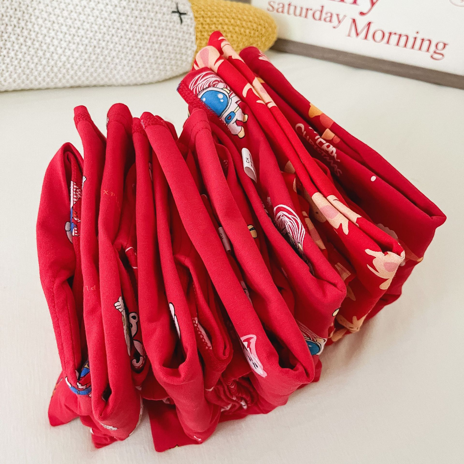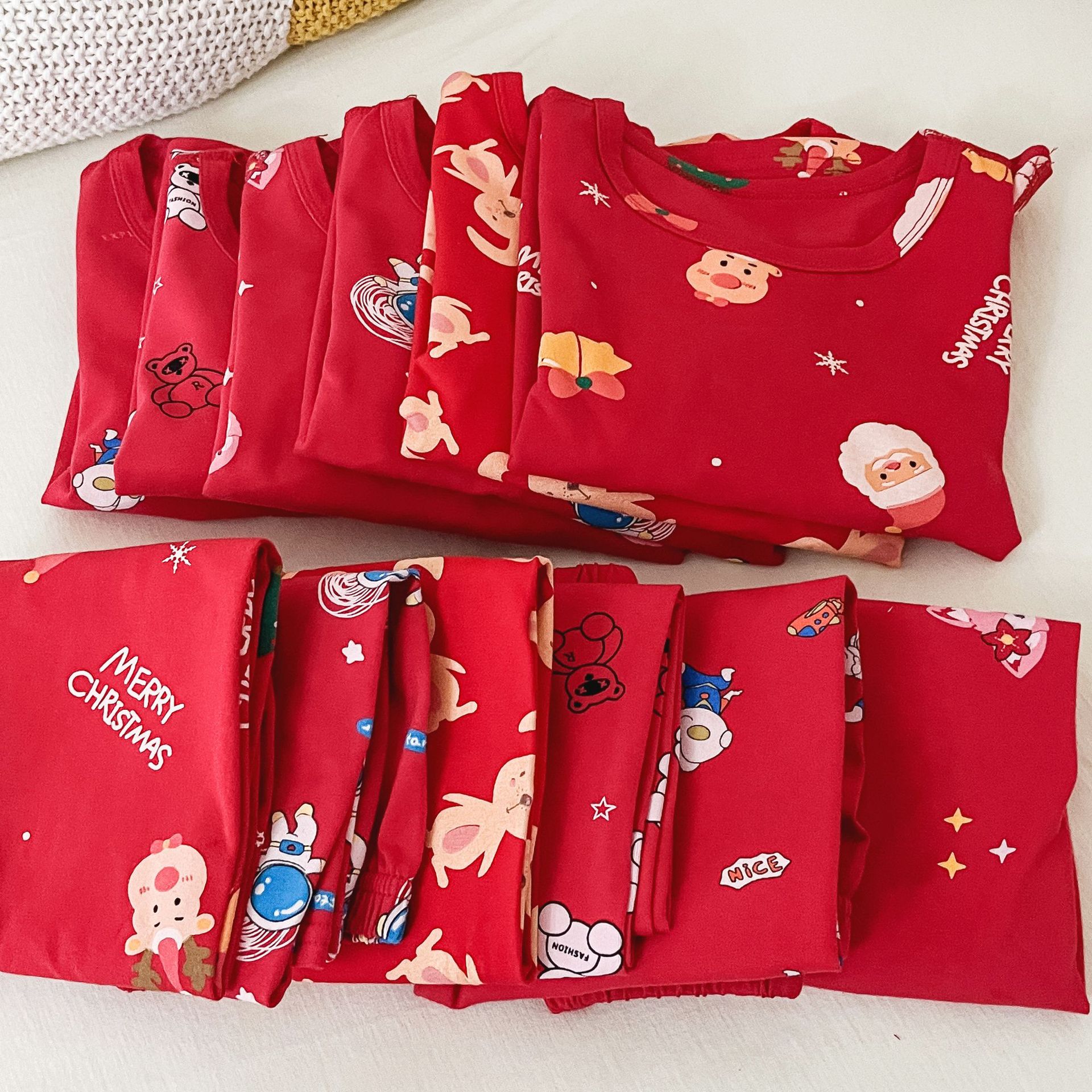 儿童本命年无骨内衣套装 男女童新年圣诞喜庆大红家居服秋衣秋裤