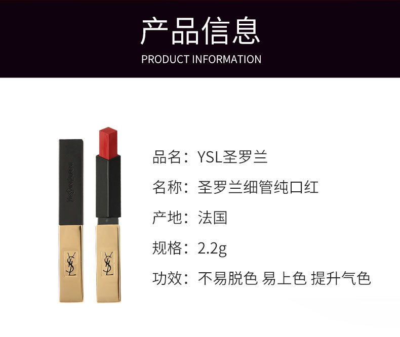 YSL圣罗兰小金条口红1966 皮革哑光妆效 优雅显白 提升气色 2.2g/支