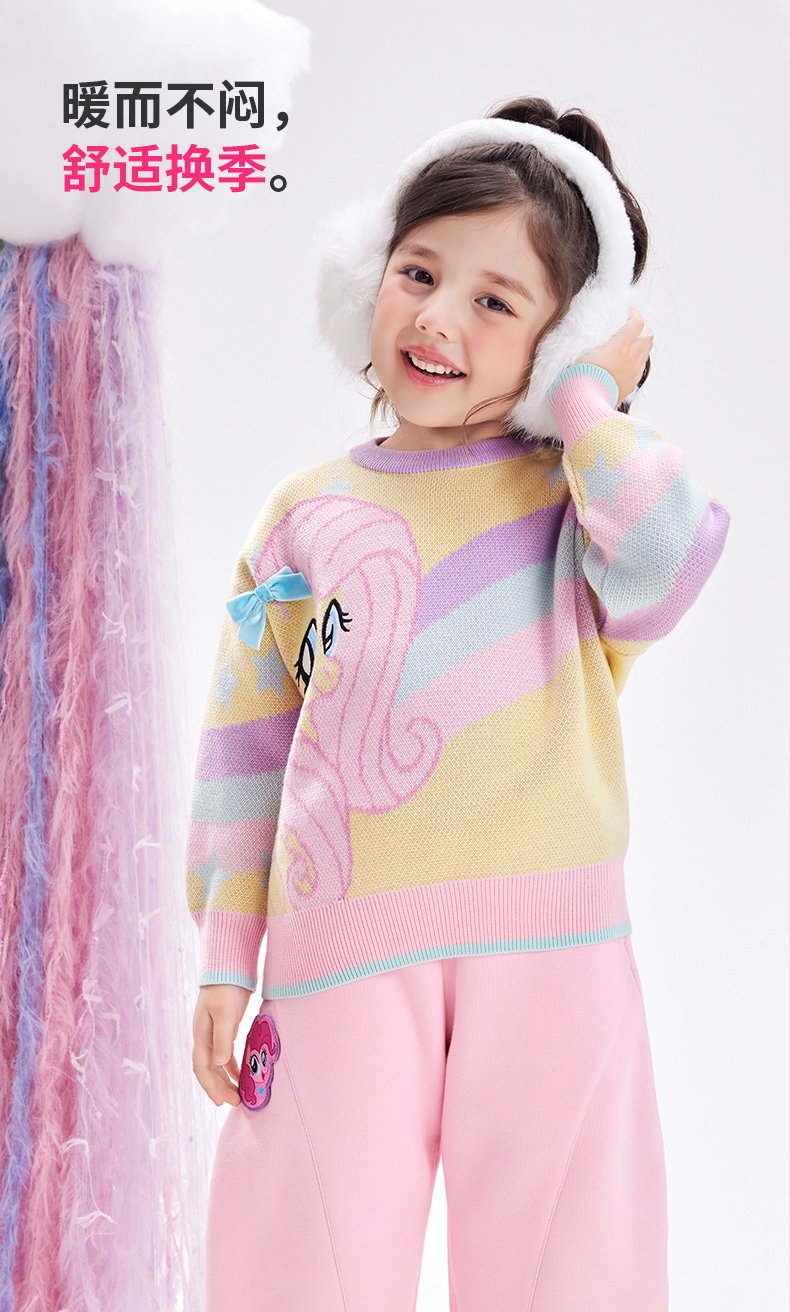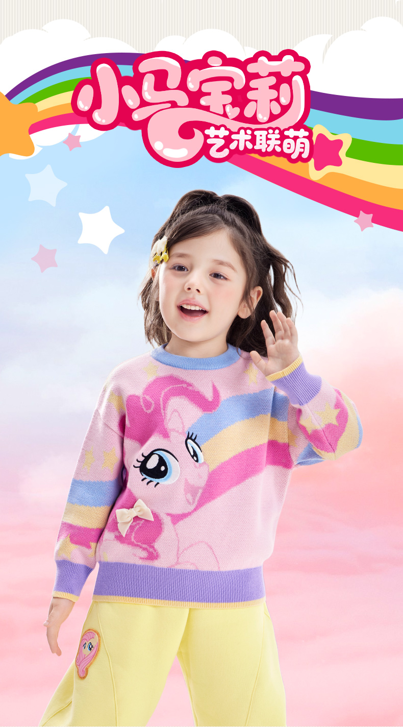 小马宝莉联名年衣童装彩虹毛衣秋冬新款卡通风小马宝莉彩虹毛衣