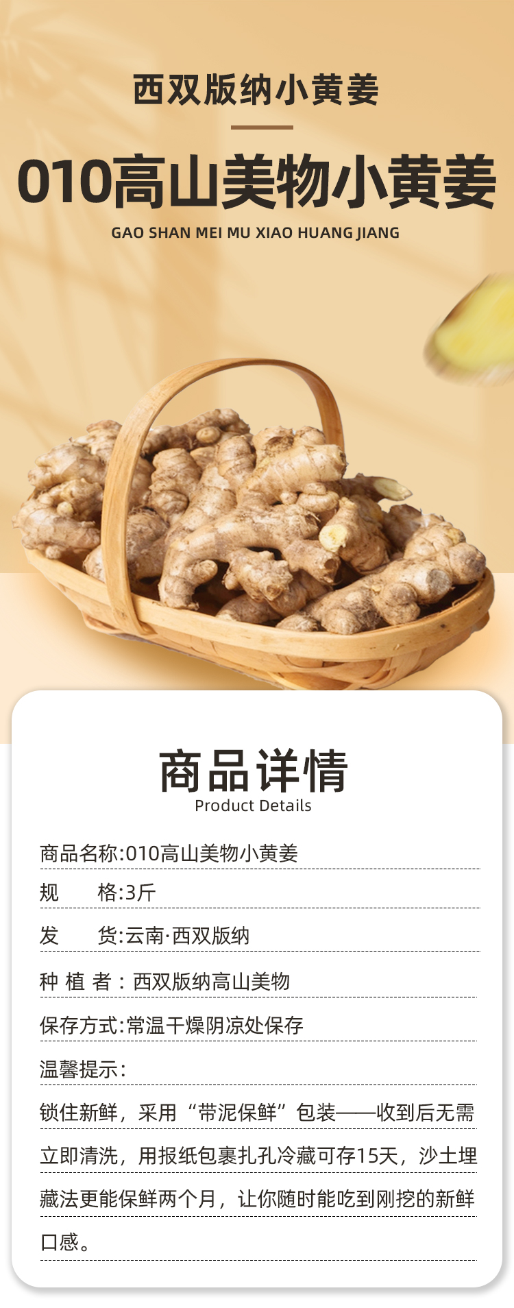 010小黄姜 【冒嫩芽】西双版纳高海拔10个月生长周期 姜中黄金 皮金黄透亮 块根小巧紧实 辛辣中带着淡淡回甘