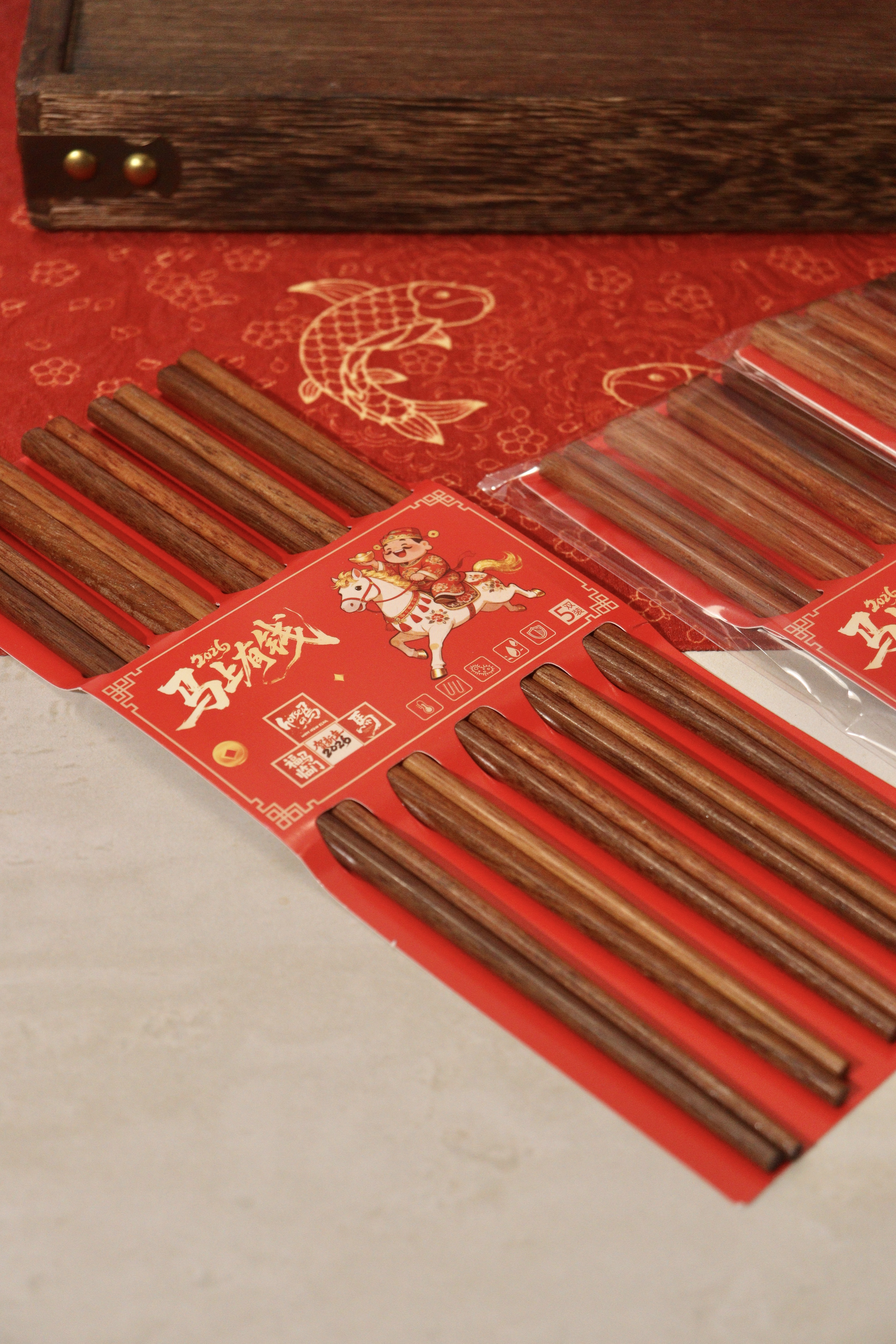 【29.9元到手50支!】OPTIMUM DG 马上有钱 红檀木筷子礼盒 经久耐用 多到工艺打磨 温润光滑 天然木纹 红棕雅致 适配各种餐桌