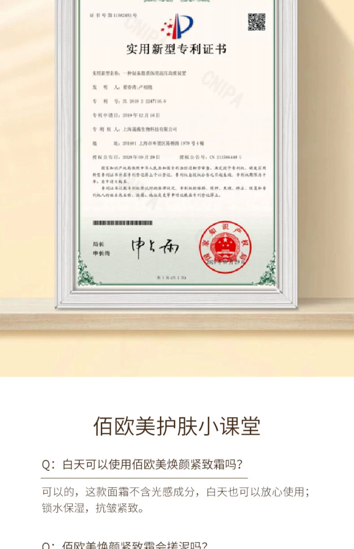 佰欧美焕颜紧致霜男女通用保湿补水面霜