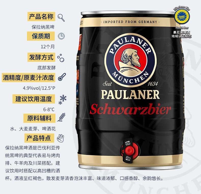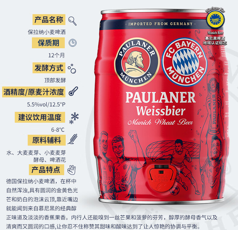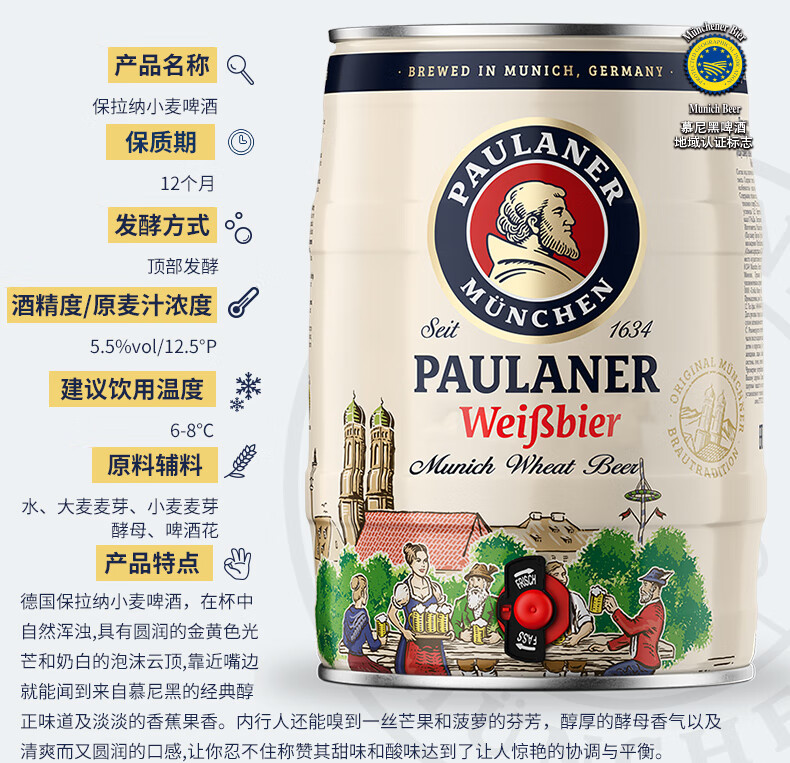 保拉纳酵母型小麦啤酒5L桶装