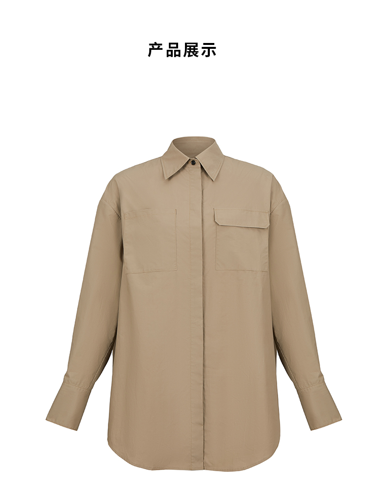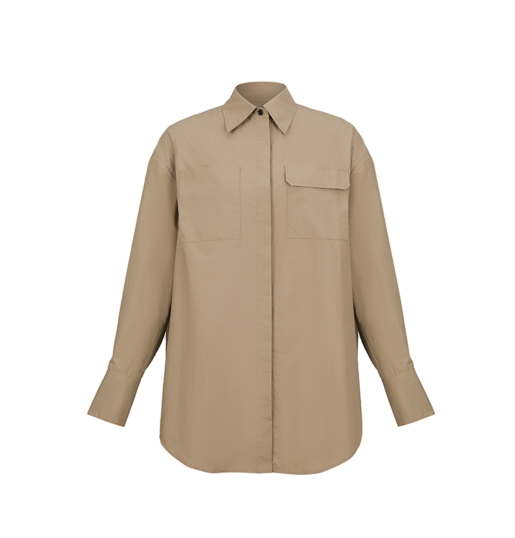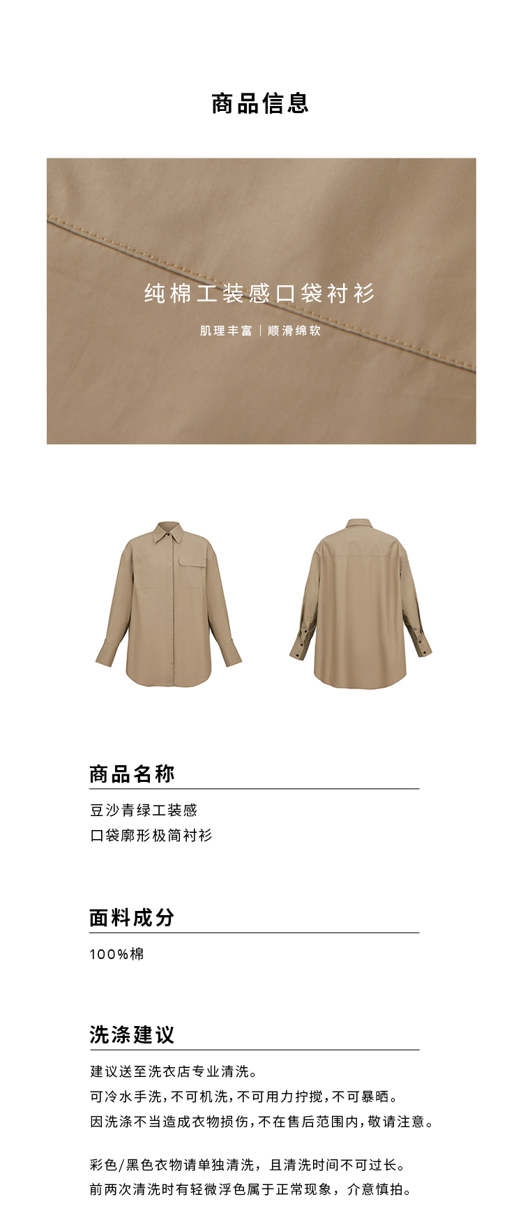 HIDEMI 豆沙青绿工装感口袋廓形极简衬衫