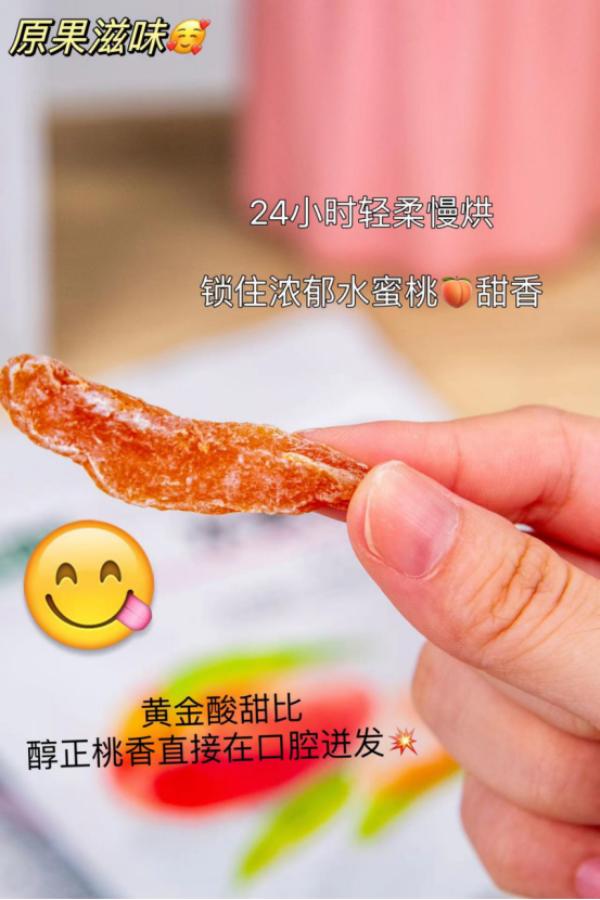 “黄金”酸甜比,醇正香甜水密桃味溢满口腔。干燥不黏手,大片果肉,肉感十足。