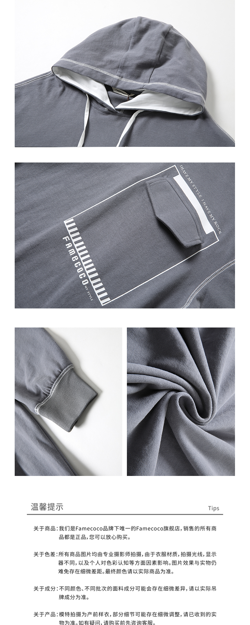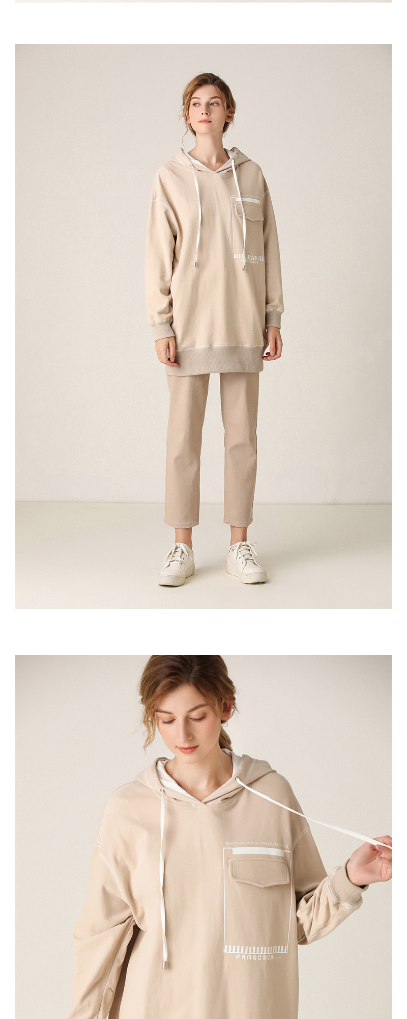 famecoco范可儿卫衣宽松休闲风连帽套头衫F201BE002