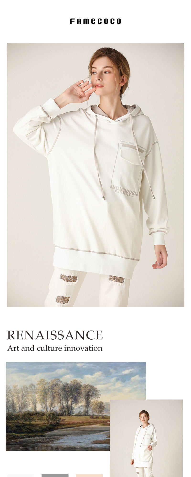 - Famecoco作为中国本土设计师品牌之一的她,创建于美丽的时尚花都广州,自2013年创立以来,一直致力于打造优雅、知性、文艺的穿着理念。