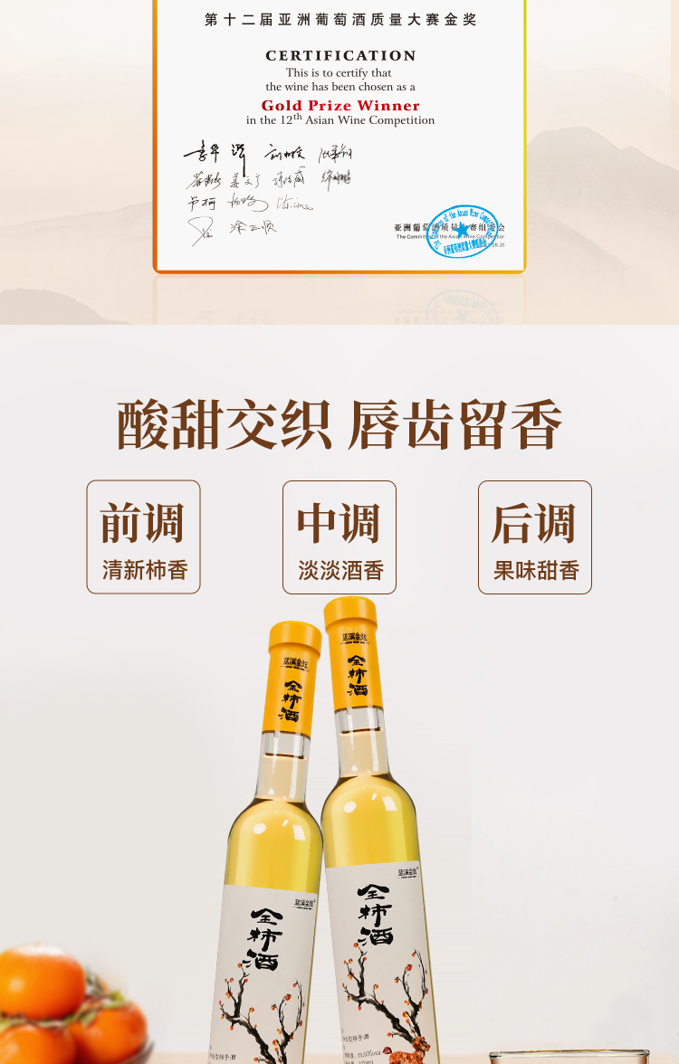 【金色柿酿】蓝溪金炫 全柿酒 原酿柿酒 甜白型 13.9%vol