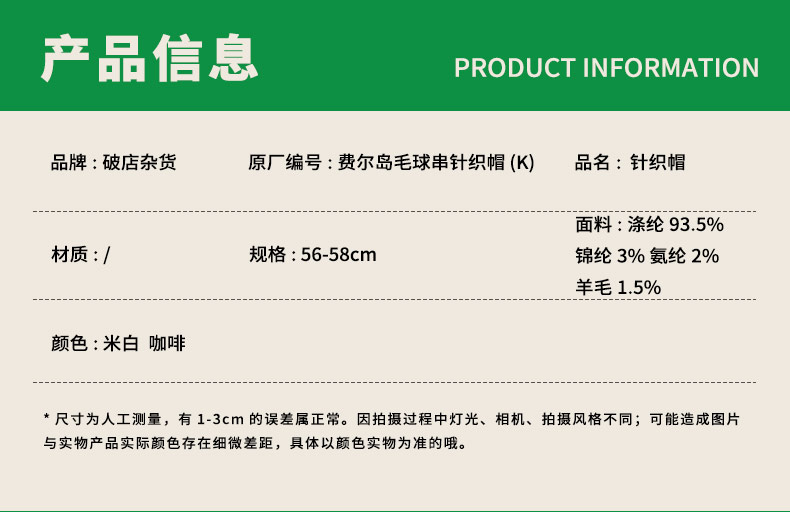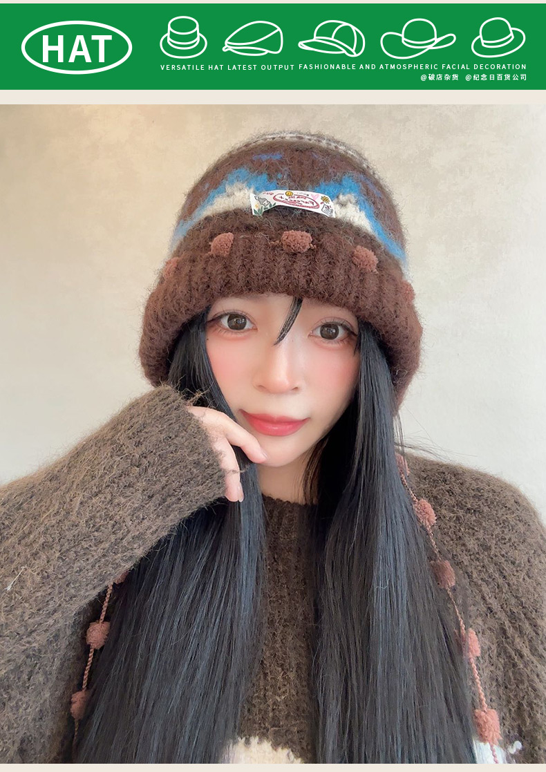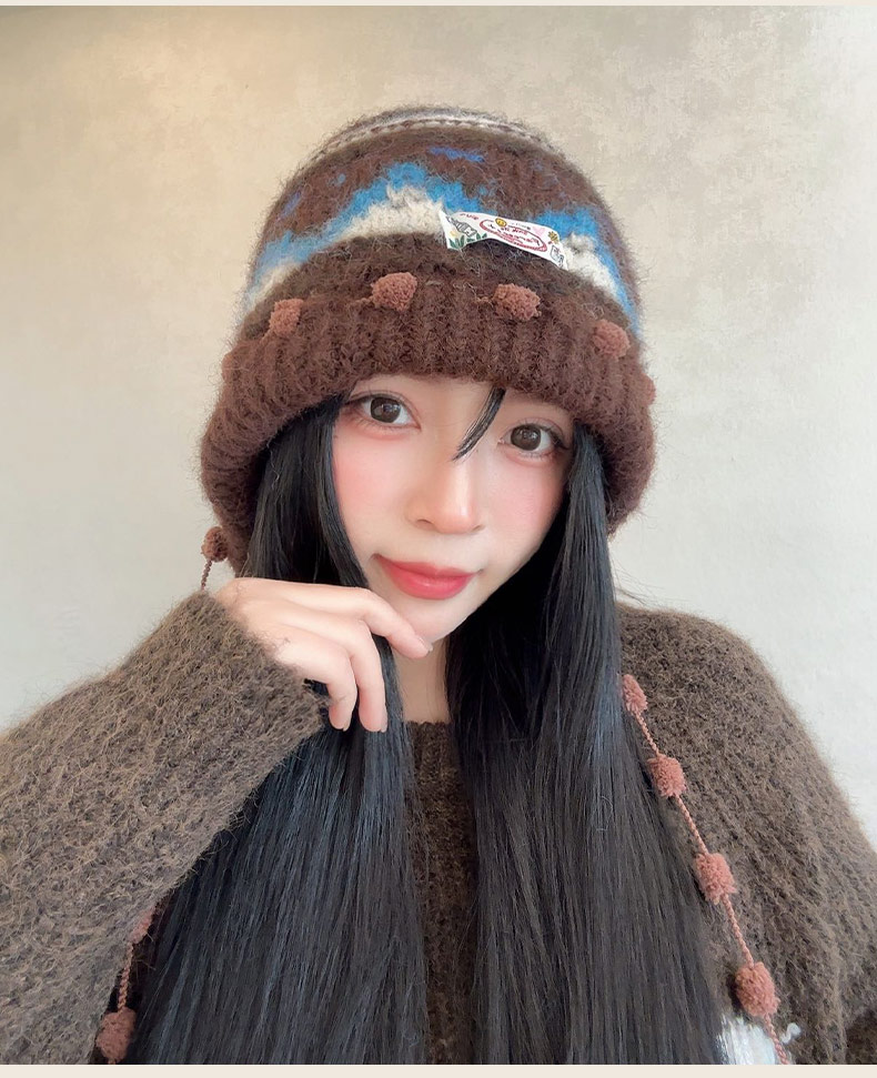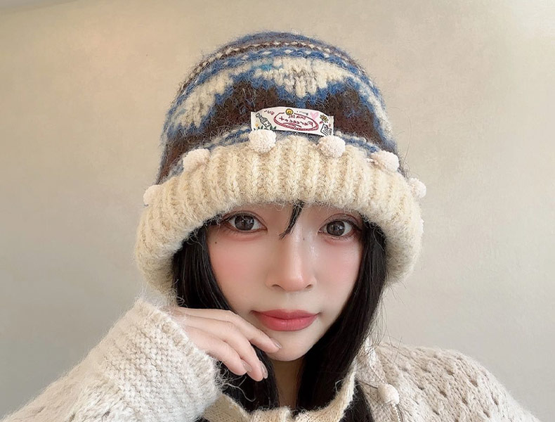 费尔岛毛球串针织帽-纪念日百货门店同款166445798