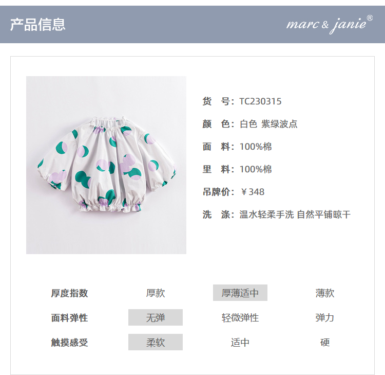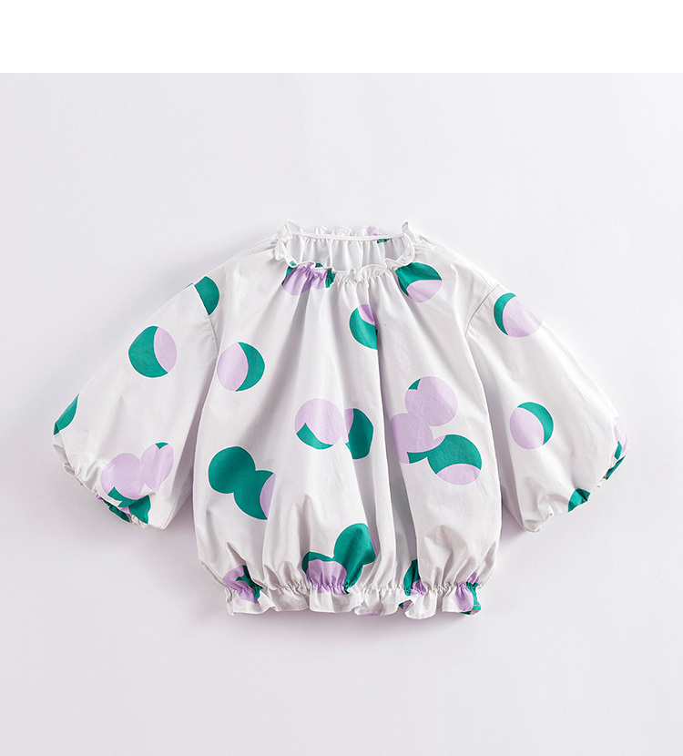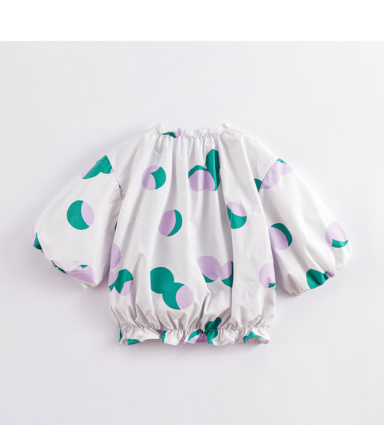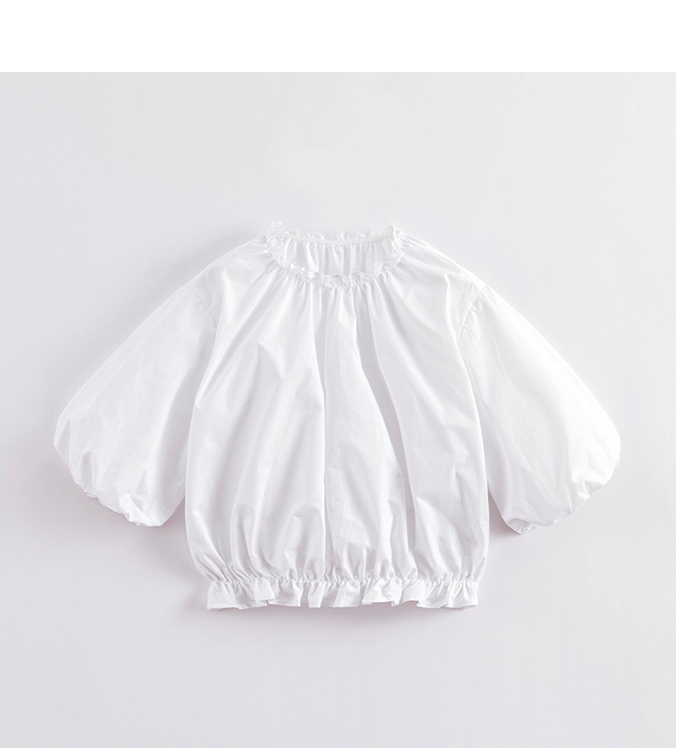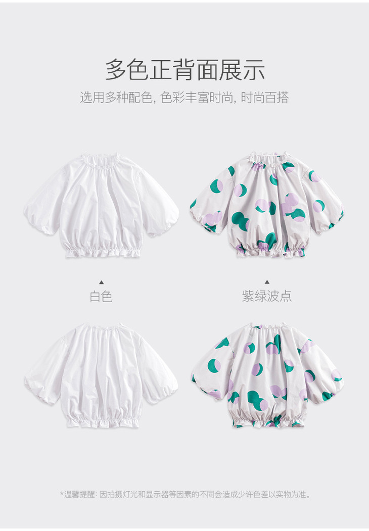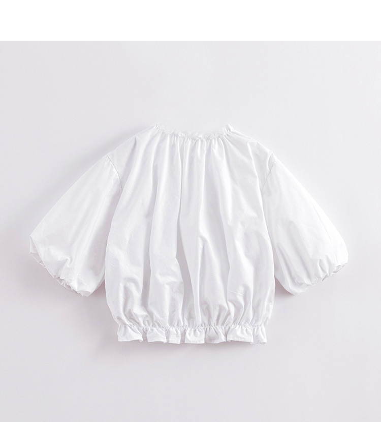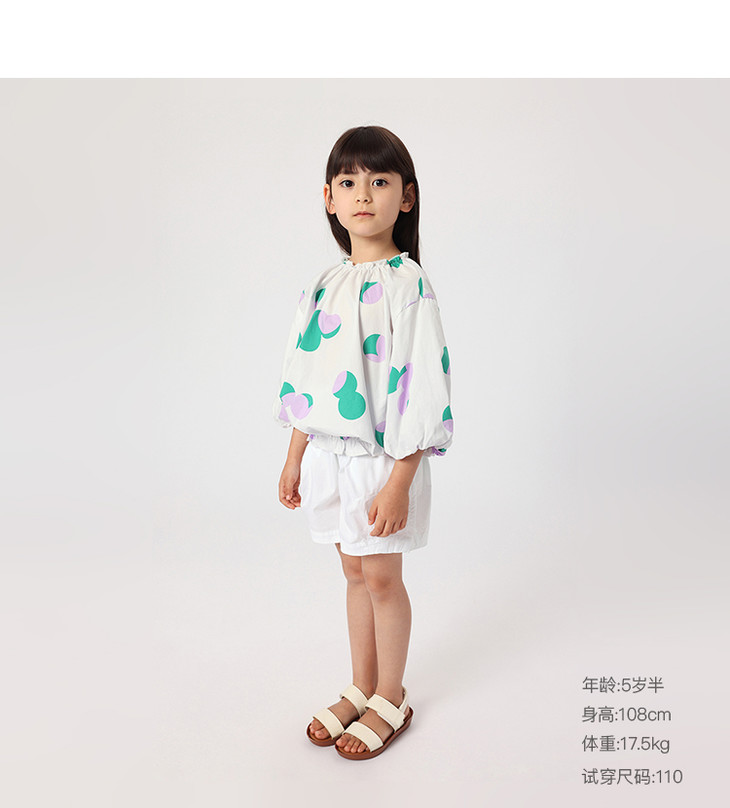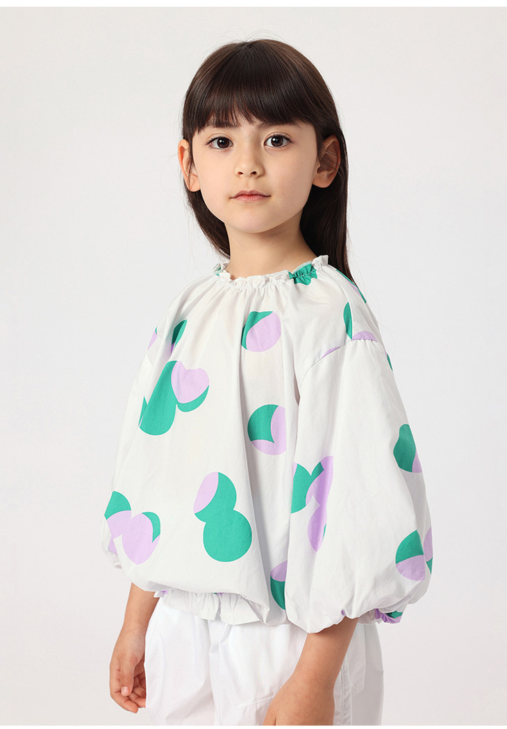 马克珍妮春夏新款 女童北欧风花苞袖一字领纯棉衬衫230315