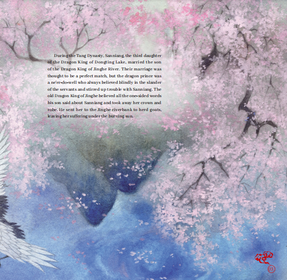 绘本改编自粤剧《柳毅传书》。秀才柳毅赴京应试,途经泾河畔,见一牧羊女悲啼,询知为洞庭龙女三娘,遣嫁泾河小龙,遭受虐待,乃仗义为三娘传送家书,入海会见洞庭龙王。钱塘君惊悉侄女被囚,赶奔泾河,大闹龙宫,救回龙女。三娘得救后,深感柳毅传书之义,请乃叔钱塘君作伐求配。柳毅为避施恩图报之嫌,拒婚而归。多年后柳毅与一卢姓女子结为连理,并生下一子。满月酒席上妻子头戴当年柳毅与龙女的信物,柳毅询问之下发现原来妻子就是龙女化做的凡人。二人感情日笃,洞庭一带也在龙王的关照下风调雨顺。书后配有相应的剧种知识介绍。书中插图从人物造型到环境布局,从亭台楼阁到一草一木,都细腻传神,充满了古朴优雅的意蕴,使读者仿佛身临“戏”境,具有极强的艺术感染力。