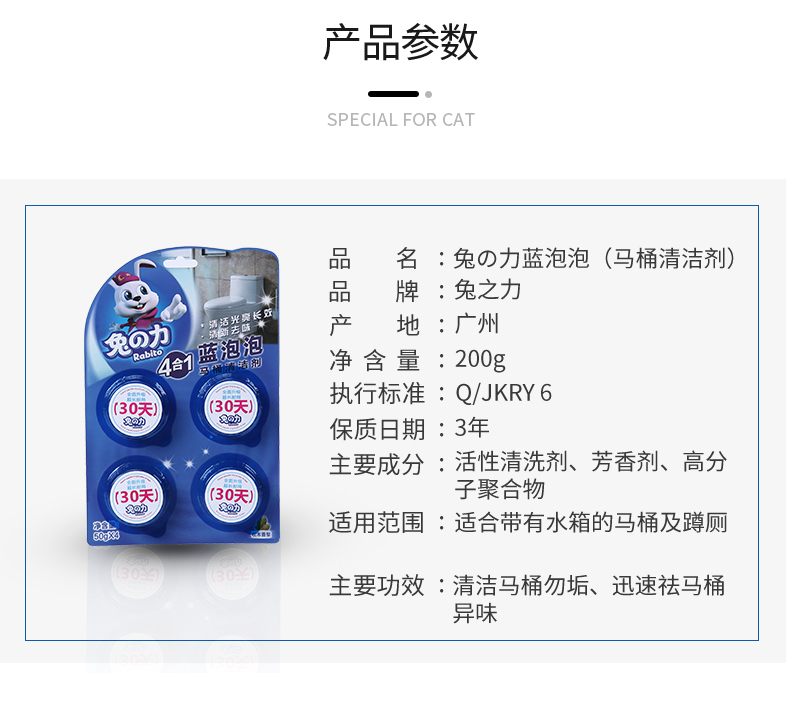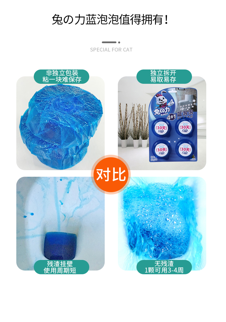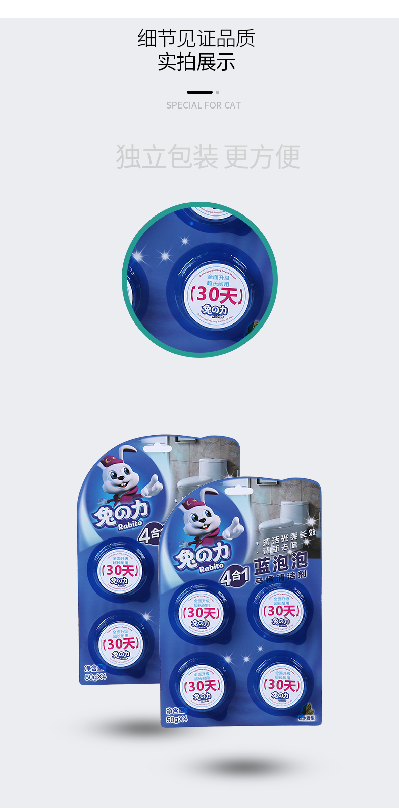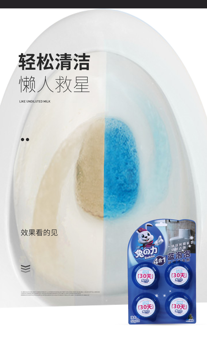 兔の力4合1蓝泡泡马桶清洁剂50g*4