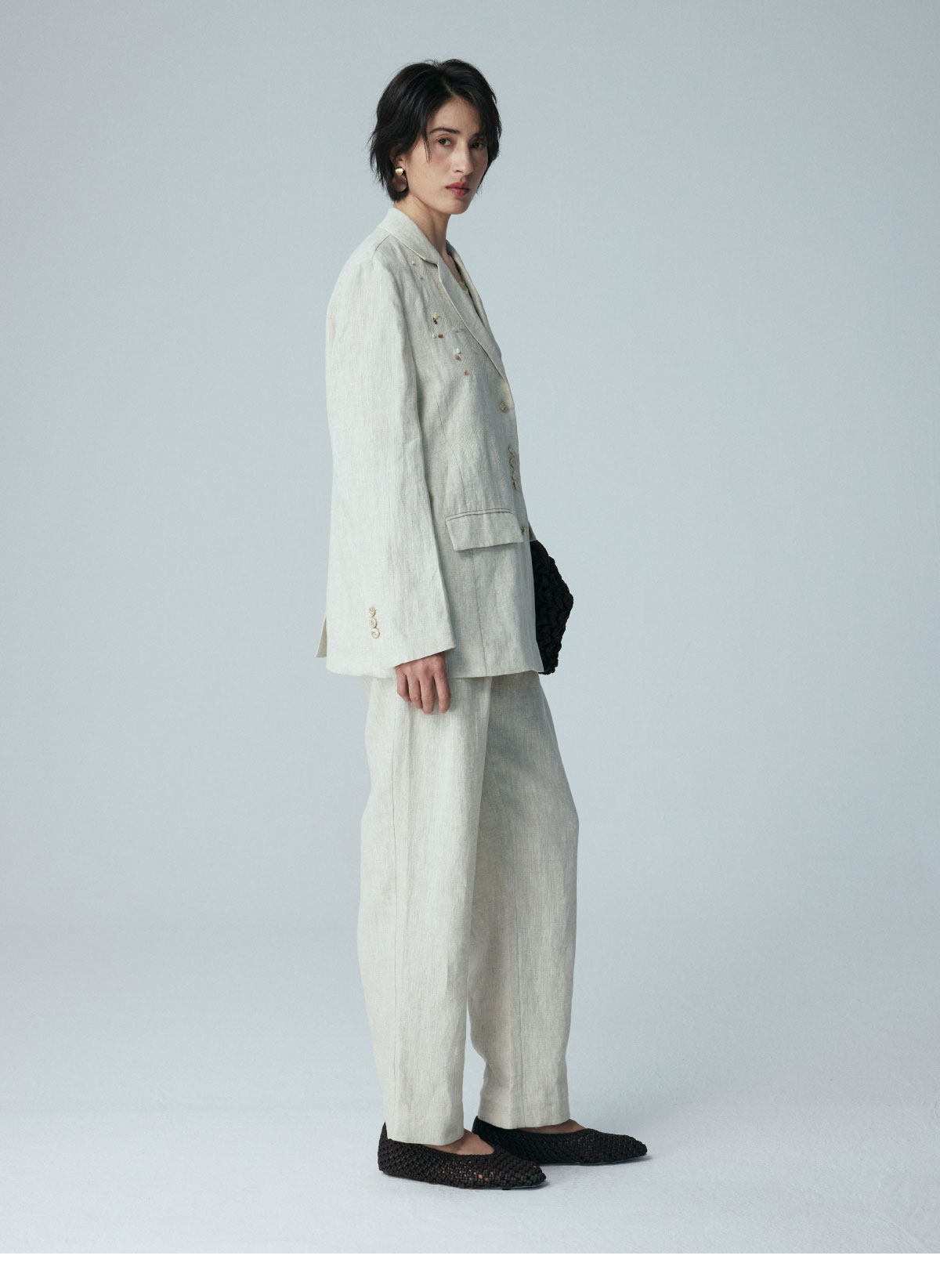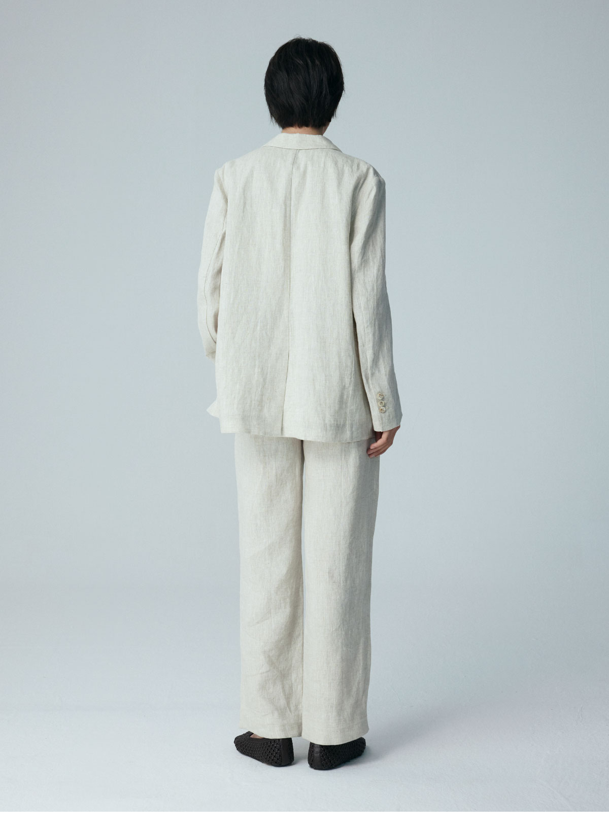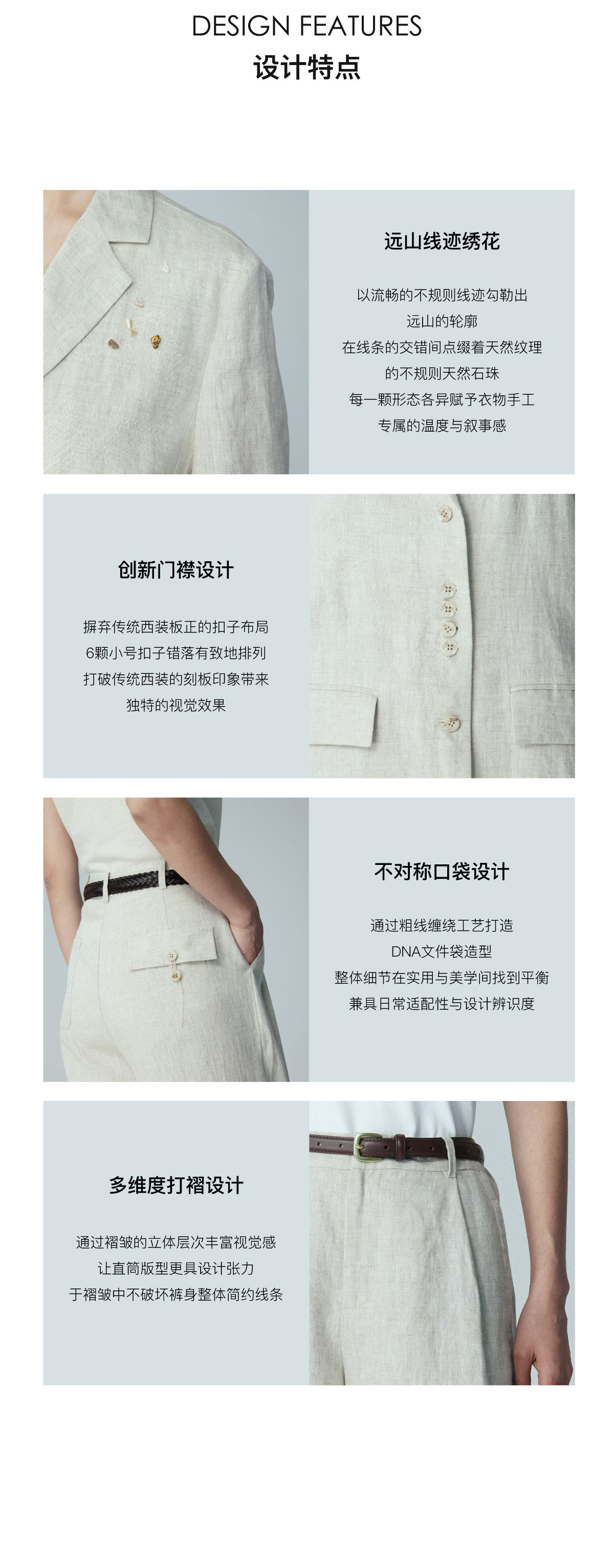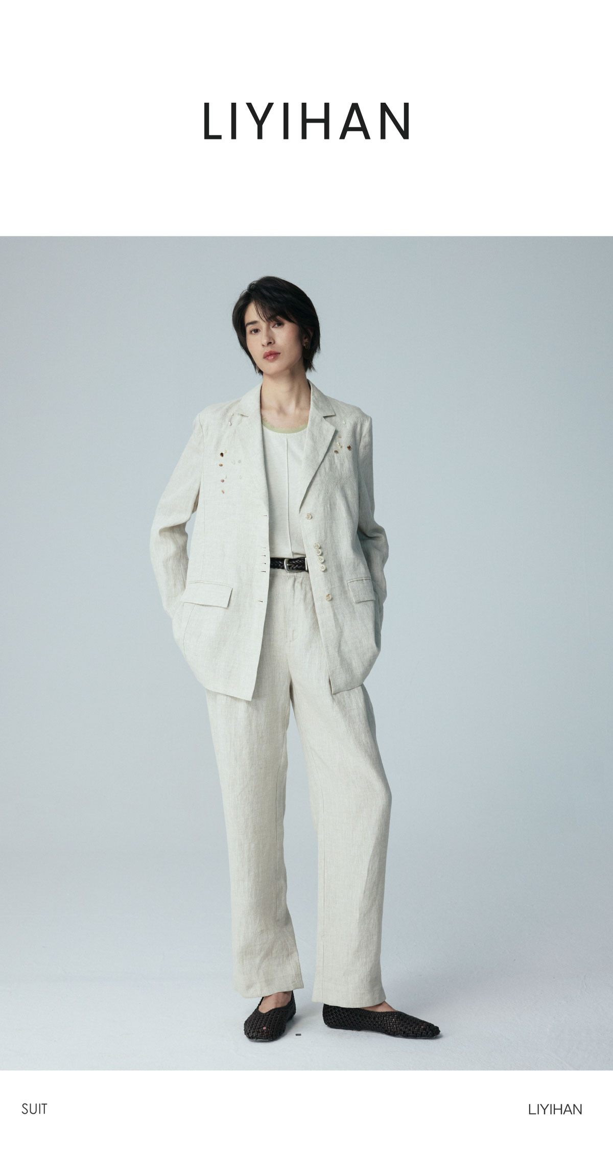 LIYIHAN2026夏新款通勤女西装上衣米杏色亚麻外套套装小众设计感