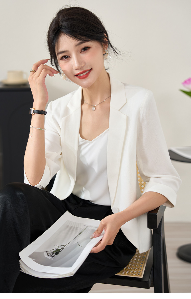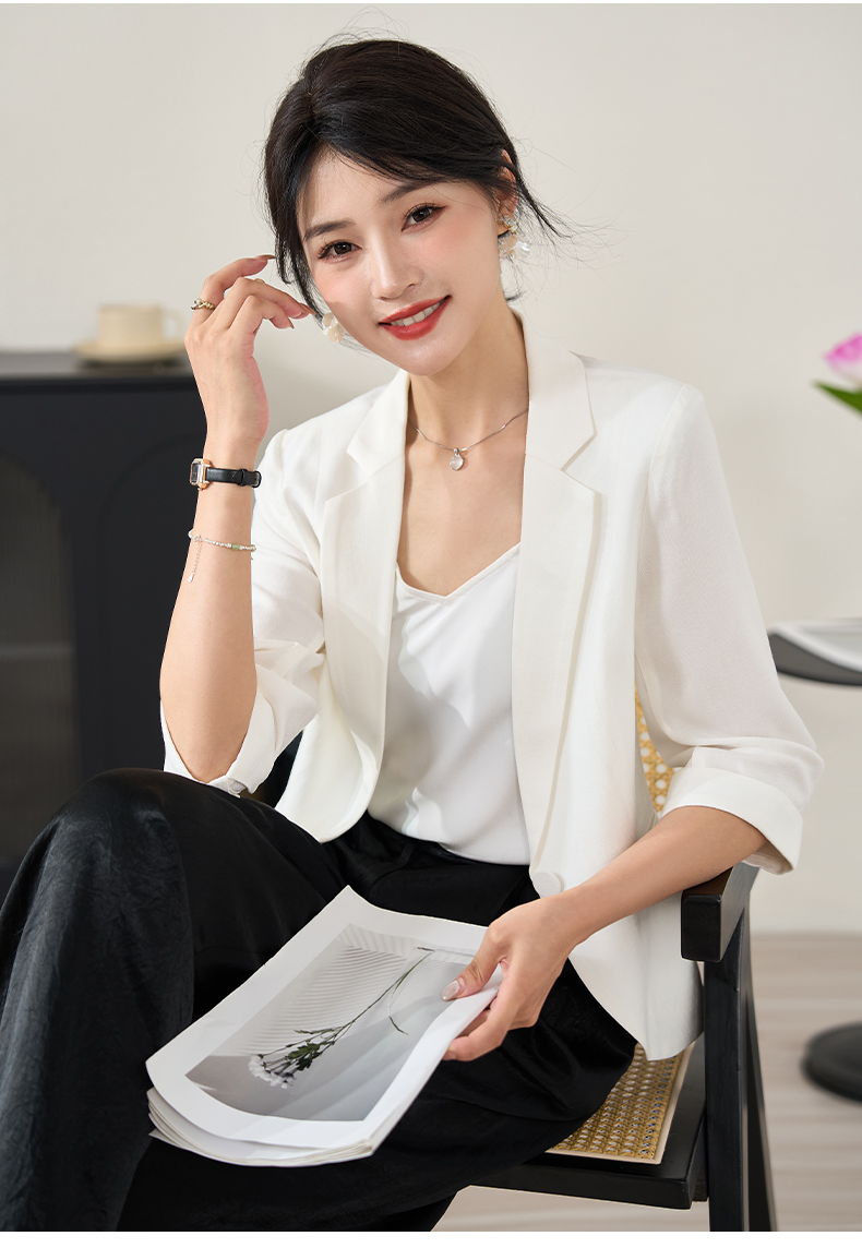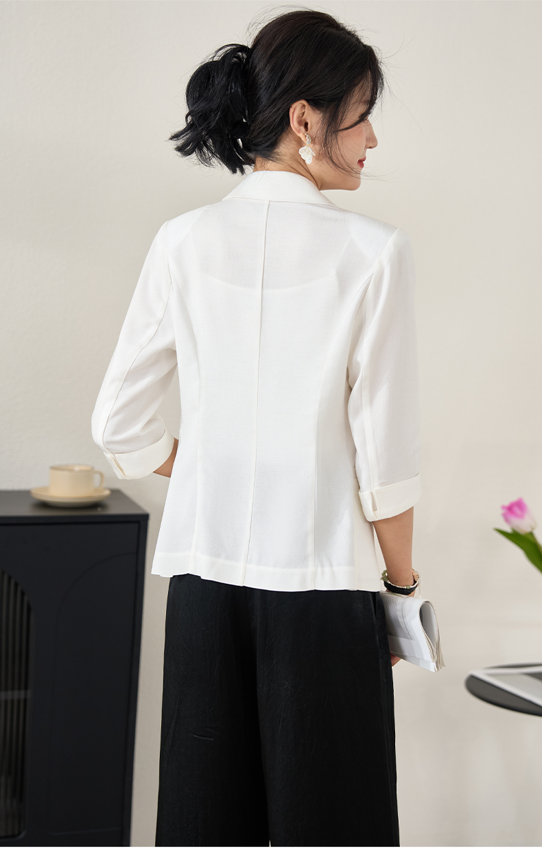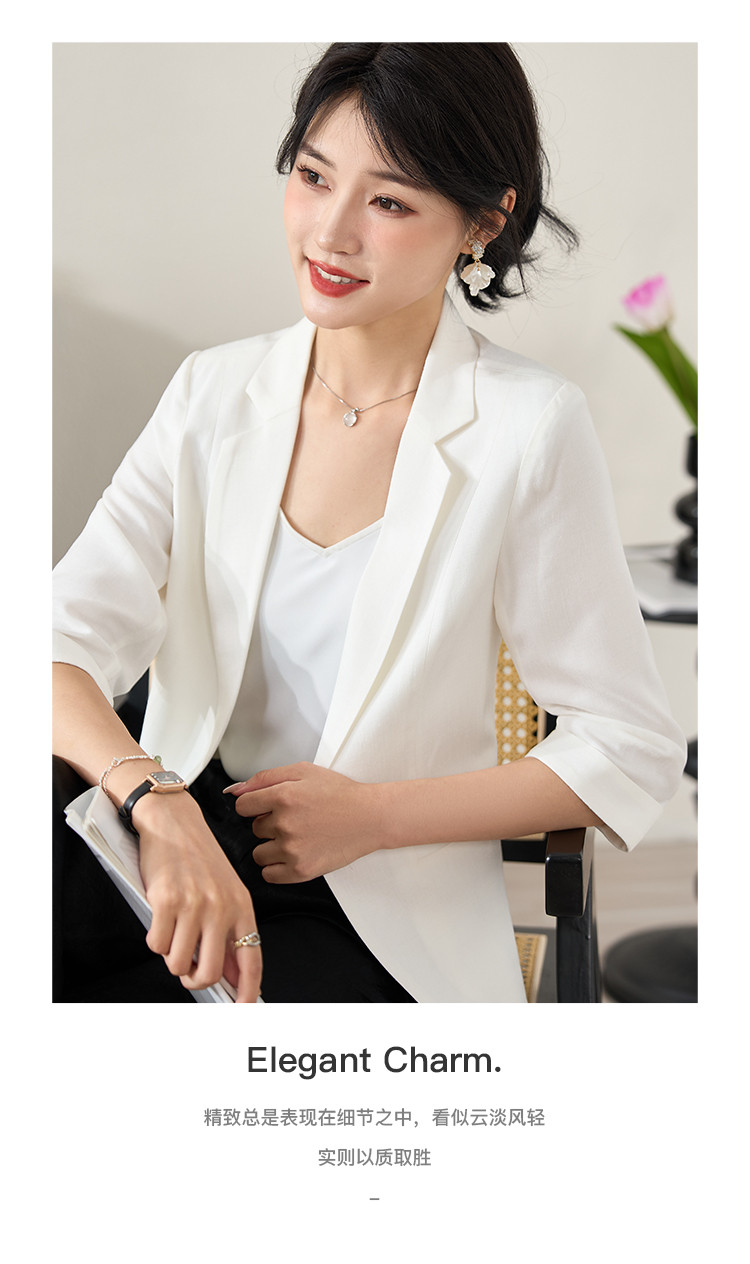 米思阳2026春季新款通勤职业西装100%醋酸小个子七分袖薄款外套女2653