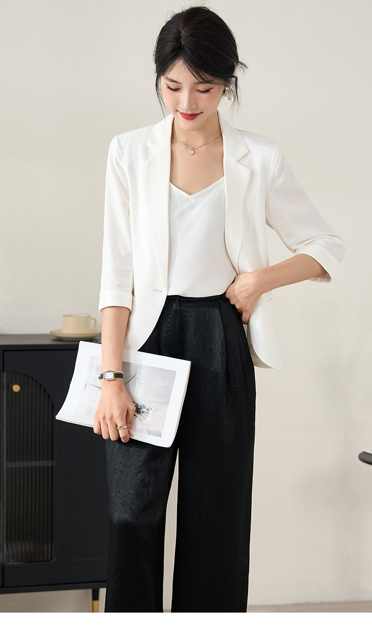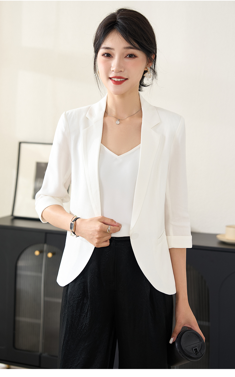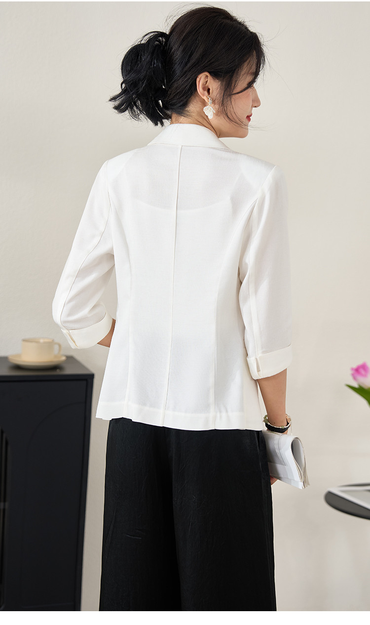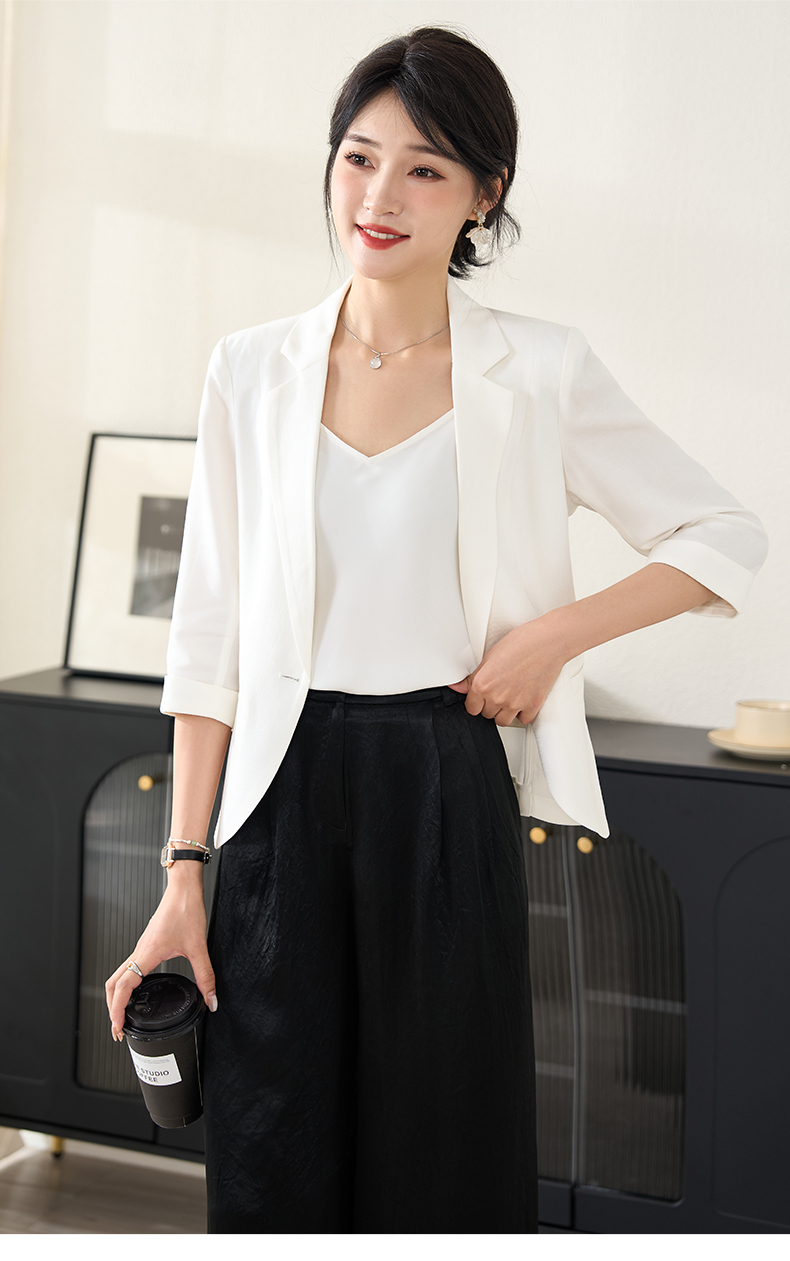 米思阳2026春季新款通勤职业西装100%醋酸小个子七分袖薄款外套女2653