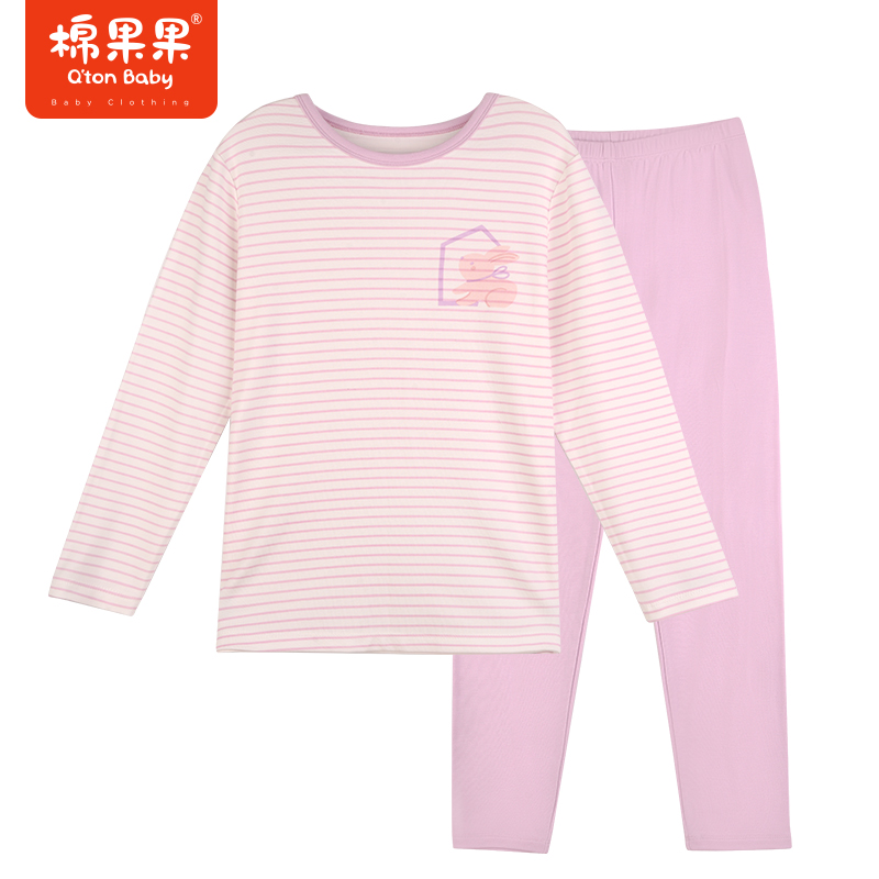 棉果果女童女宝66-90连体衣、80-130码套头套装多款春秋内衣家居氨棉纯棉莫代尔暖绒棉165元2套连体衣、套头套装