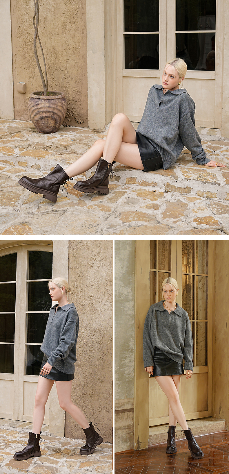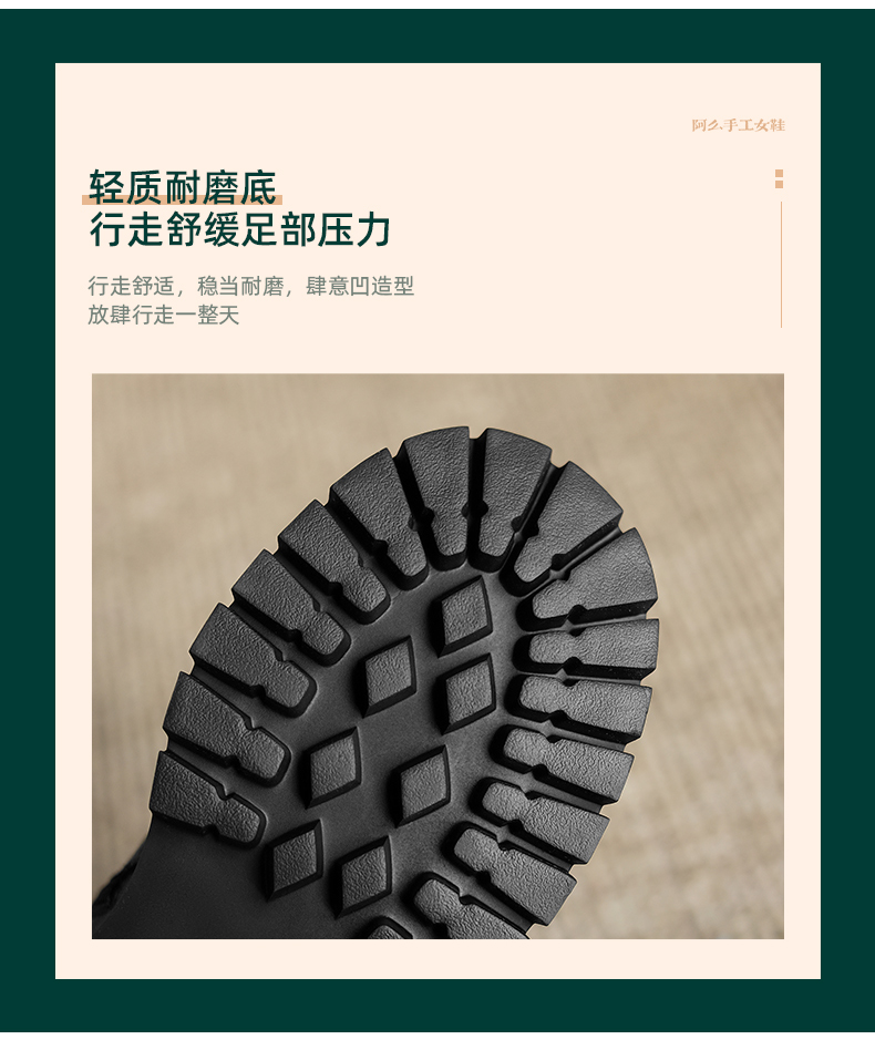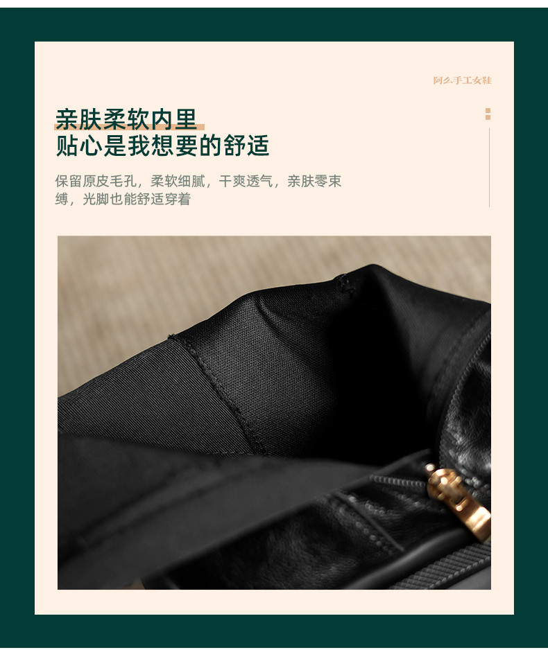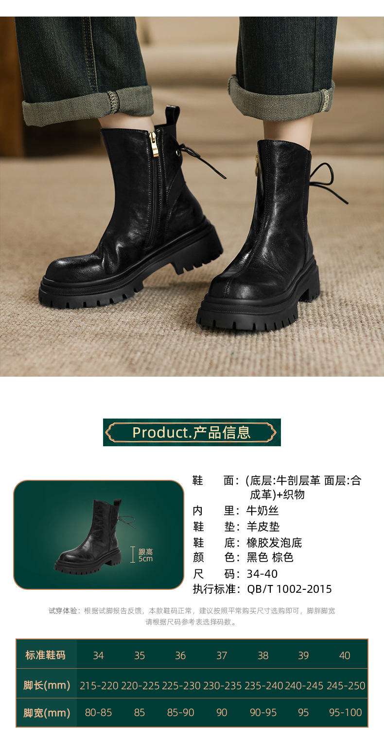 阿么手工女鞋新款拼接后绑带牛皮厚底短靴5CM高级感小众百搭靴子